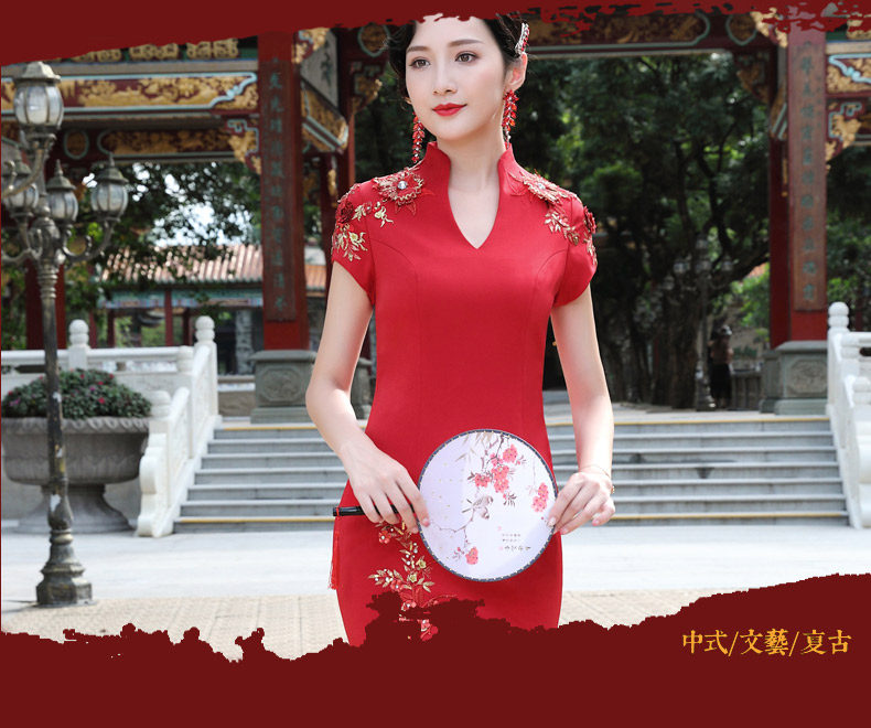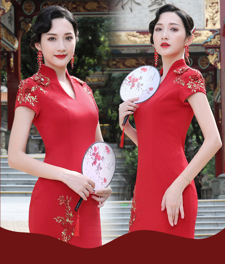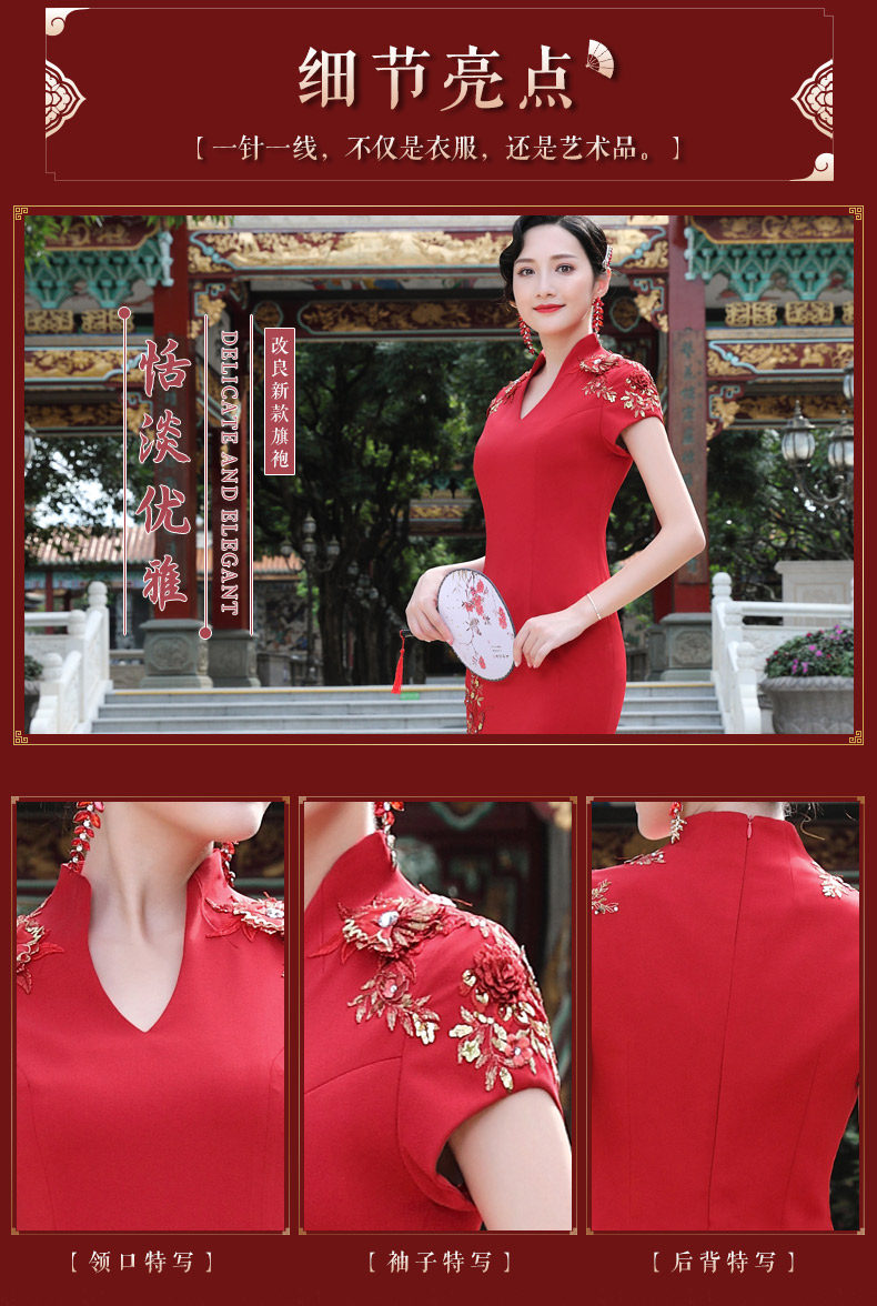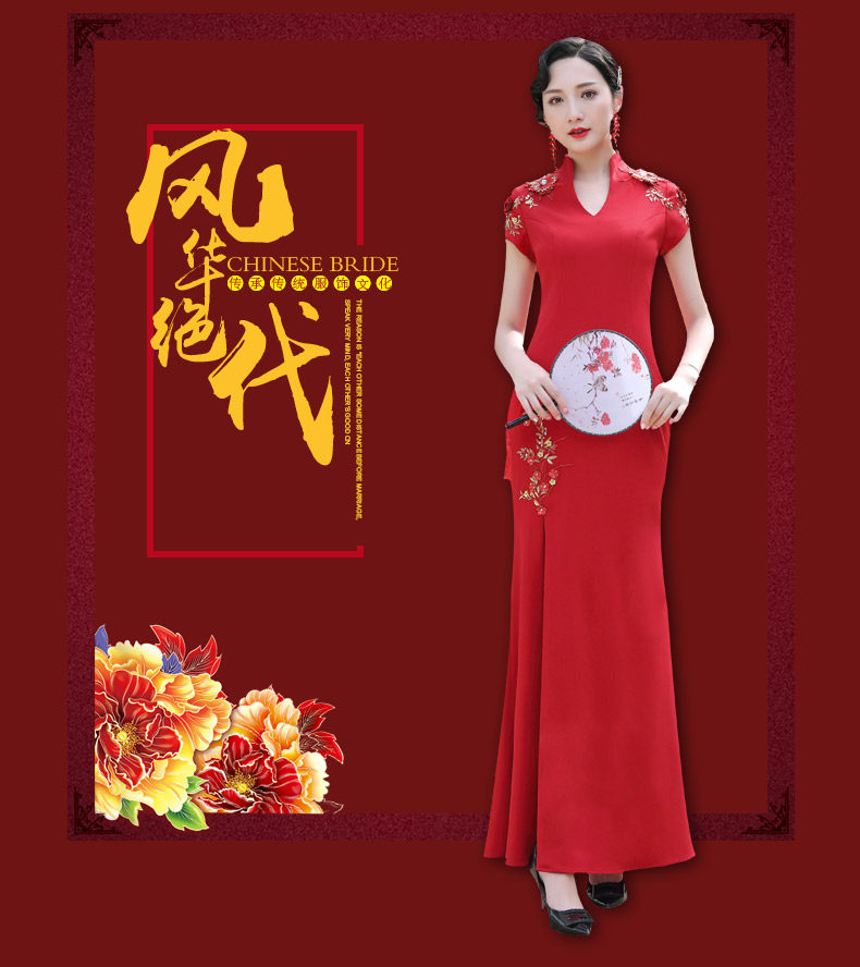 DLQ-A2040中国风改良敬酒服红色旗袍