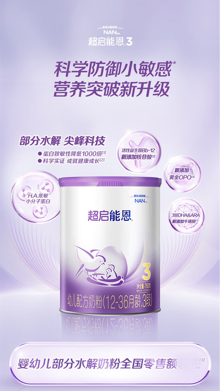 雀巢(NESTLE)超启能恩 幼儿乳蛋白部分水解配方奶粉 3段760克