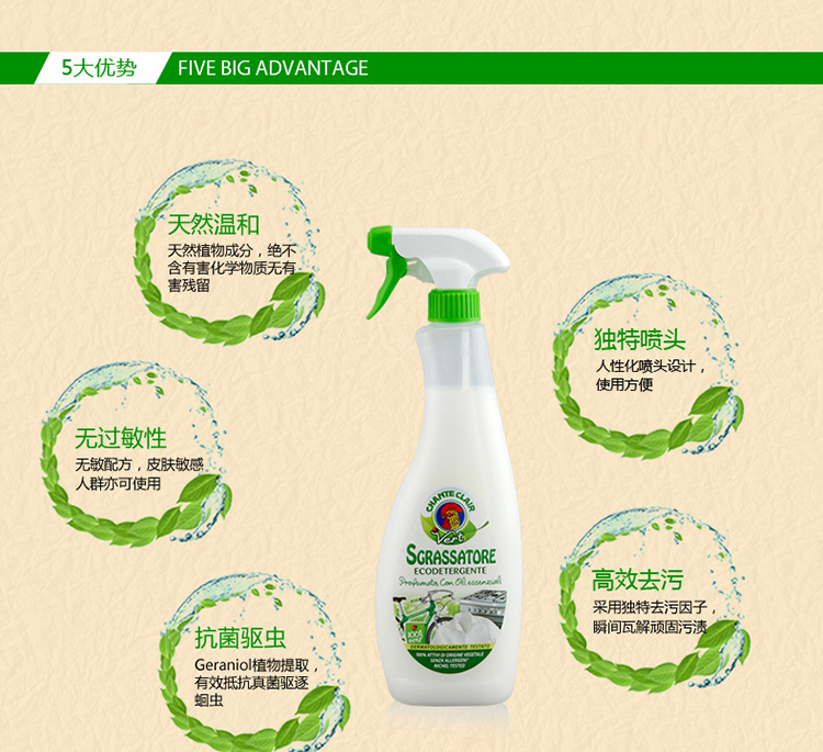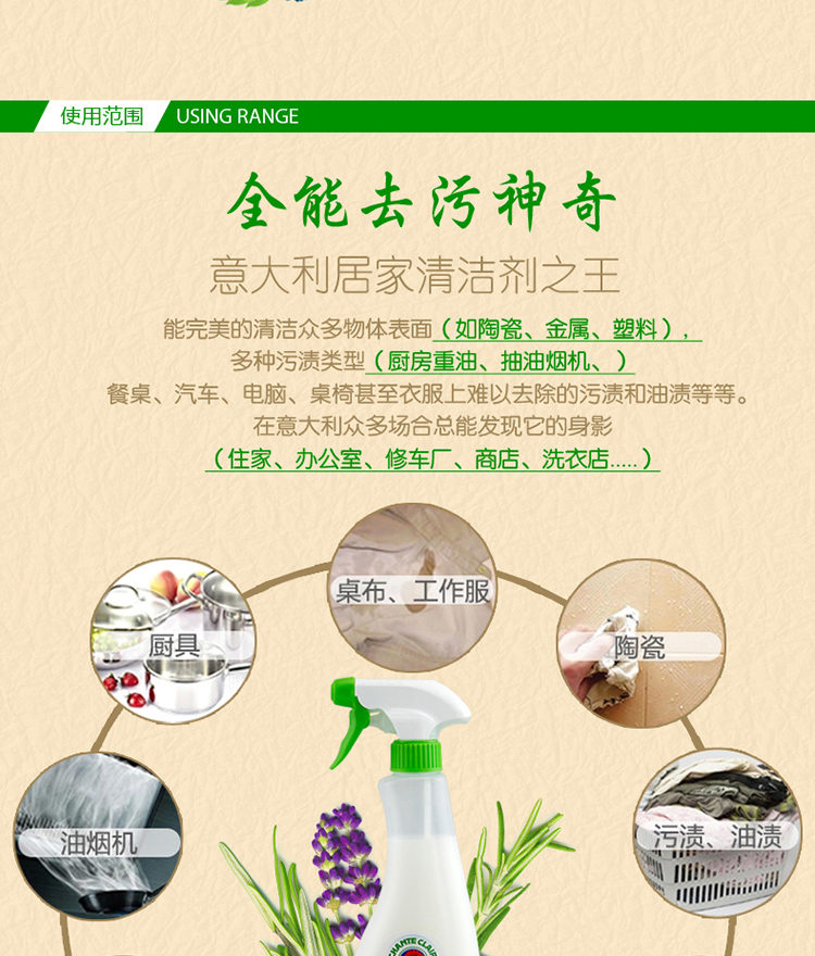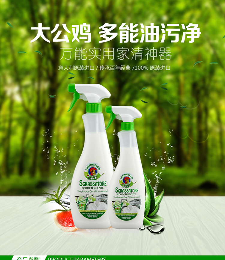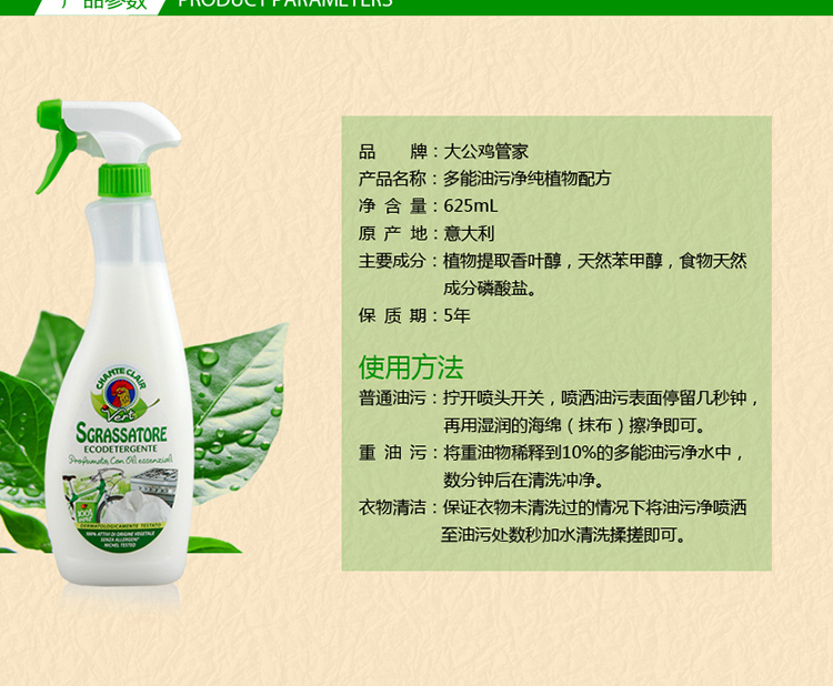 CHANTECLAIR 大公鸡管家 多功能油污净(植物清香) 厨房清洁去油污剂 (意大利进口) 625ml