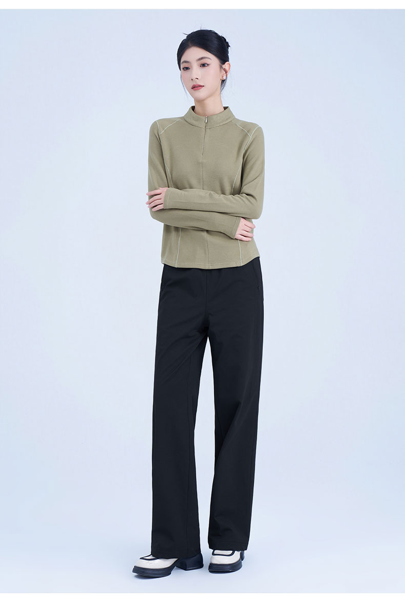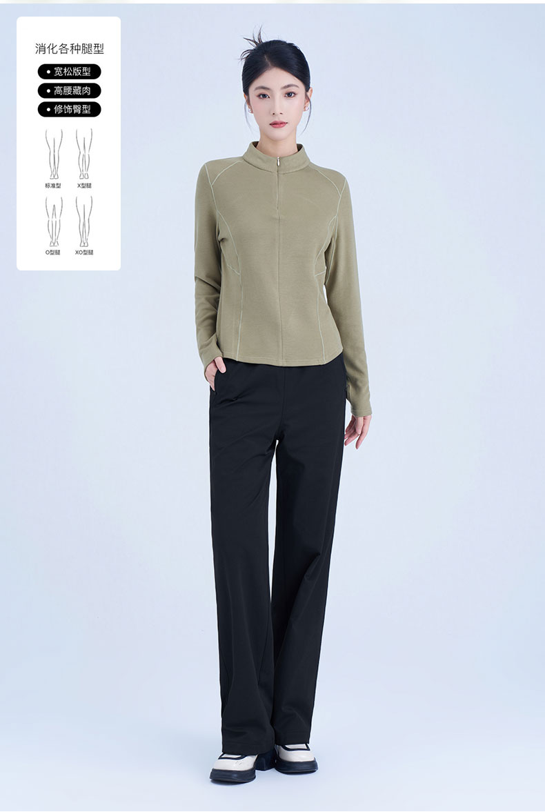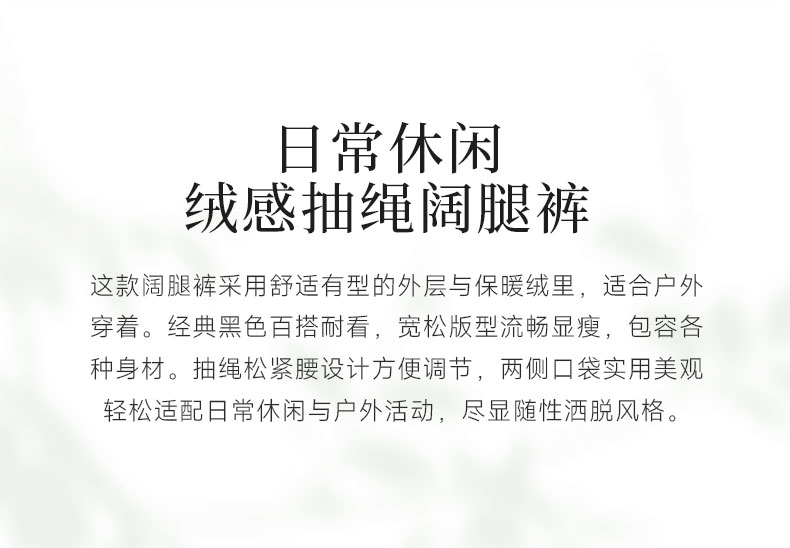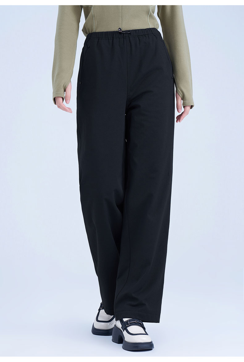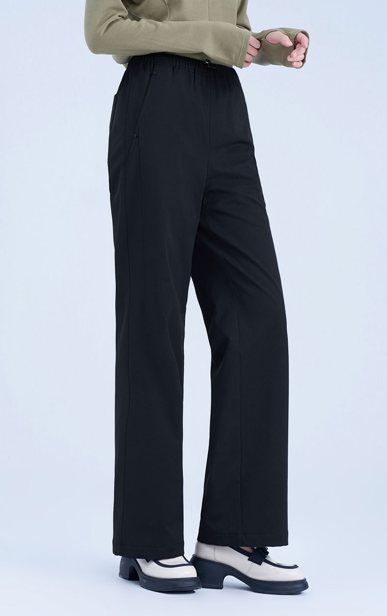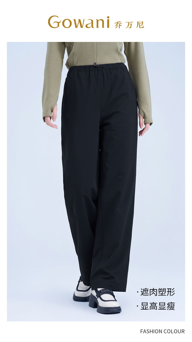 乔万尼2025冬加厚绒里休闲显瘦抽绳经典黑色直筒裤EZ4F158