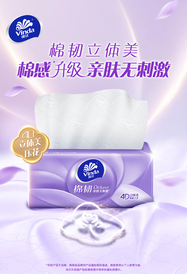 维达3层100抽棉韧纸面巾 V2833H 整箱36包