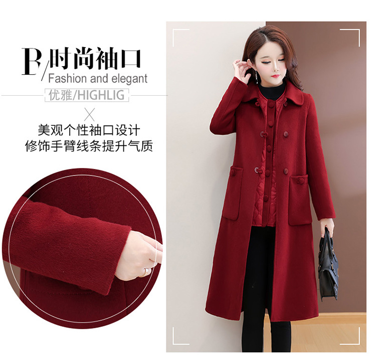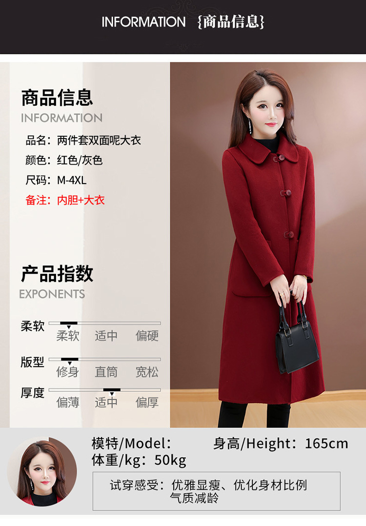QYM 7258036-Y两件套双面毛呢大衣内胆可拆保暖呢子外套