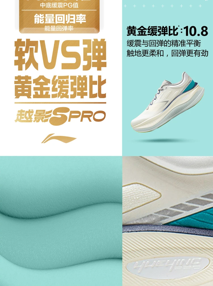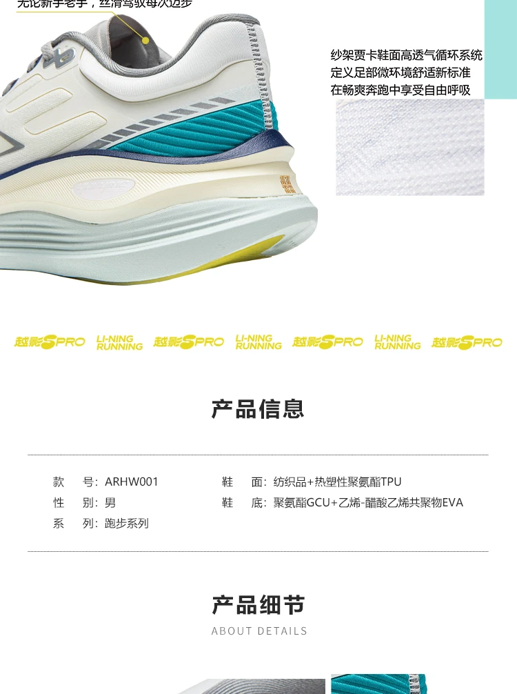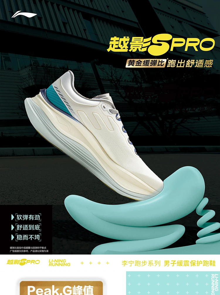 李宁越影5 PRO男子反光轻量高回弹缓震保护跑鞋ARHW001