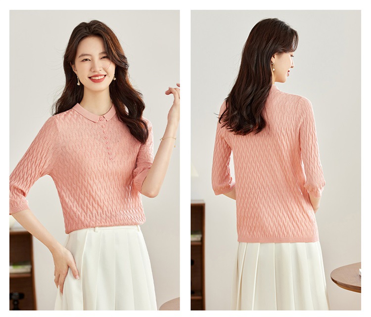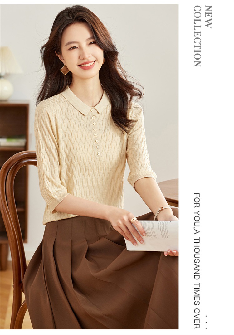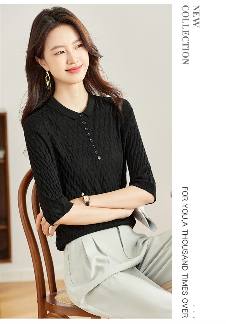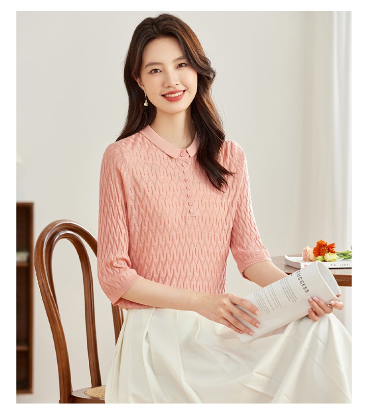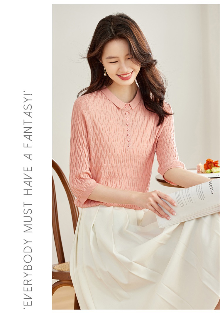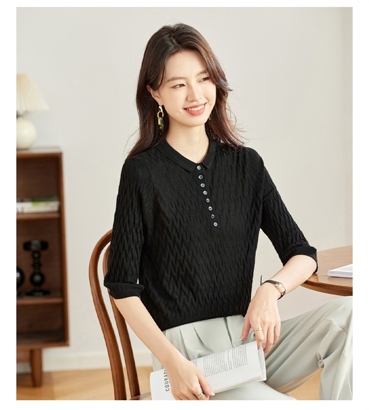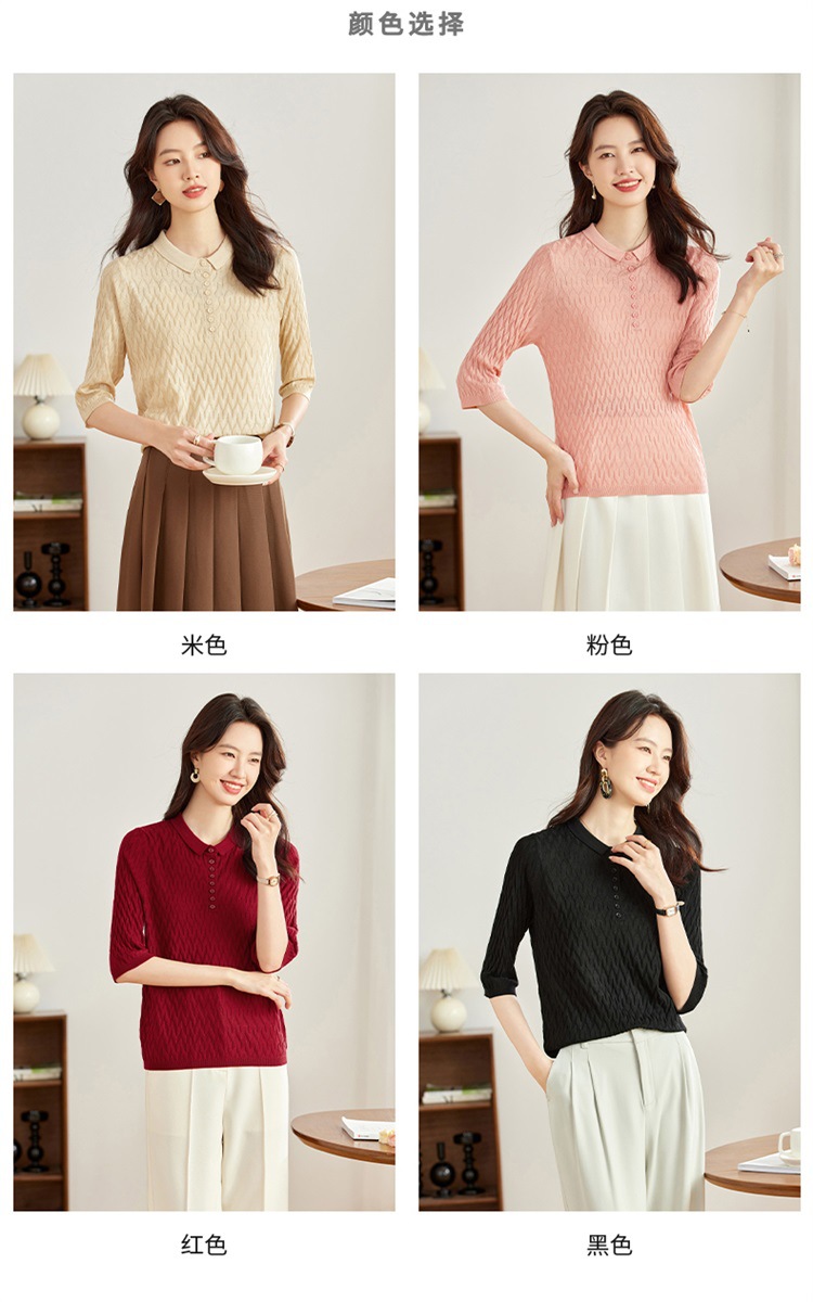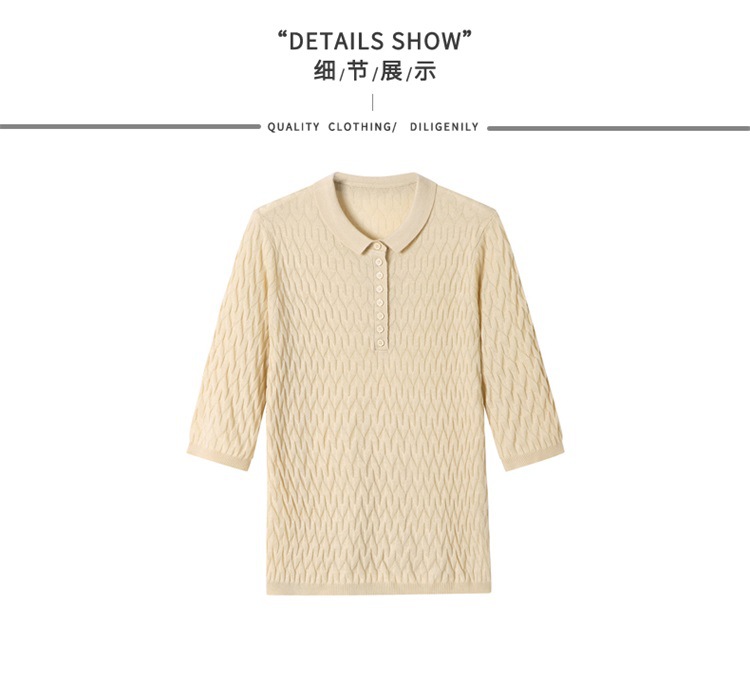 CC-16-9002早秋七分袖针织小衫女宽松上衣薄款春秋小翻领中袖打底