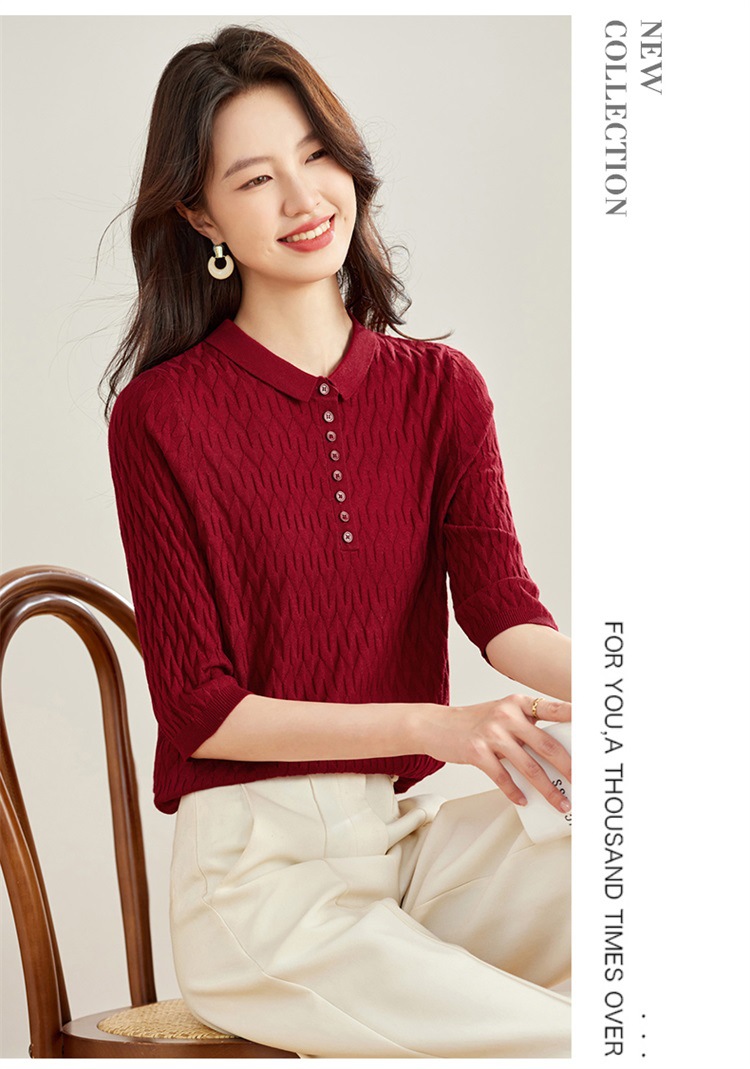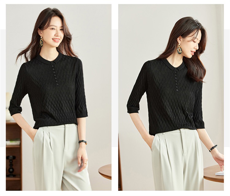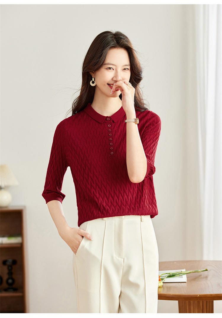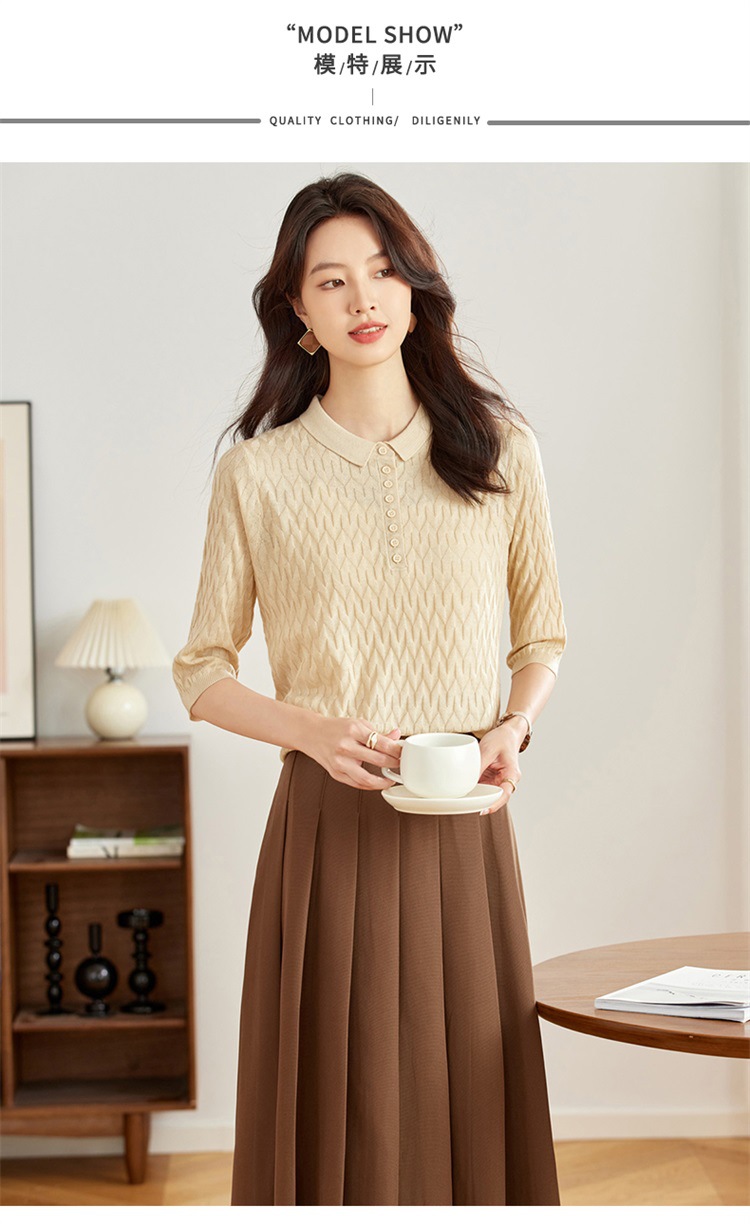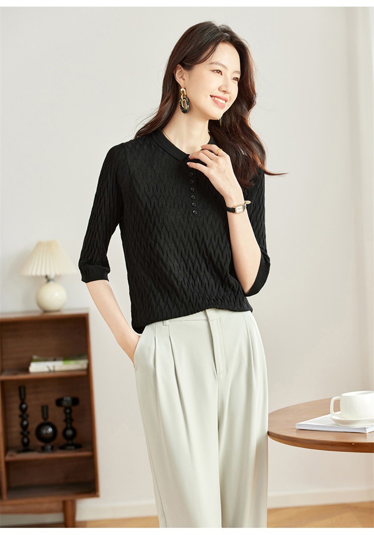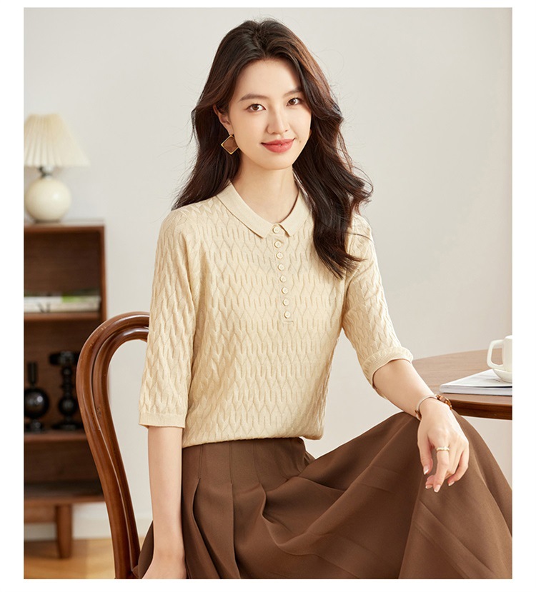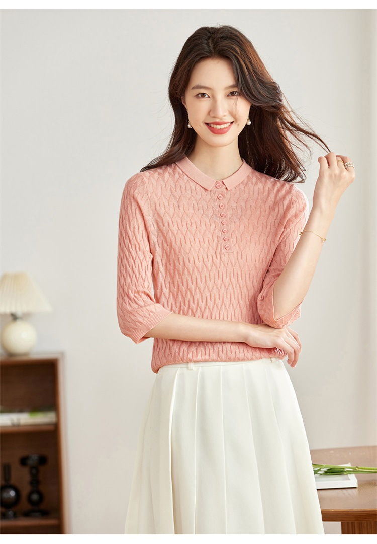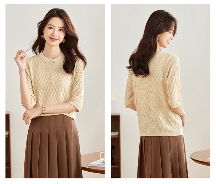 CC-16-9002早秋七分袖针织小衫女宽松上衣薄款春秋小翻领中袖打底