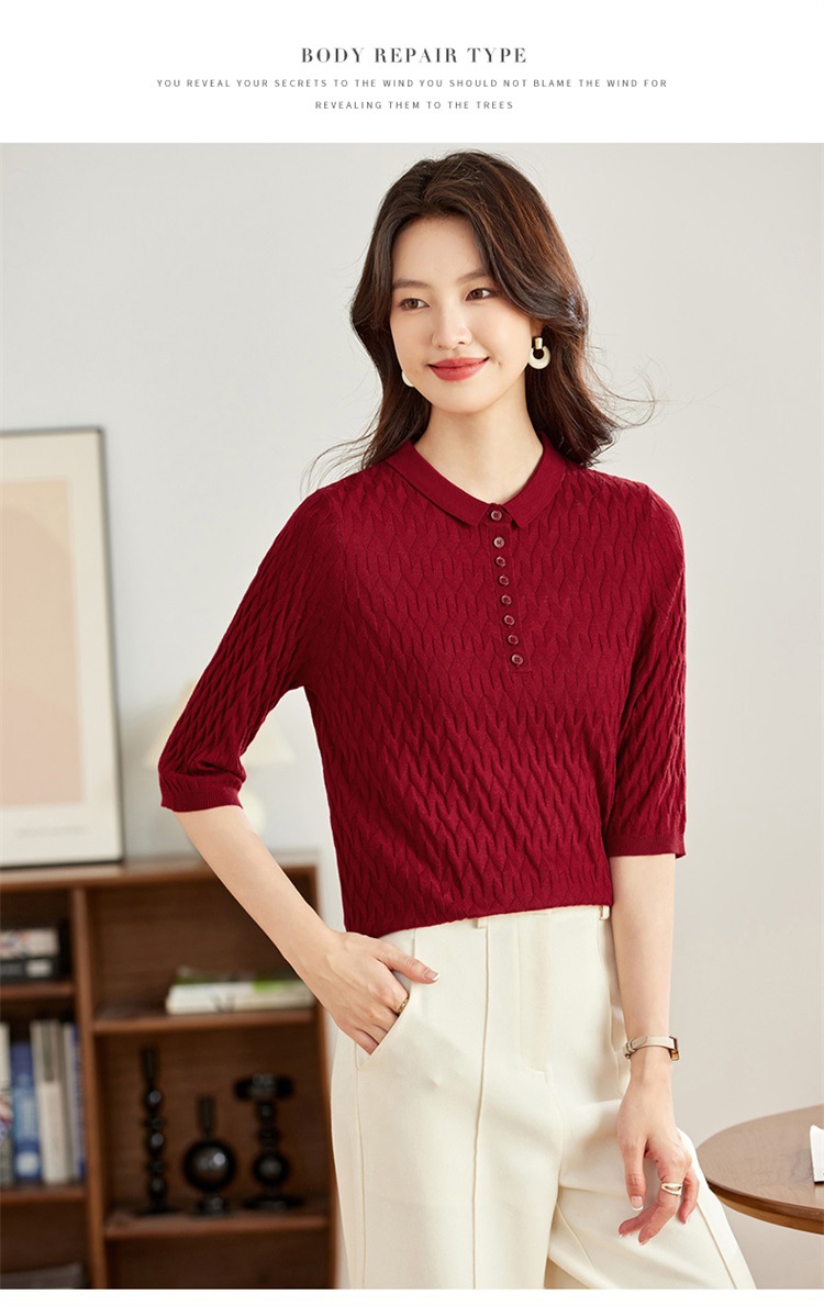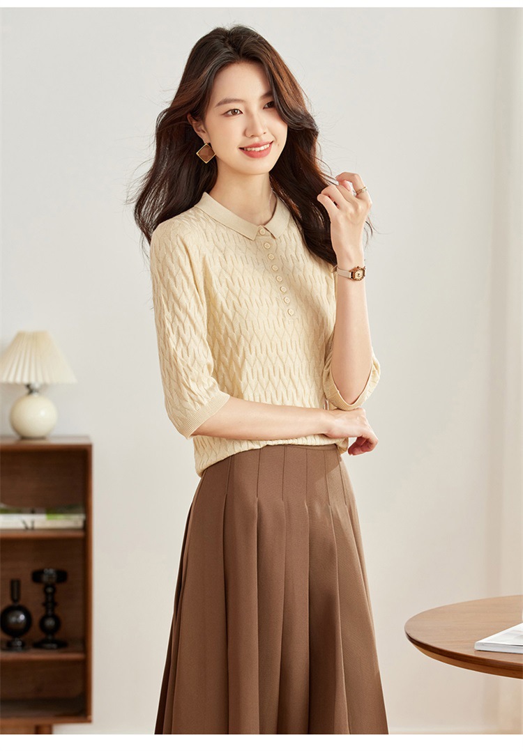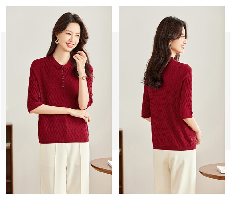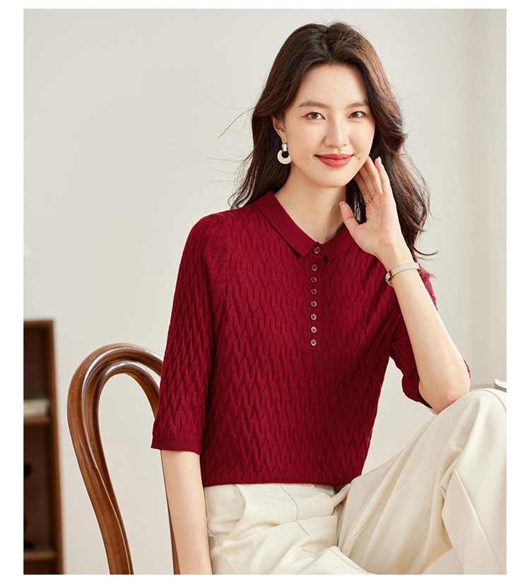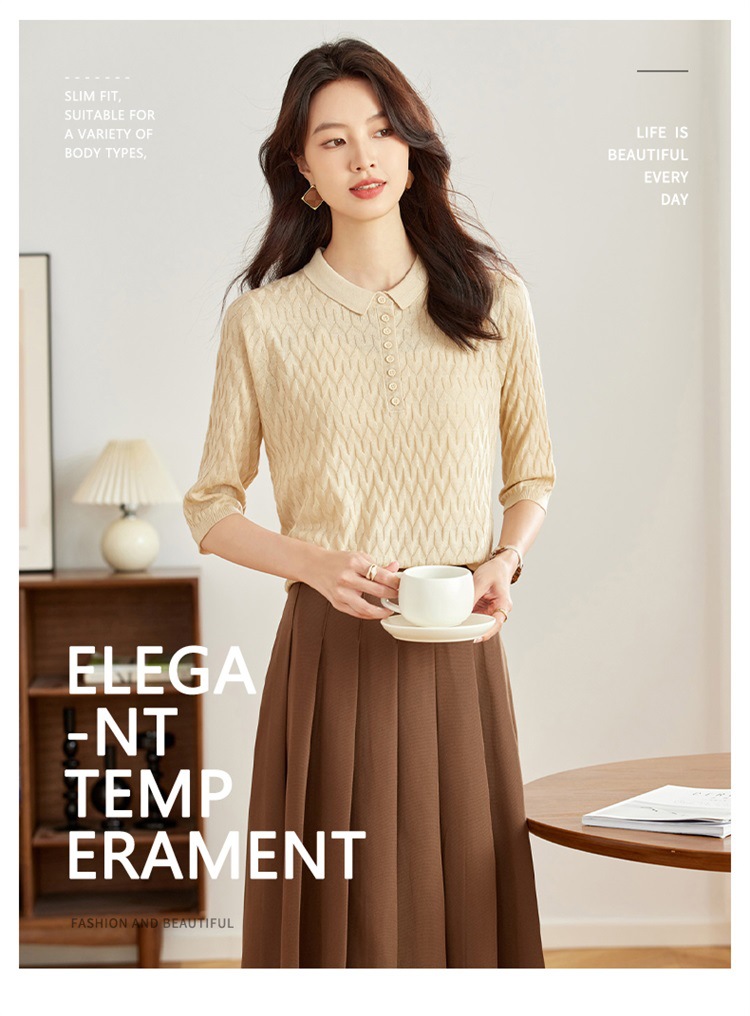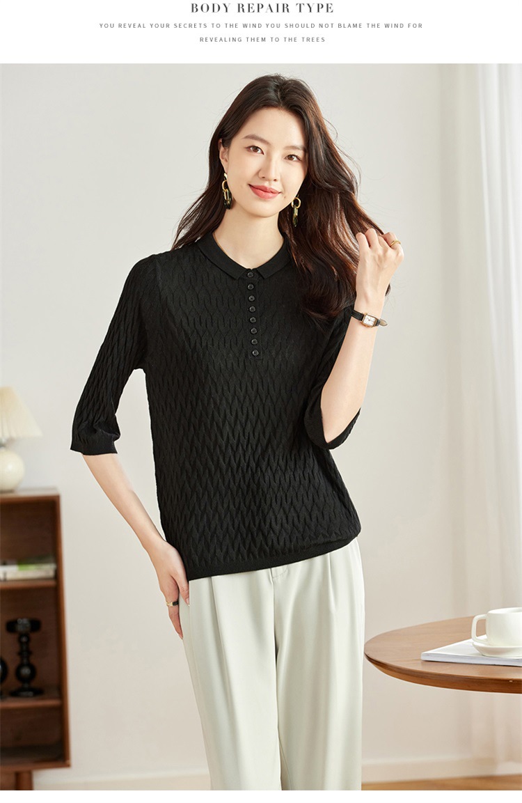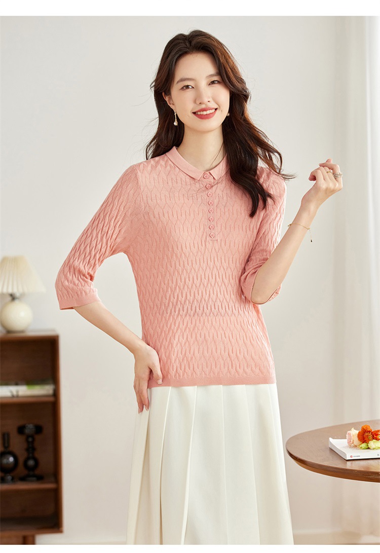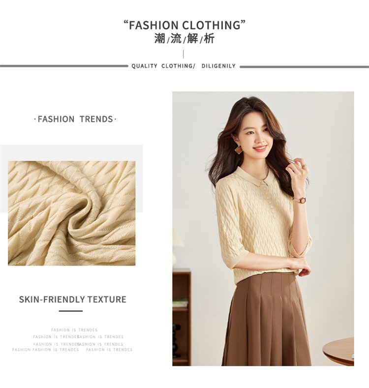 CC-16-9002早秋七分袖针织小衫女宽松上衣薄款春秋小翻领中袖打底