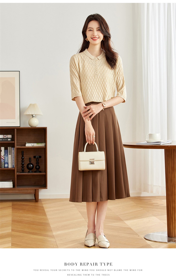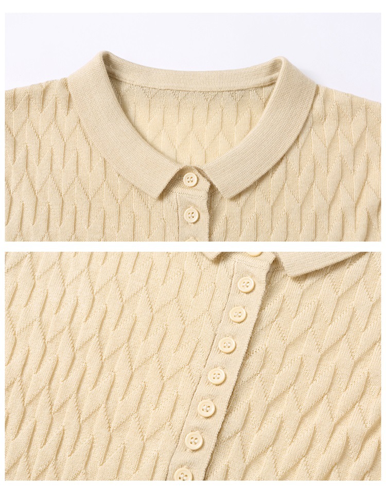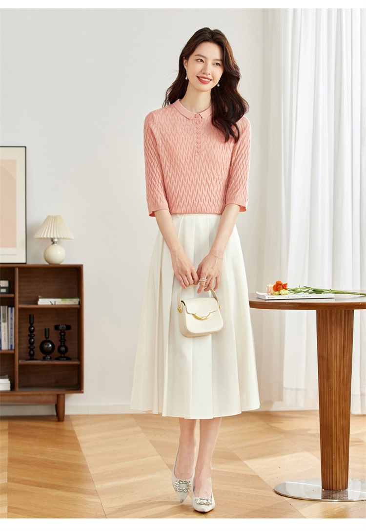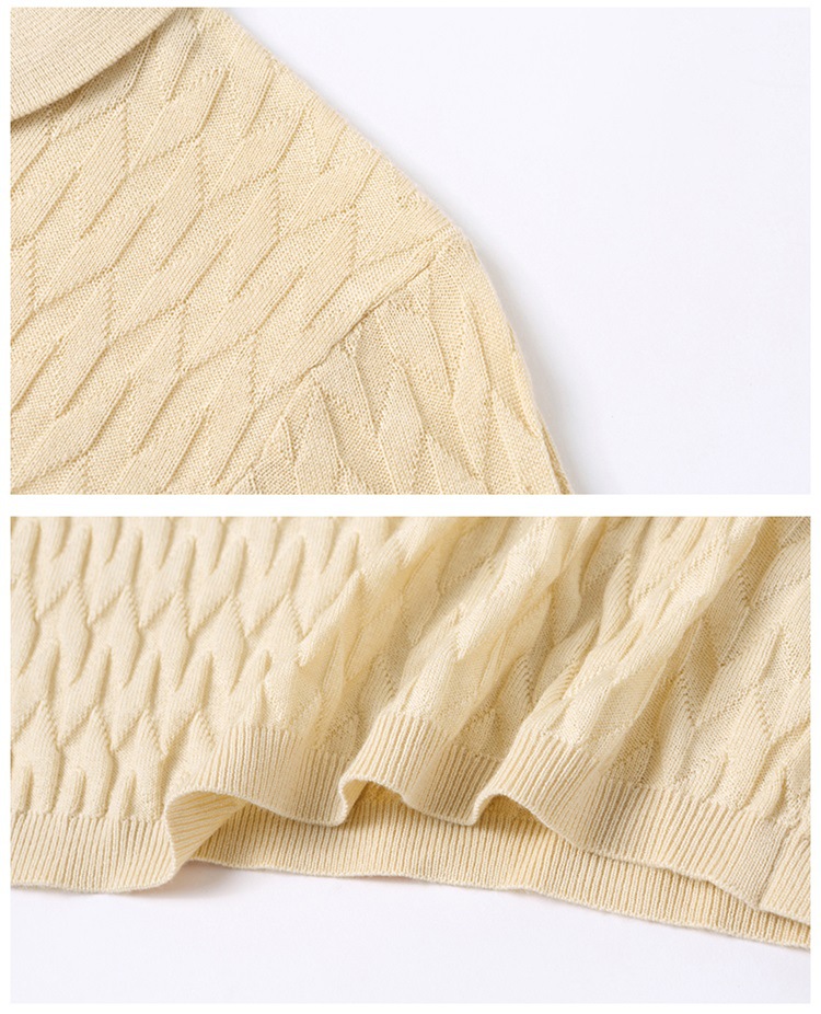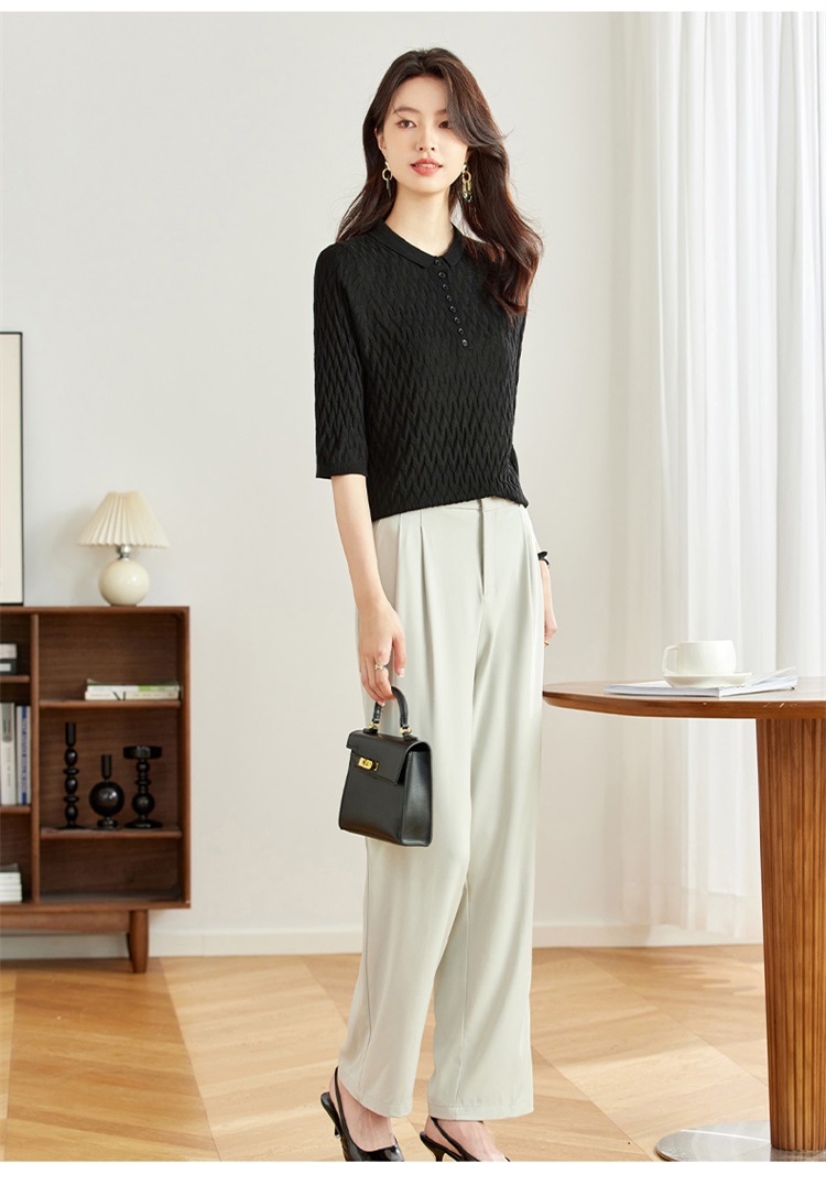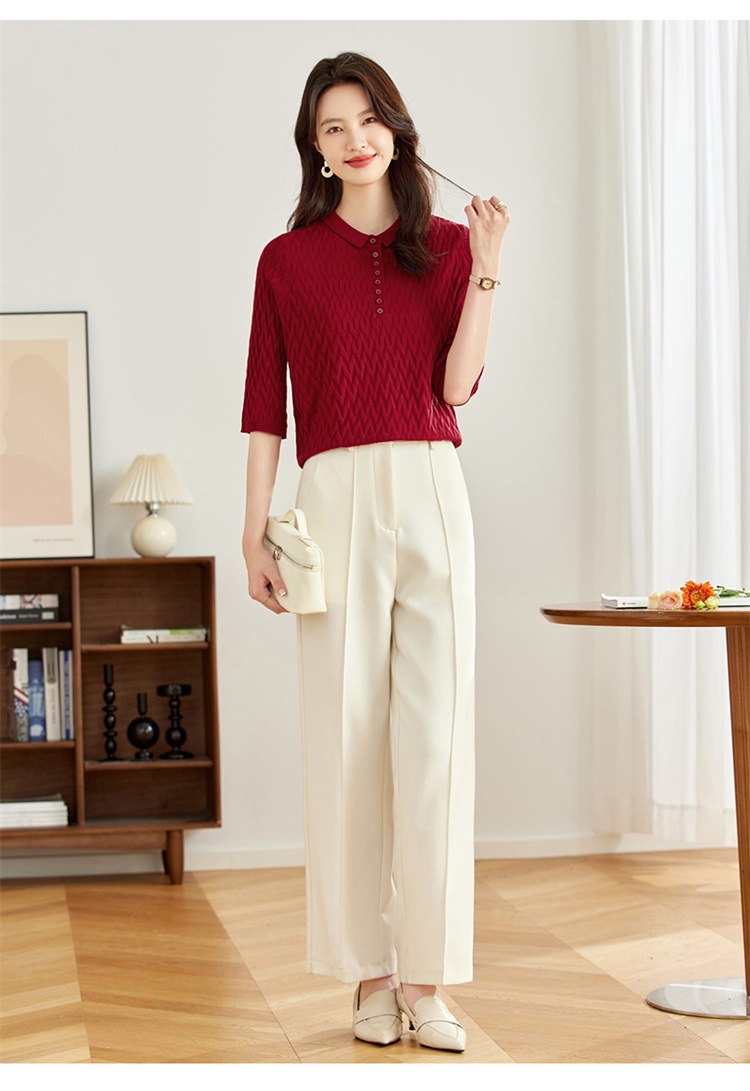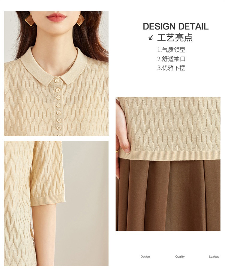 CC-16-9002早秋七分袖针织小衫女宽松上衣薄款春秋小翻领中袖打底