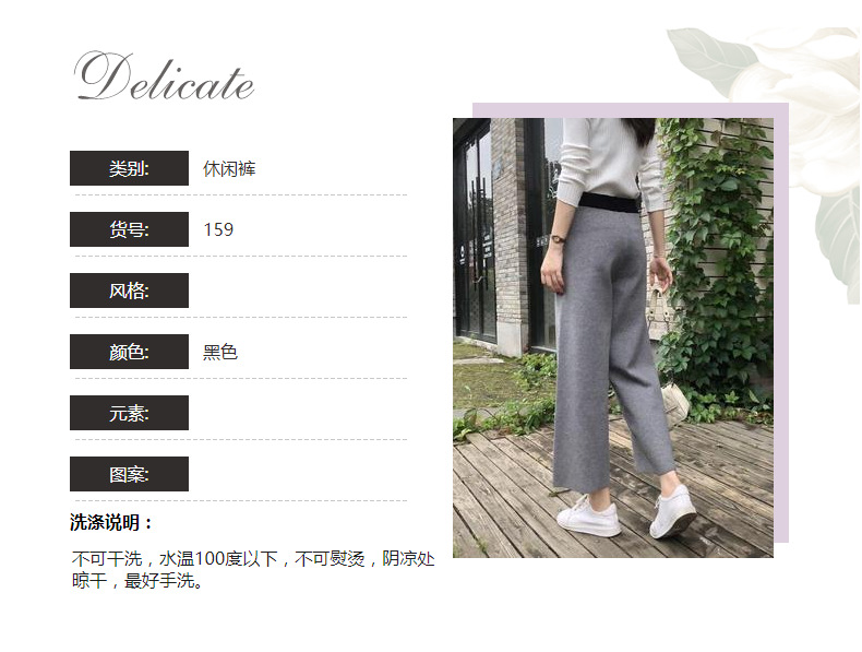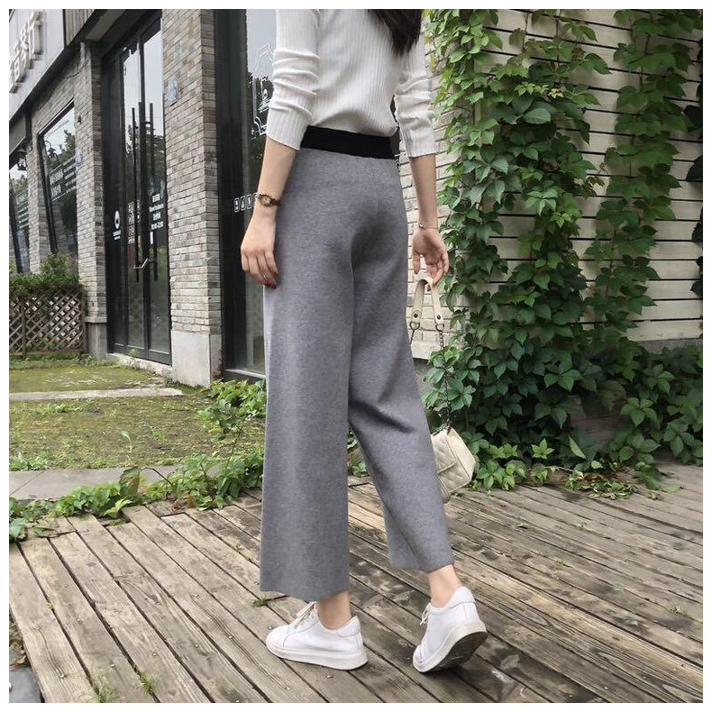 明星同款2019秋季OL气质女装包心纱针织阔腿裤