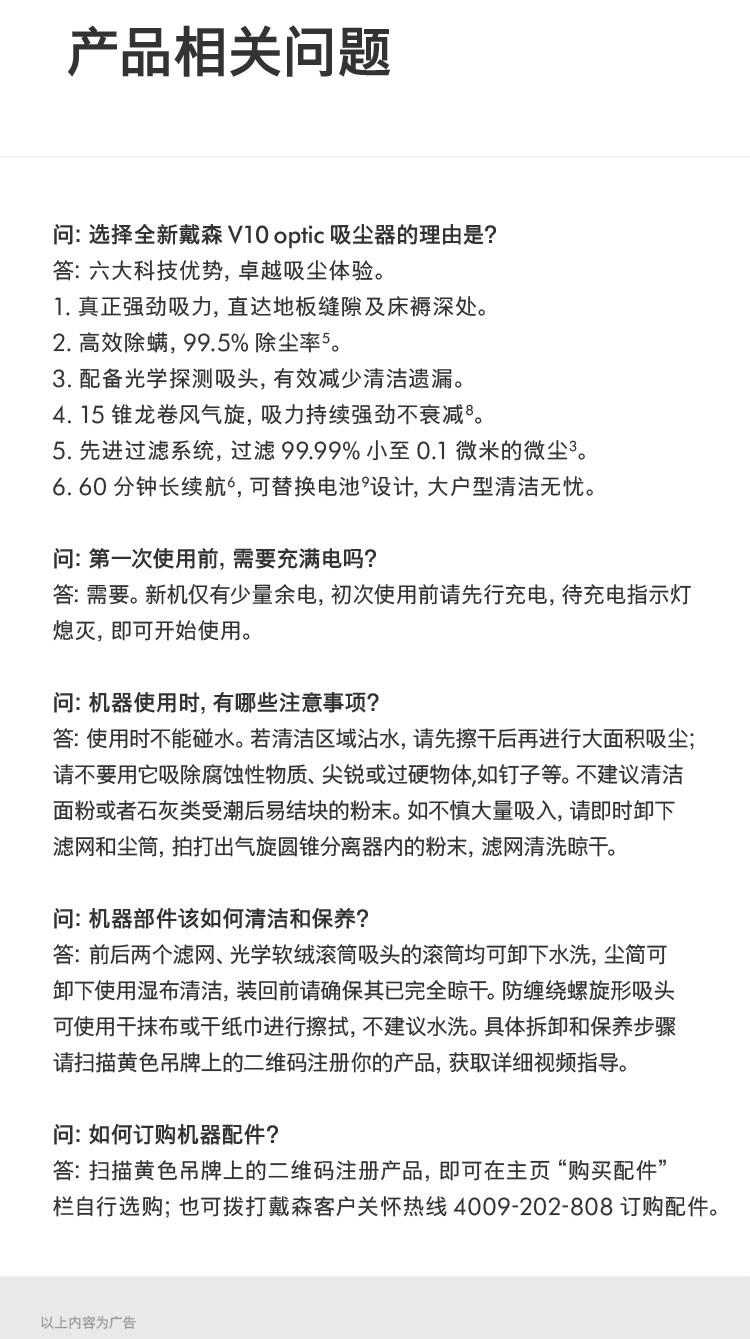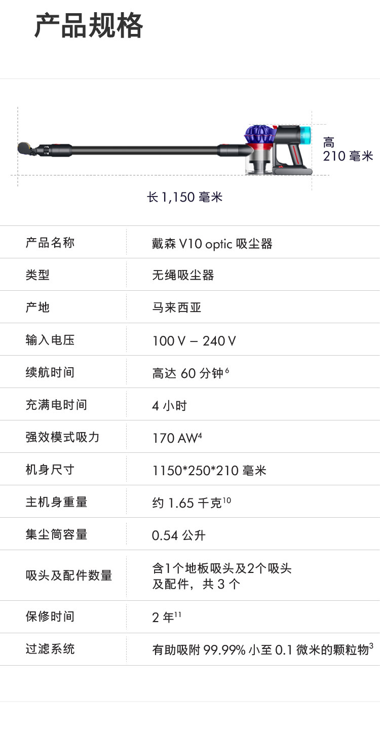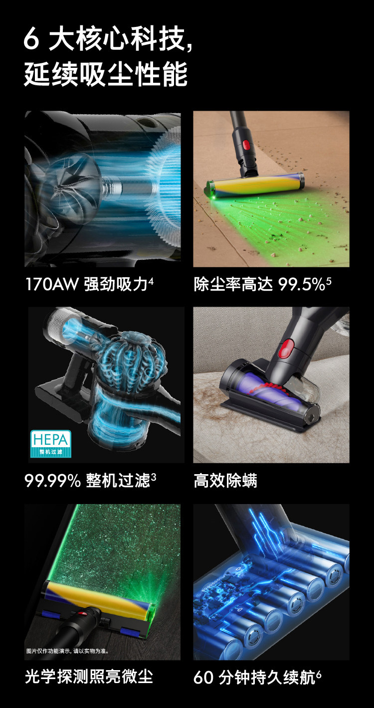 Dyson戴森 V10无线吸尘器家用大吸力除螨手持绿光