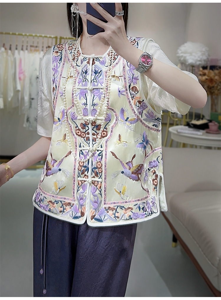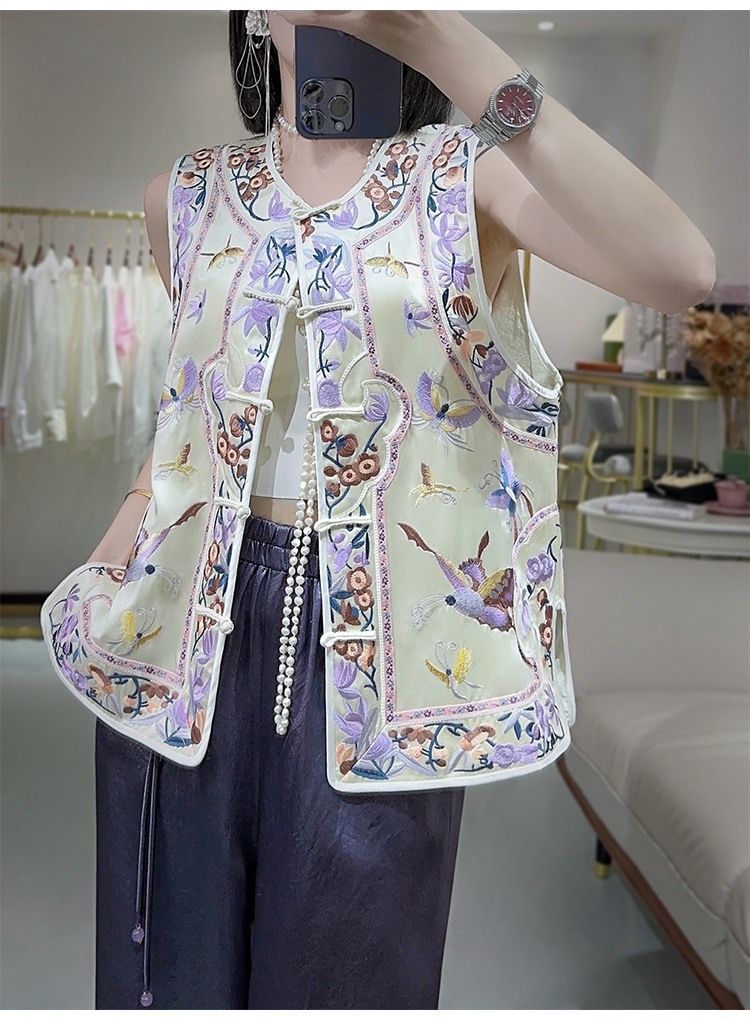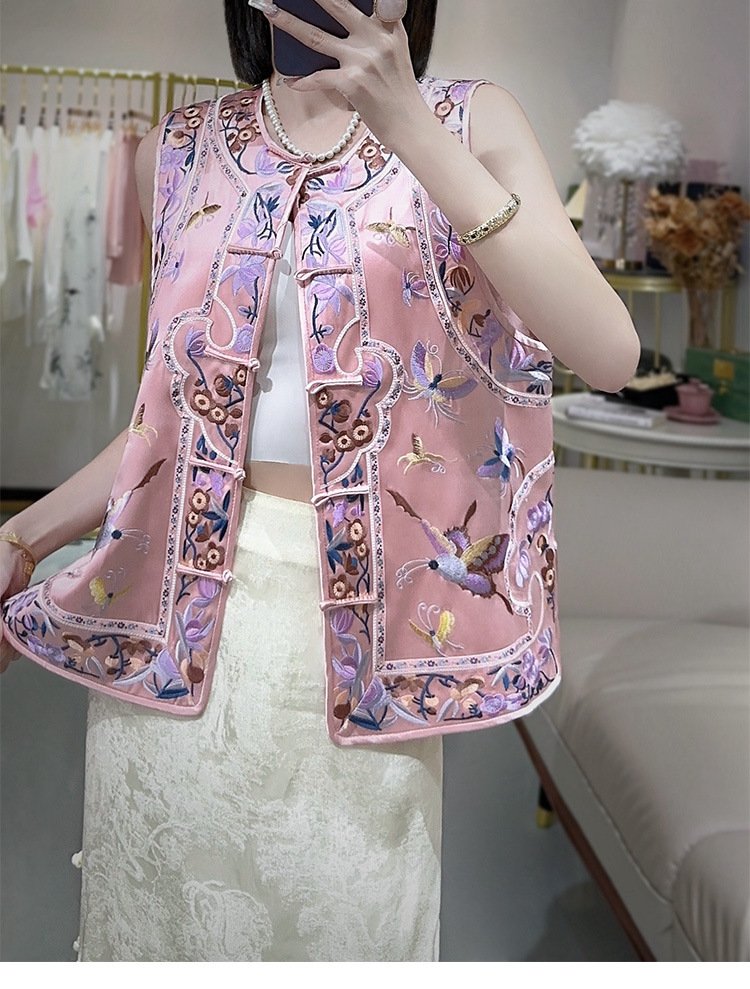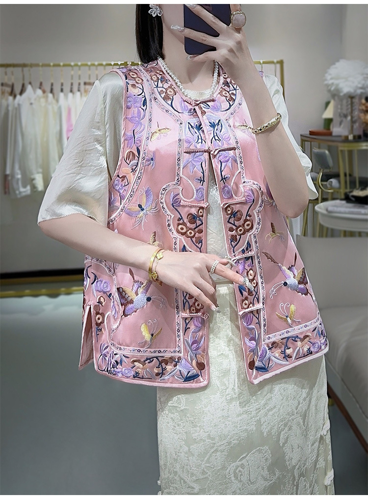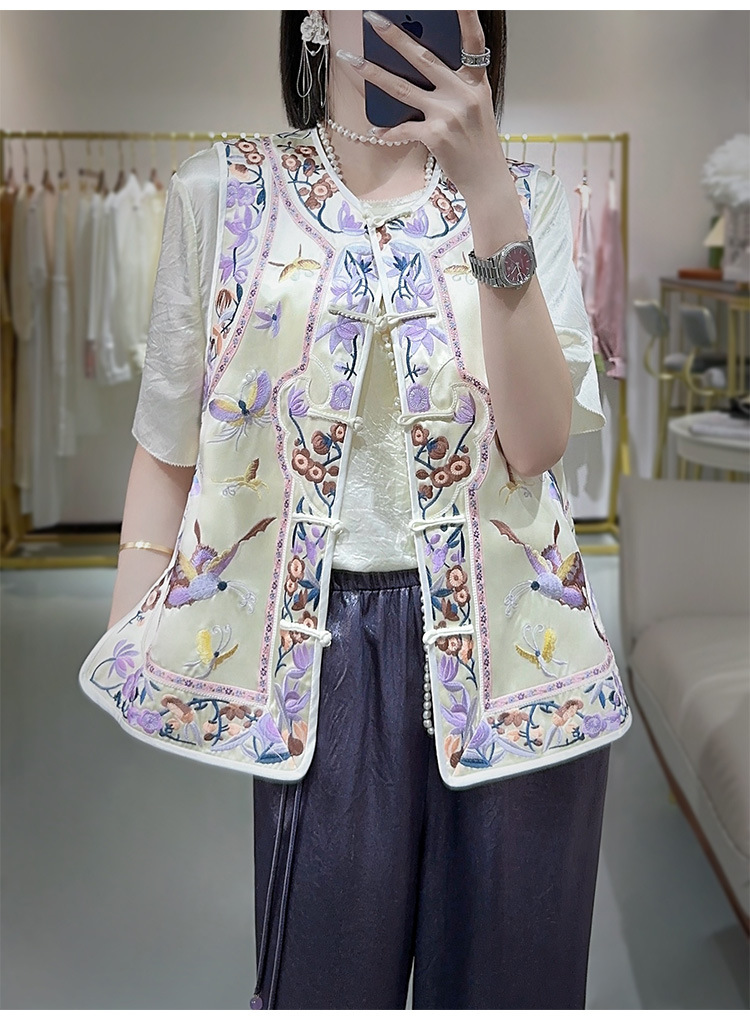 KDS-2526新中式醋酸马甲2024年秋季新款高档女装无袖刺绣盘扣上衣