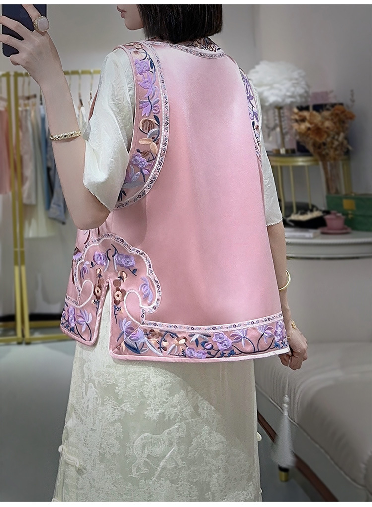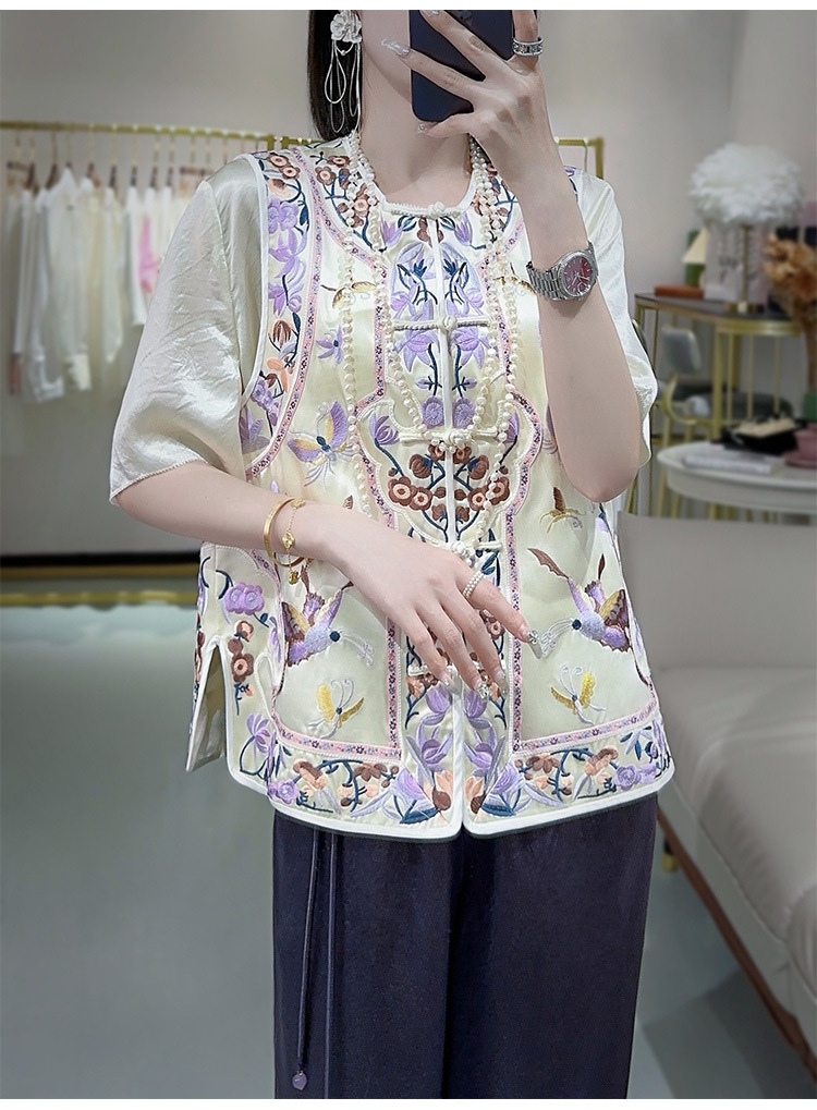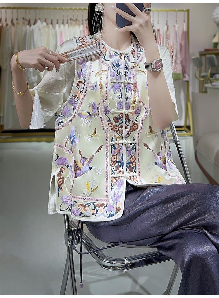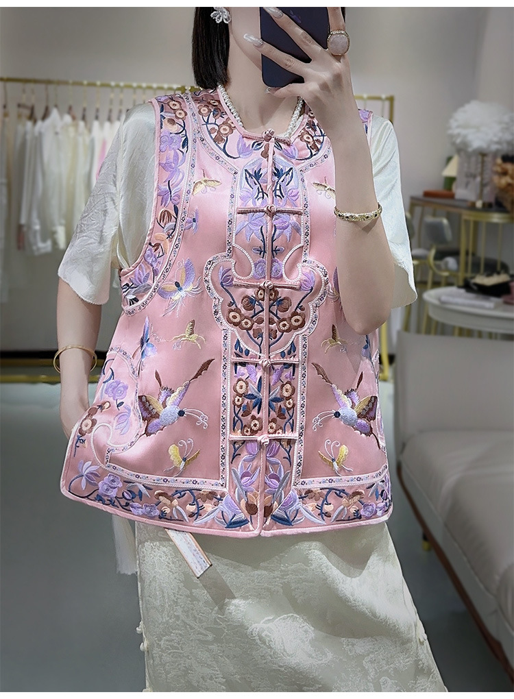 KDS-2526新中式醋酸马甲2024年秋季新款高档女装无袖刺绣盘扣上衣