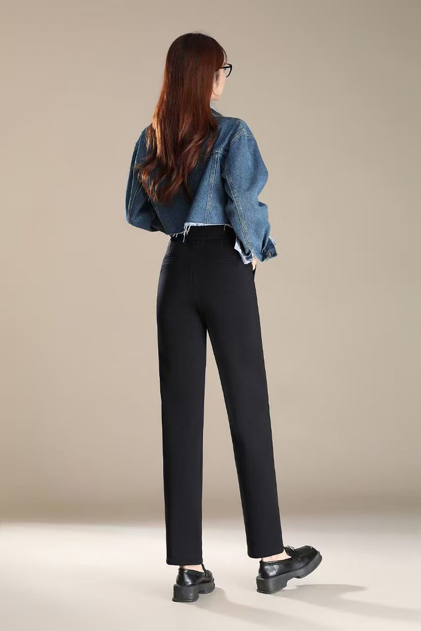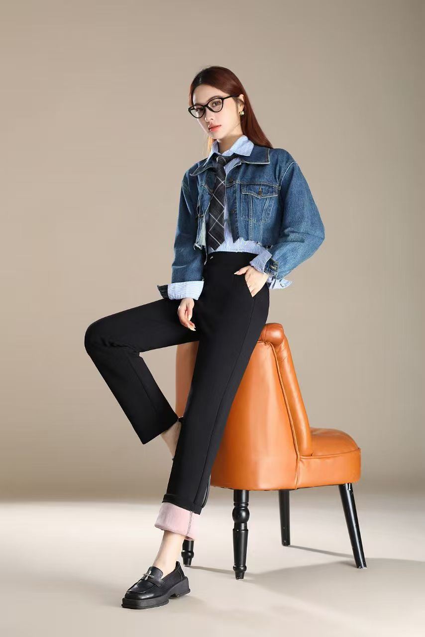 【品名】LS竹纤维女士时尚加绒直筒裤8313