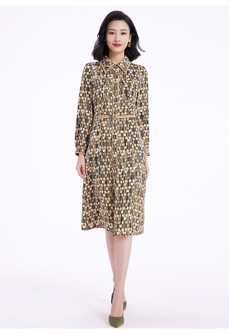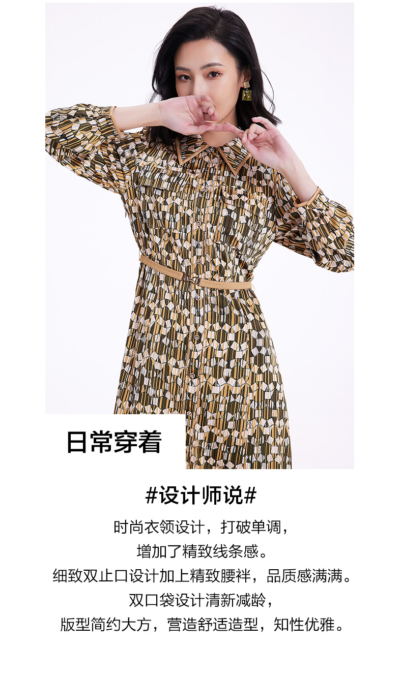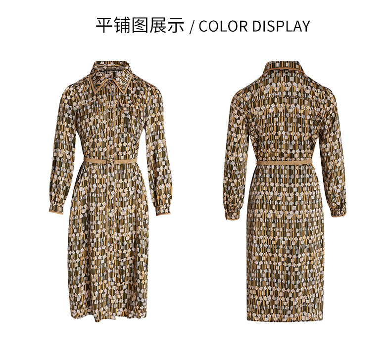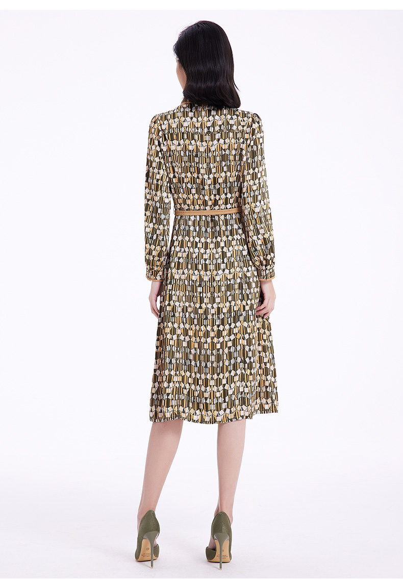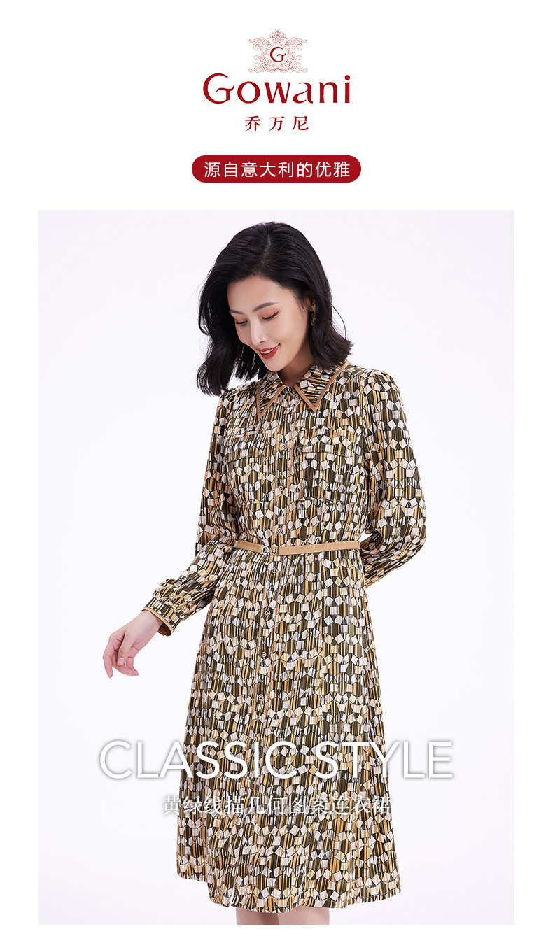 乔万尼春季新款长袖印花连衣裙法式收腰气质显瘦EF3E855
