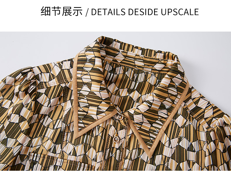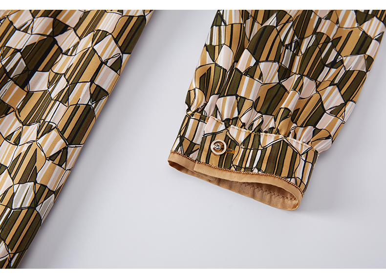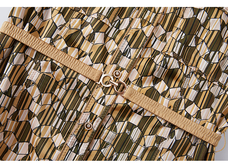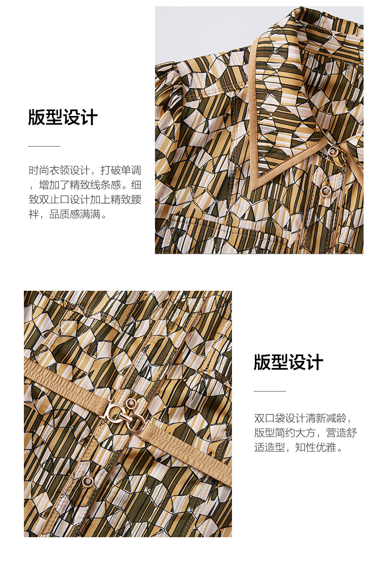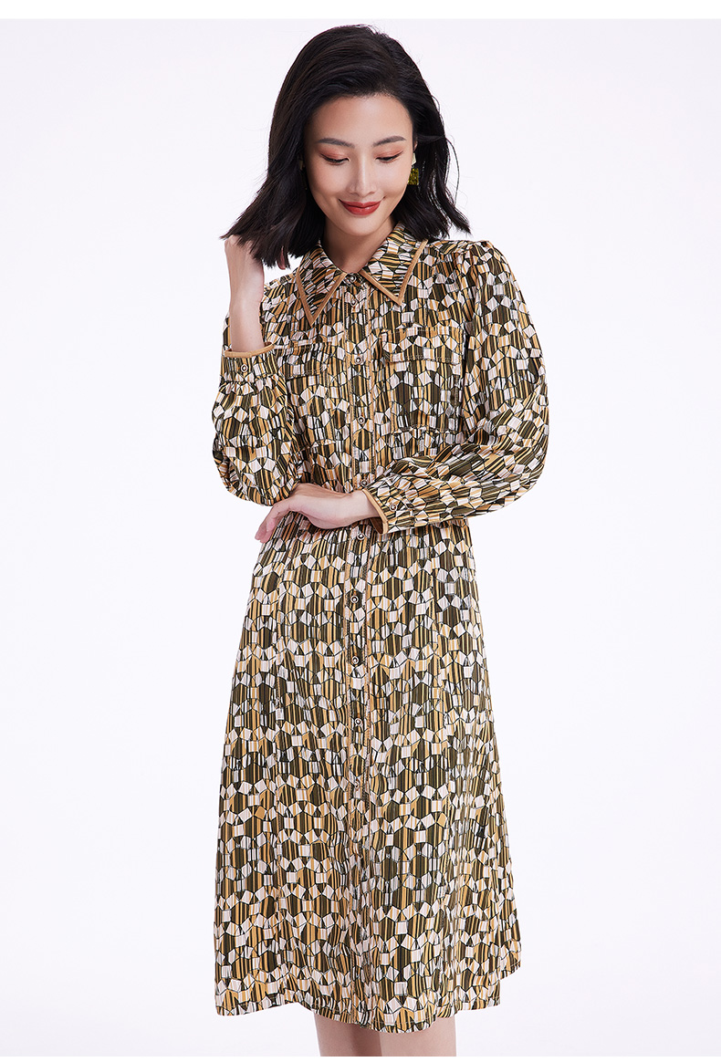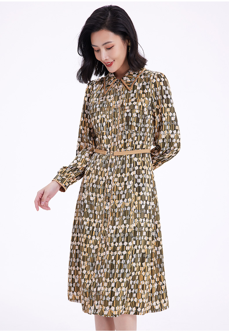 乔万尼春季新款长袖印花连衣裙法式收腰气质显瘦EF3E855