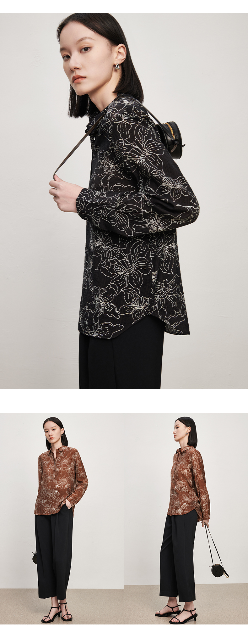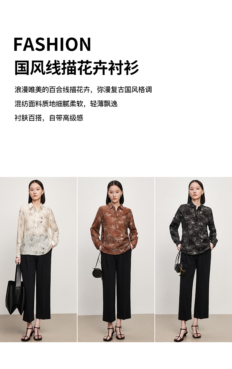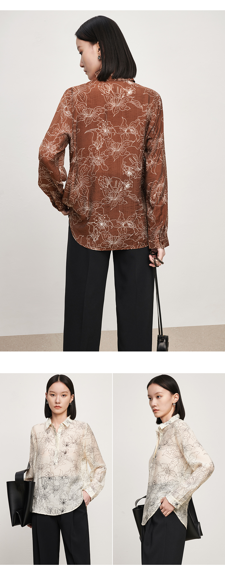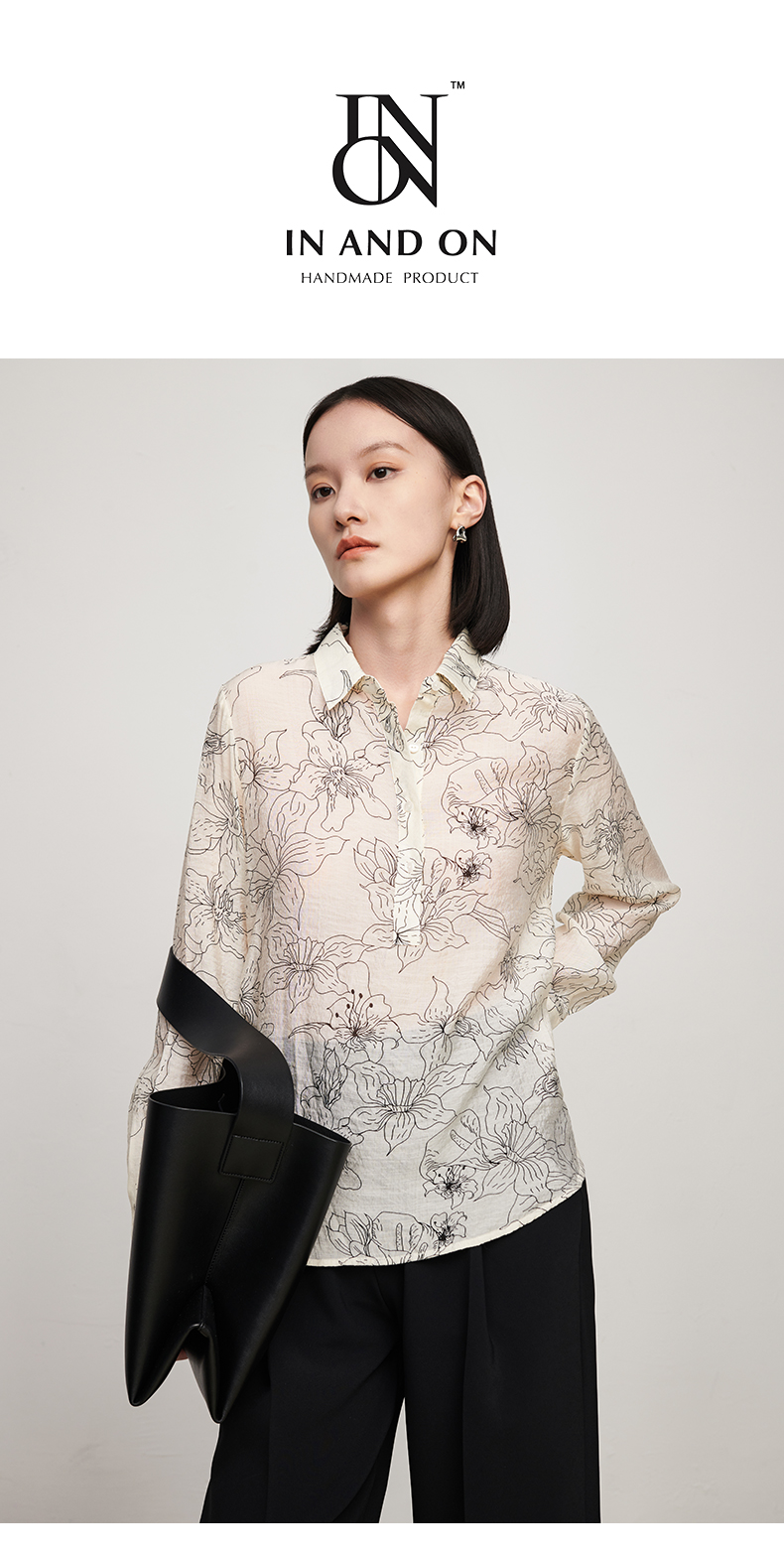 IN AND ON文艺复古印花长袖衬衫女2023夏季新款薄款新中式国风上衣