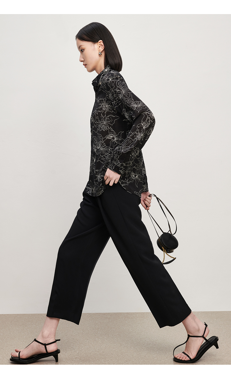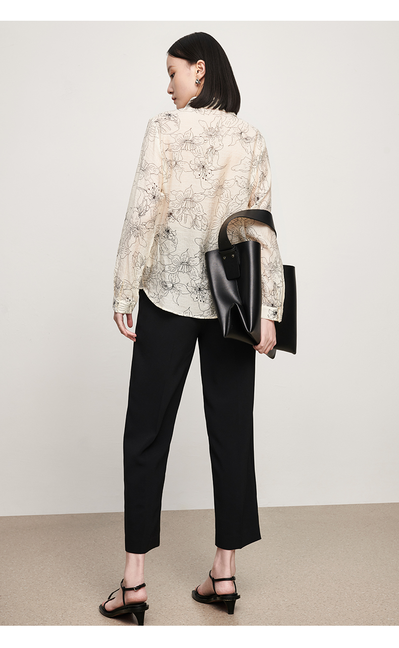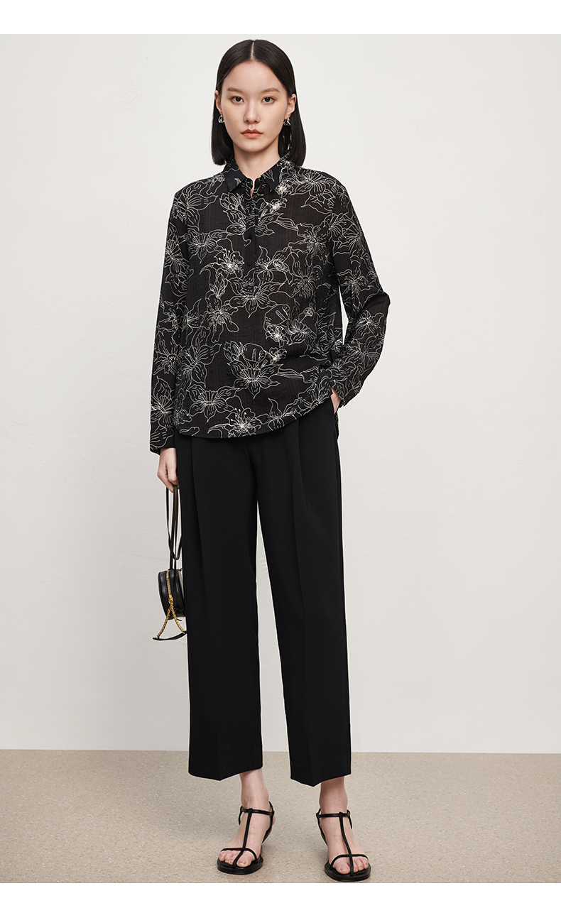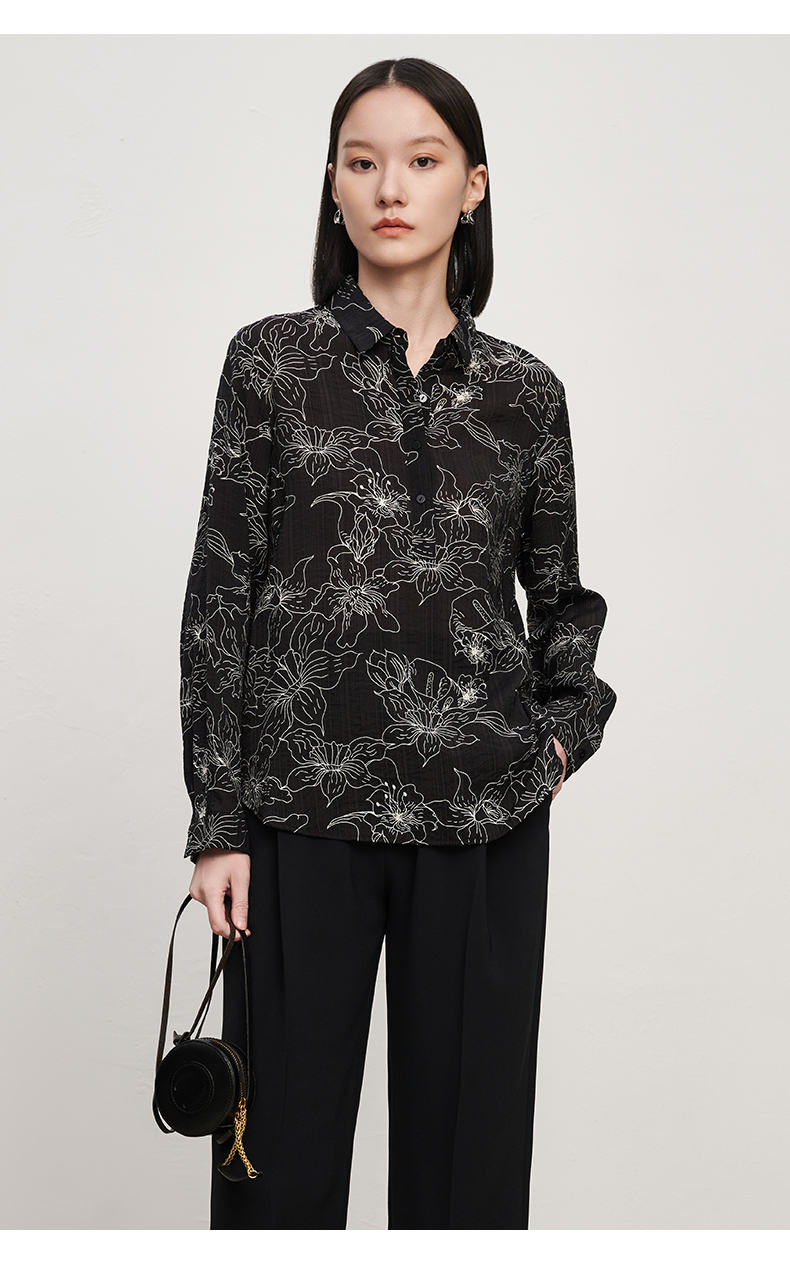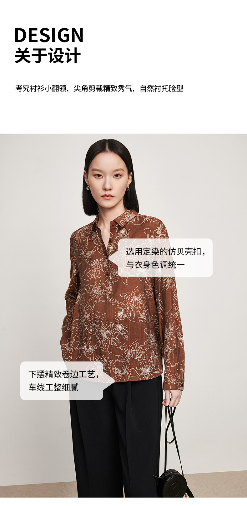 IN AND ON文艺复古印花长袖衬衫女2023夏季新款薄款新中式国风上衣