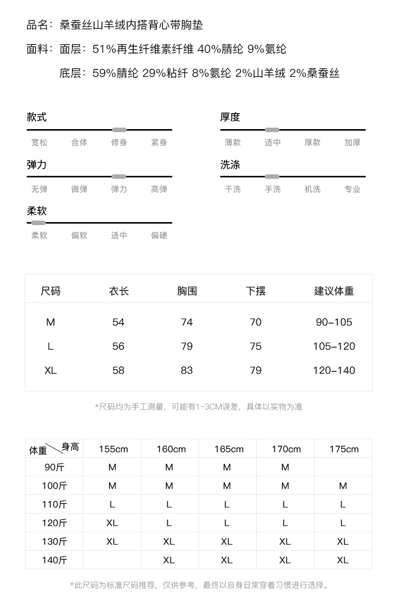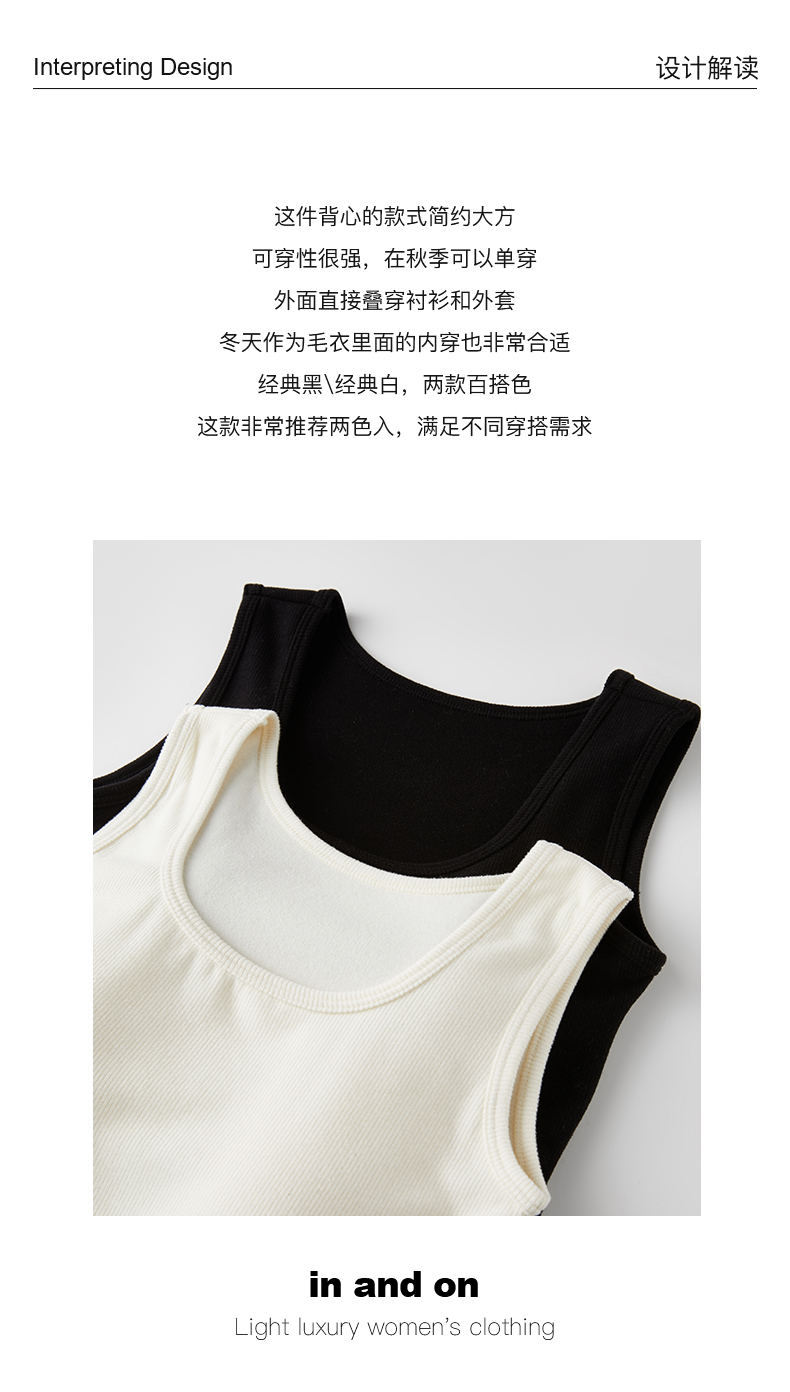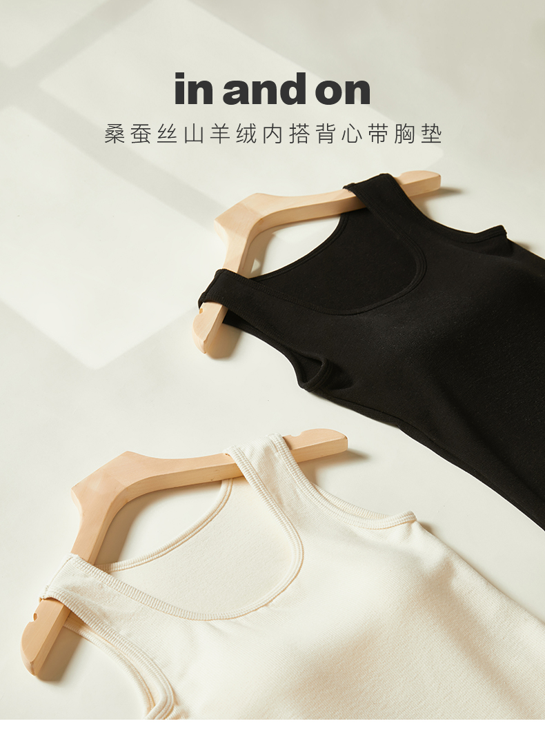 54051 inandon山羊绒桑蚕丝混纺软糯保暖内搭冬季背心带胸垫