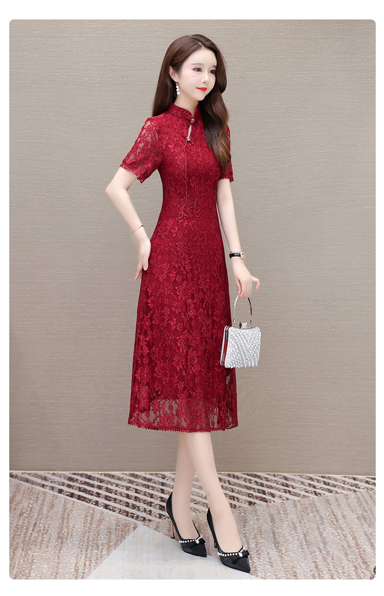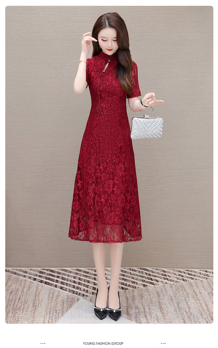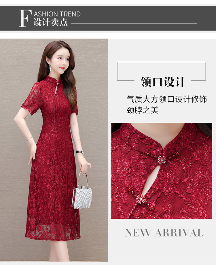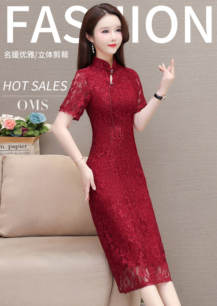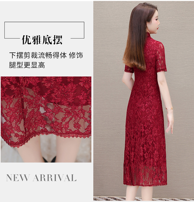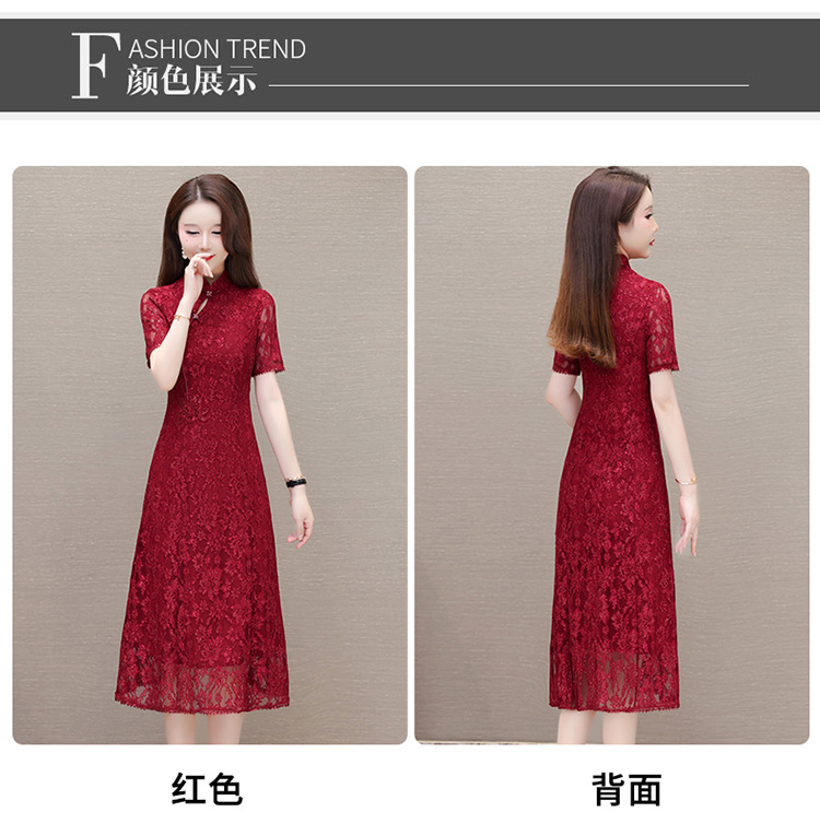 国风优雅,修身蕾丝立领短袖连衣裙QYM-OMS-JDA428-L