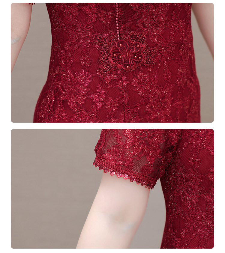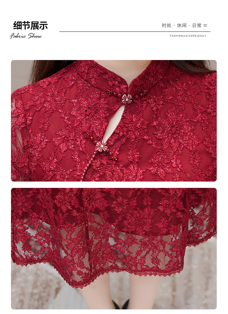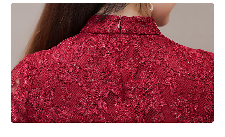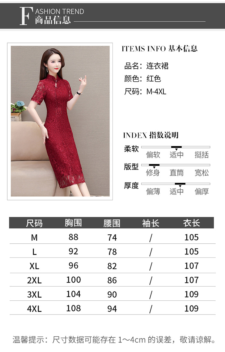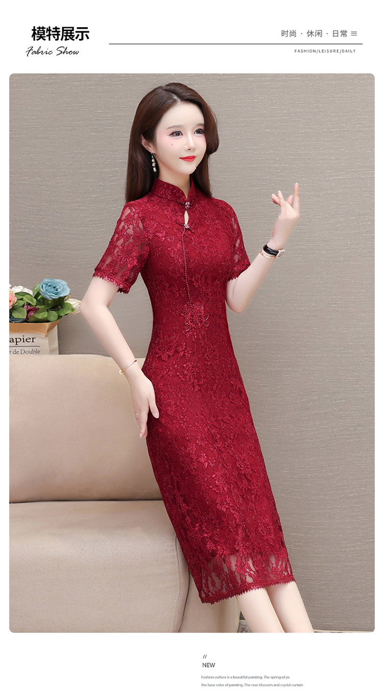 国风优雅,修身蕾丝立领短袖连衣裙QYM-OMS-JDA428-L