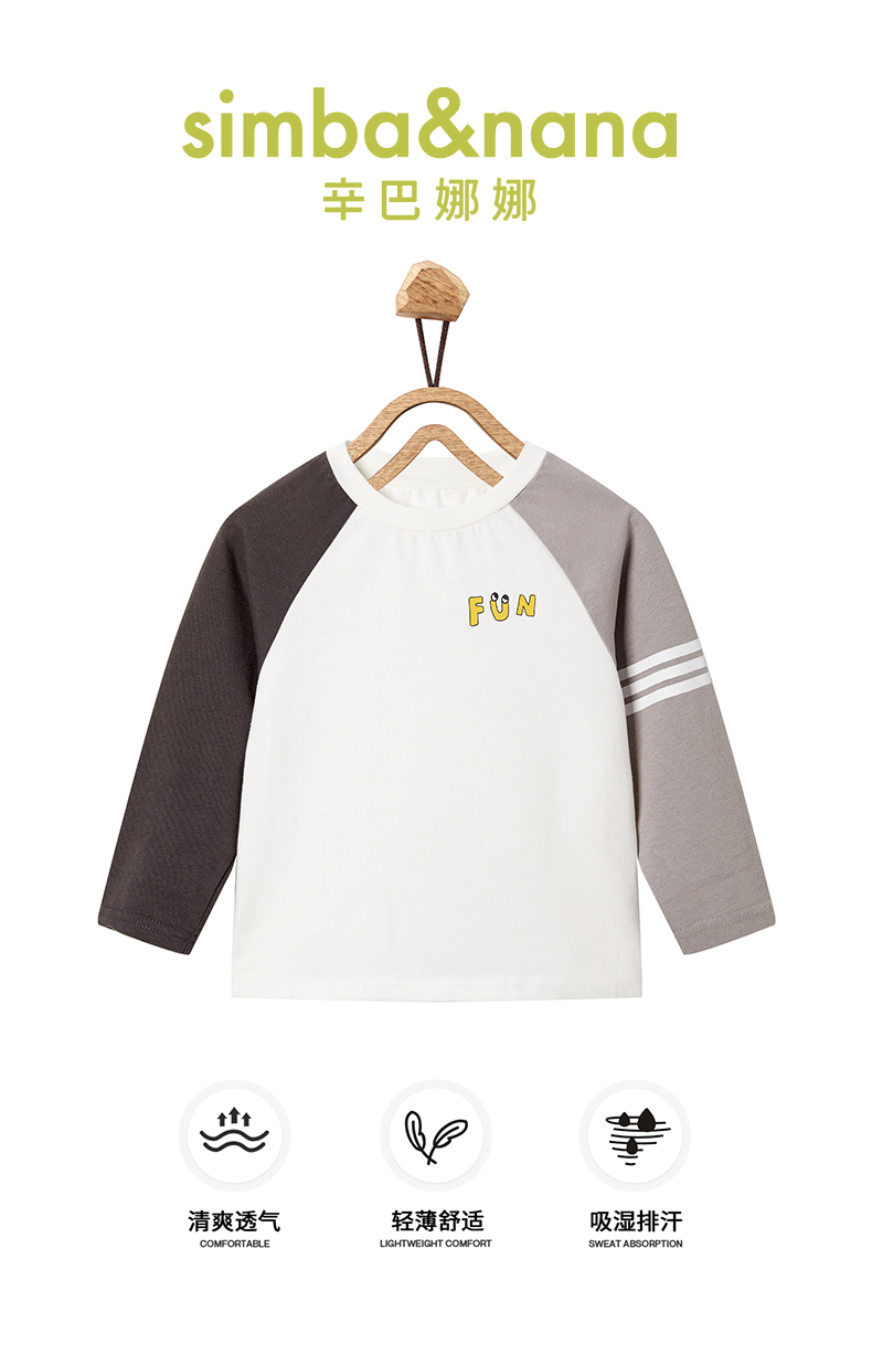 【辛巴娜娜】simbanana新款男童tb风长袖撞色打底t恤插肩袖上衣春秋装洋气