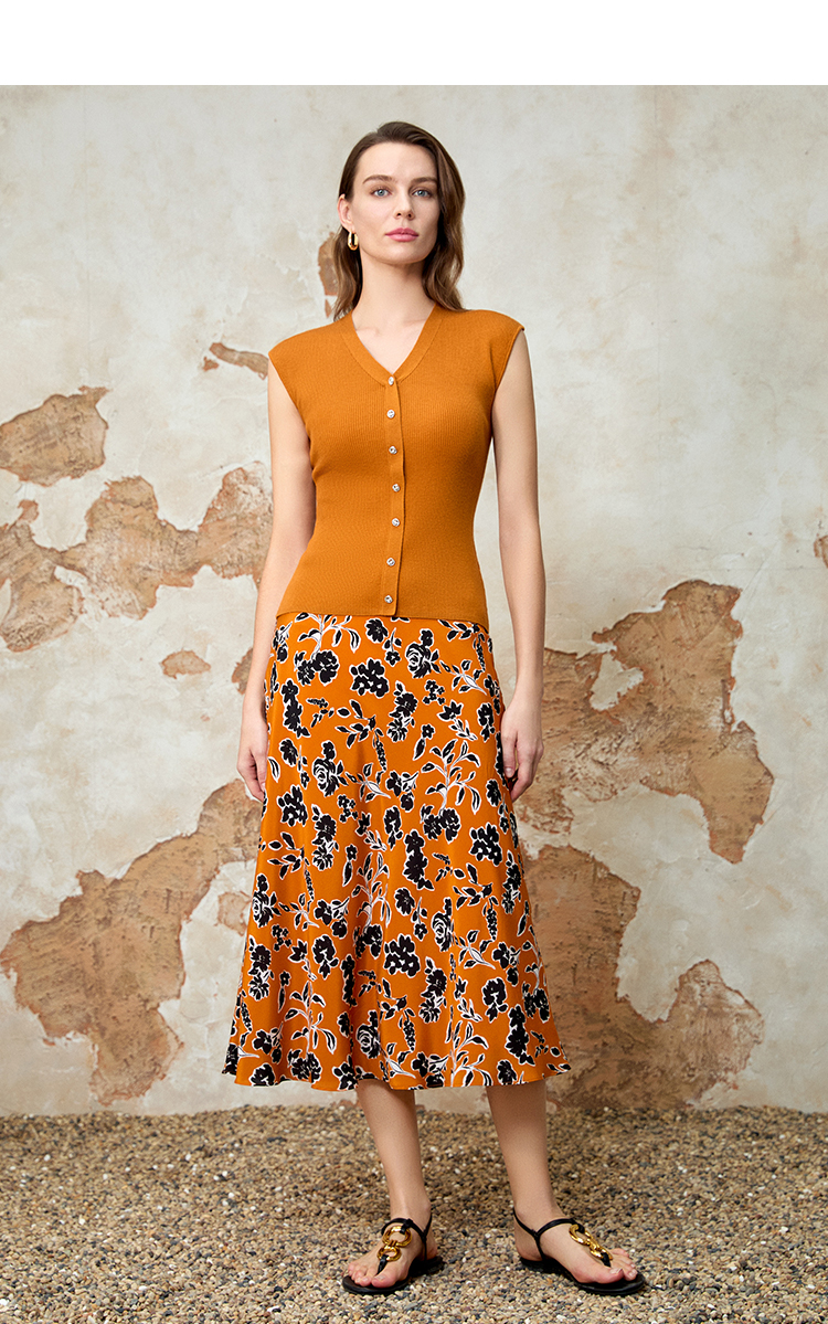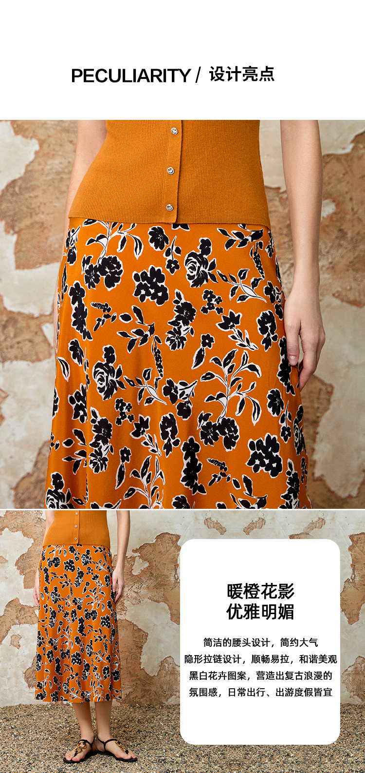 EITIE爱特爱气质通勤高腰显瘦a字印花半身裙夏季新款8206914