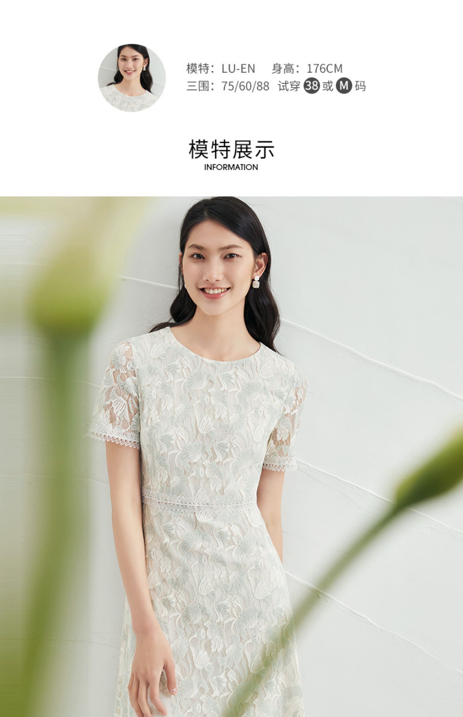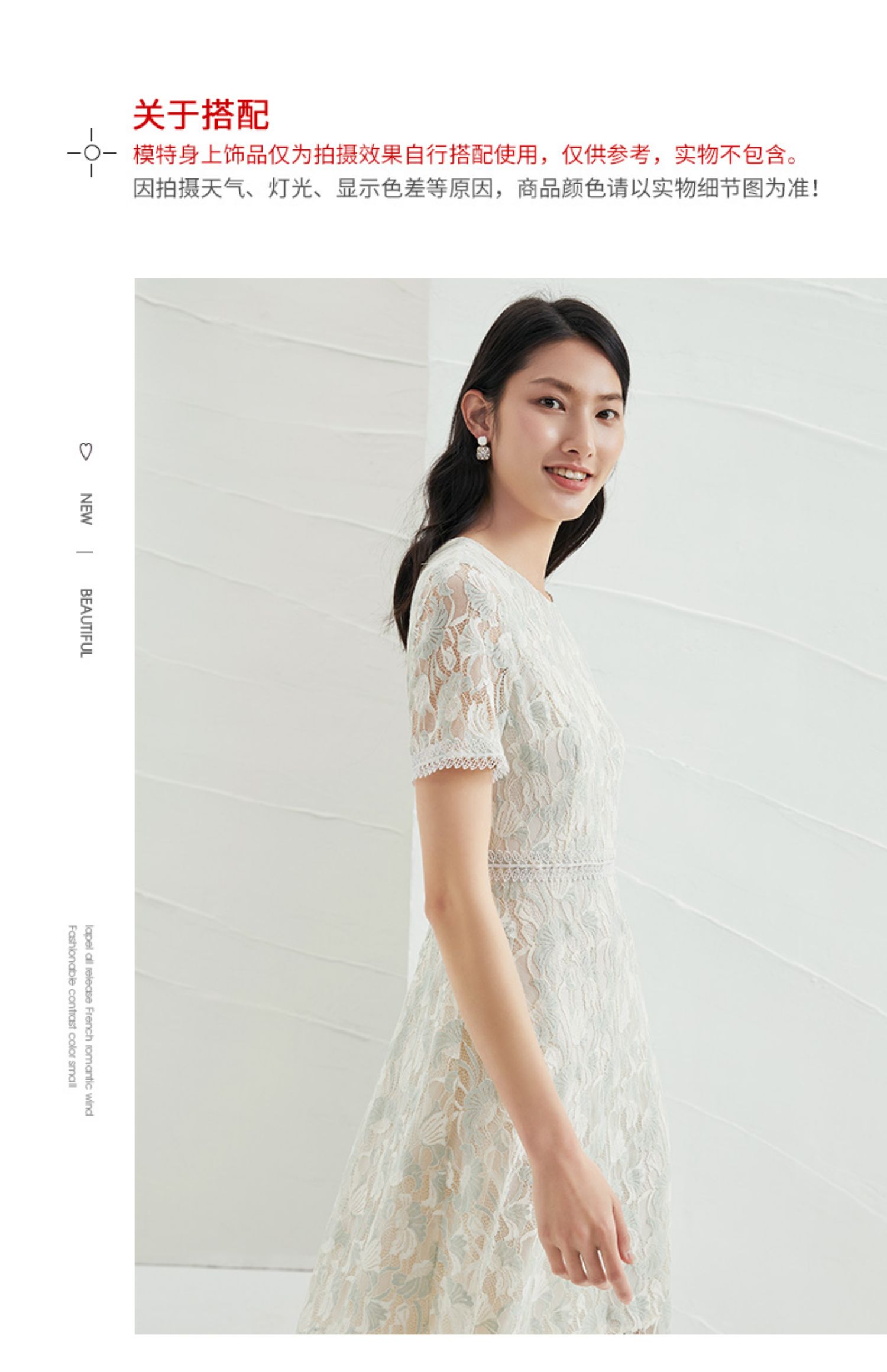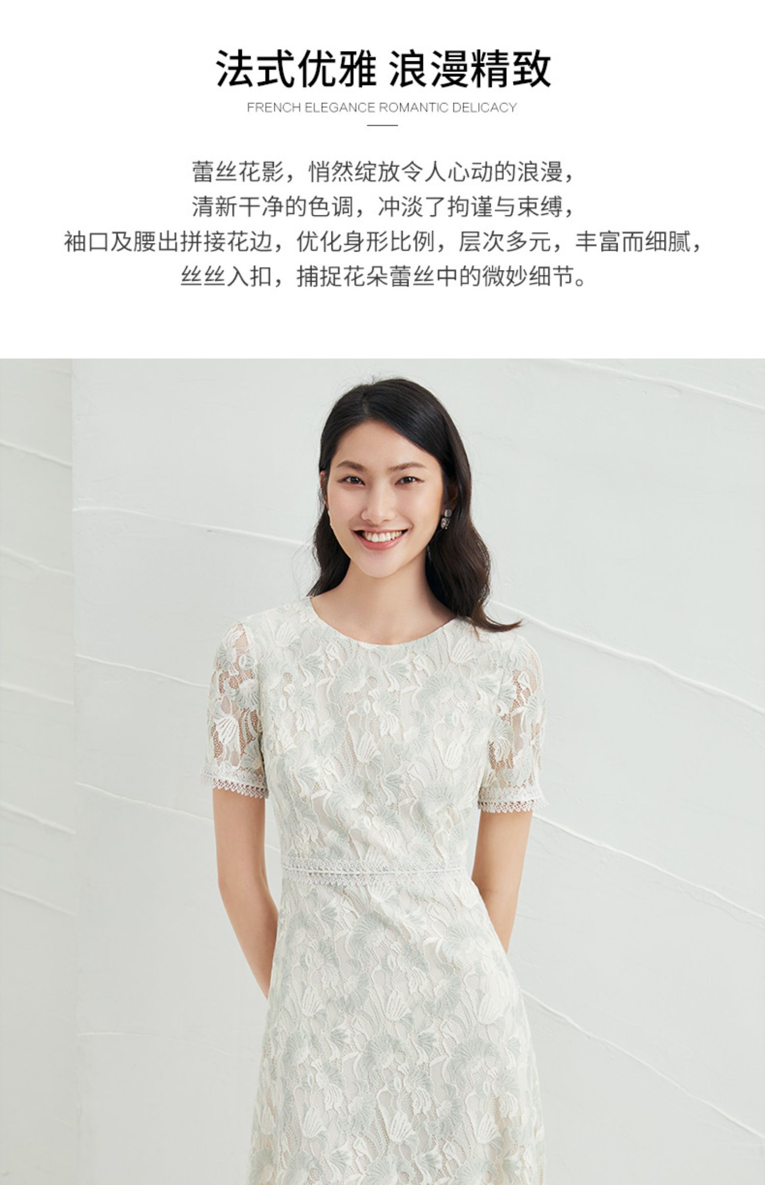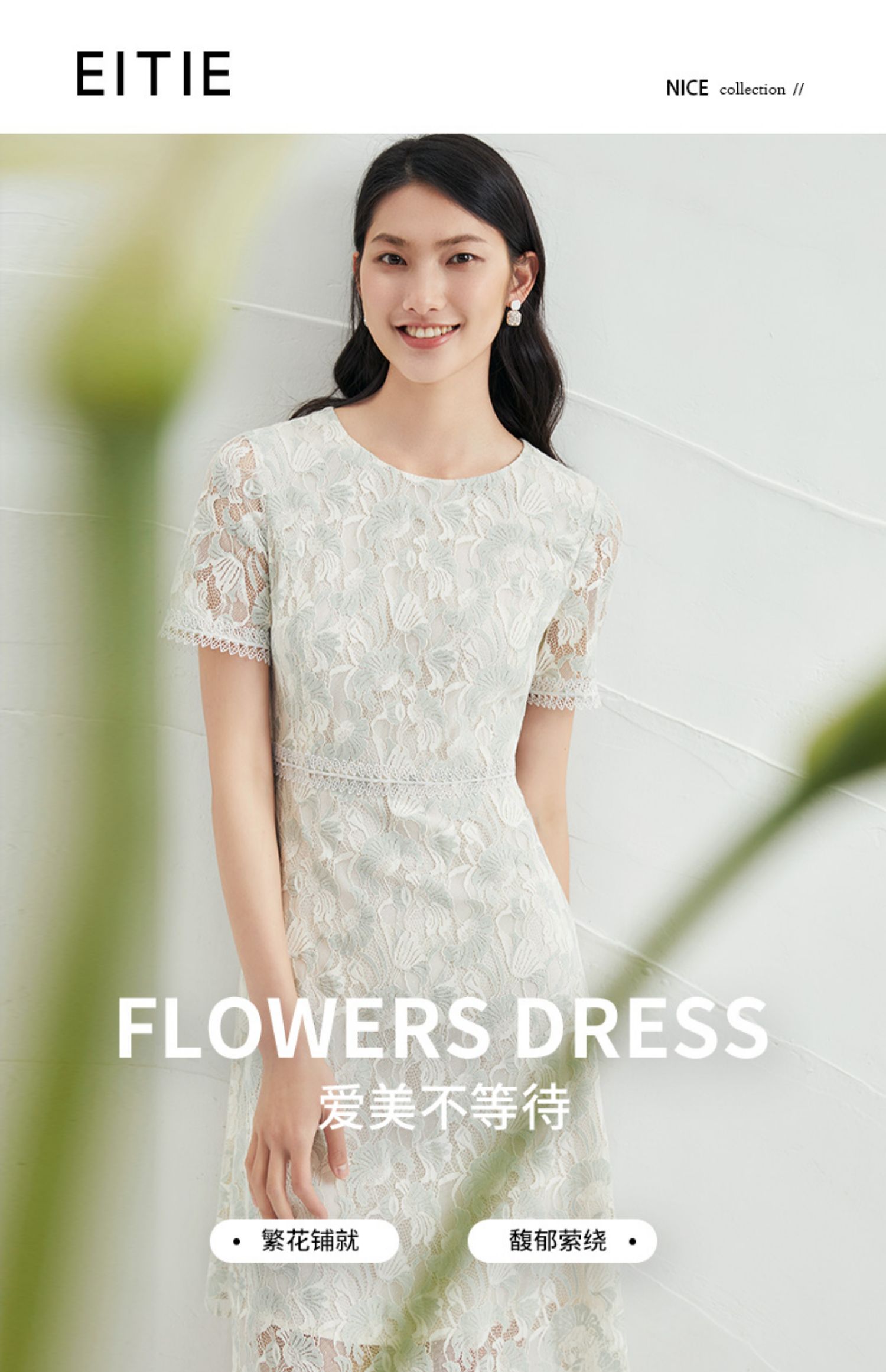 EITIE爱特爱夏季新款时间简约百搭通勤温柔气质蕾丝a字连衣裙B2207936