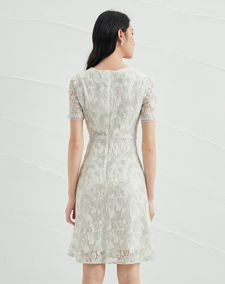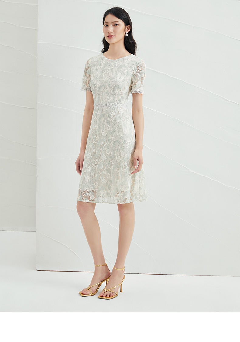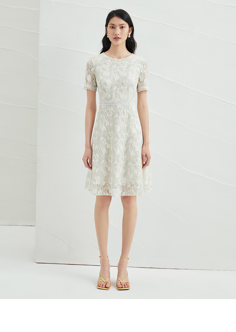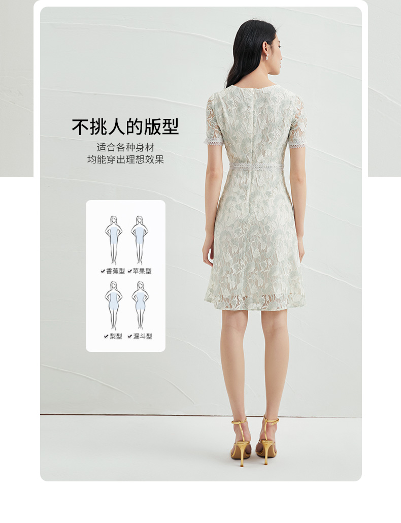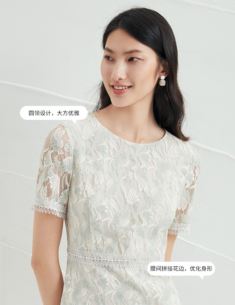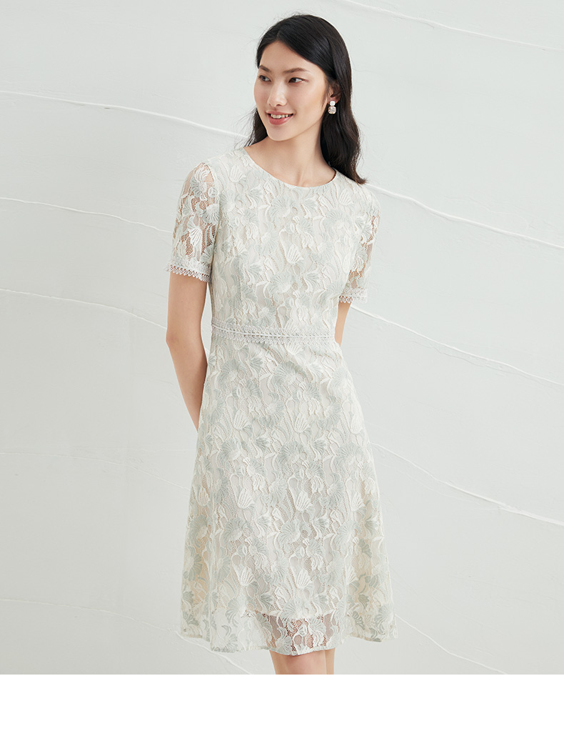 EITIE爱特爱夏季新款时间简约百搭通勤温柔气质蕾丝a字连衣裙B2207936