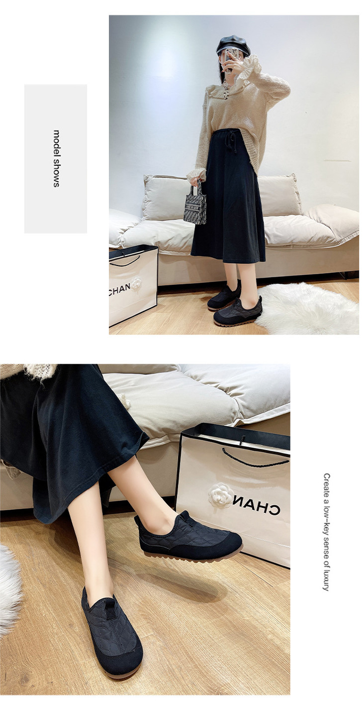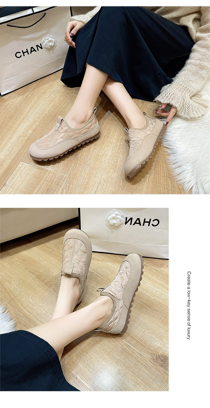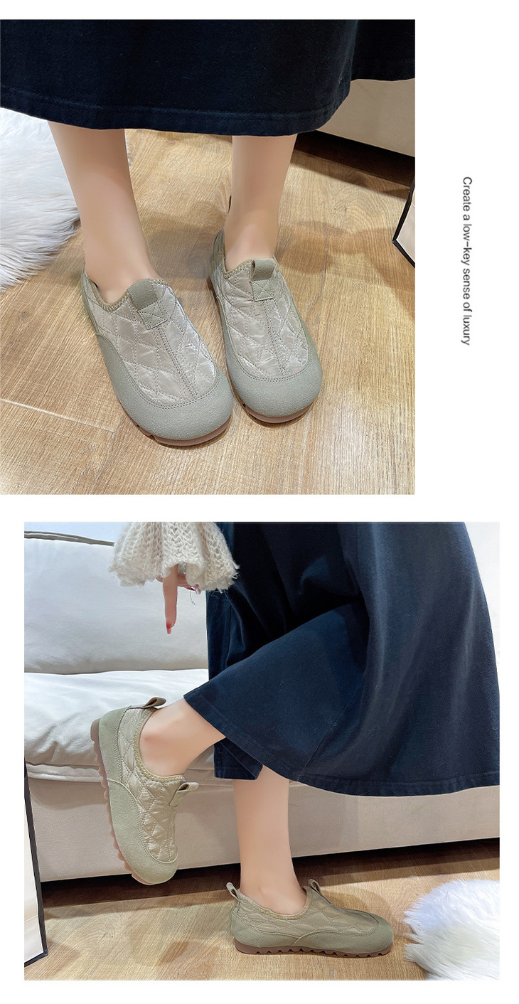 羽绒布加绒豆豆鞋,懒人乐福鞋平底棉鞋LJX-878