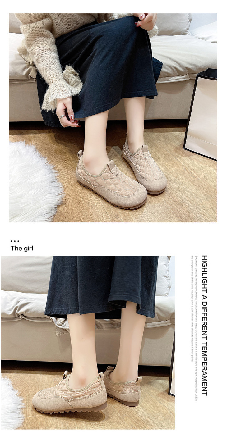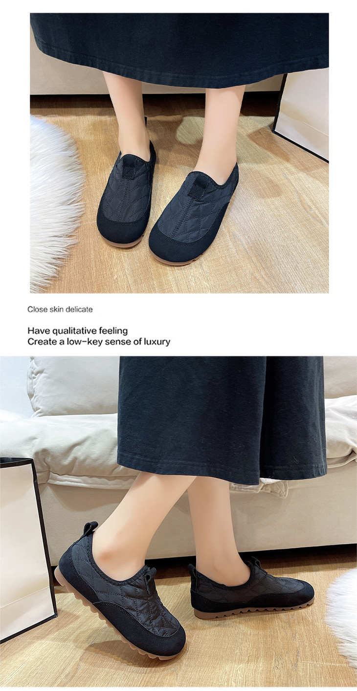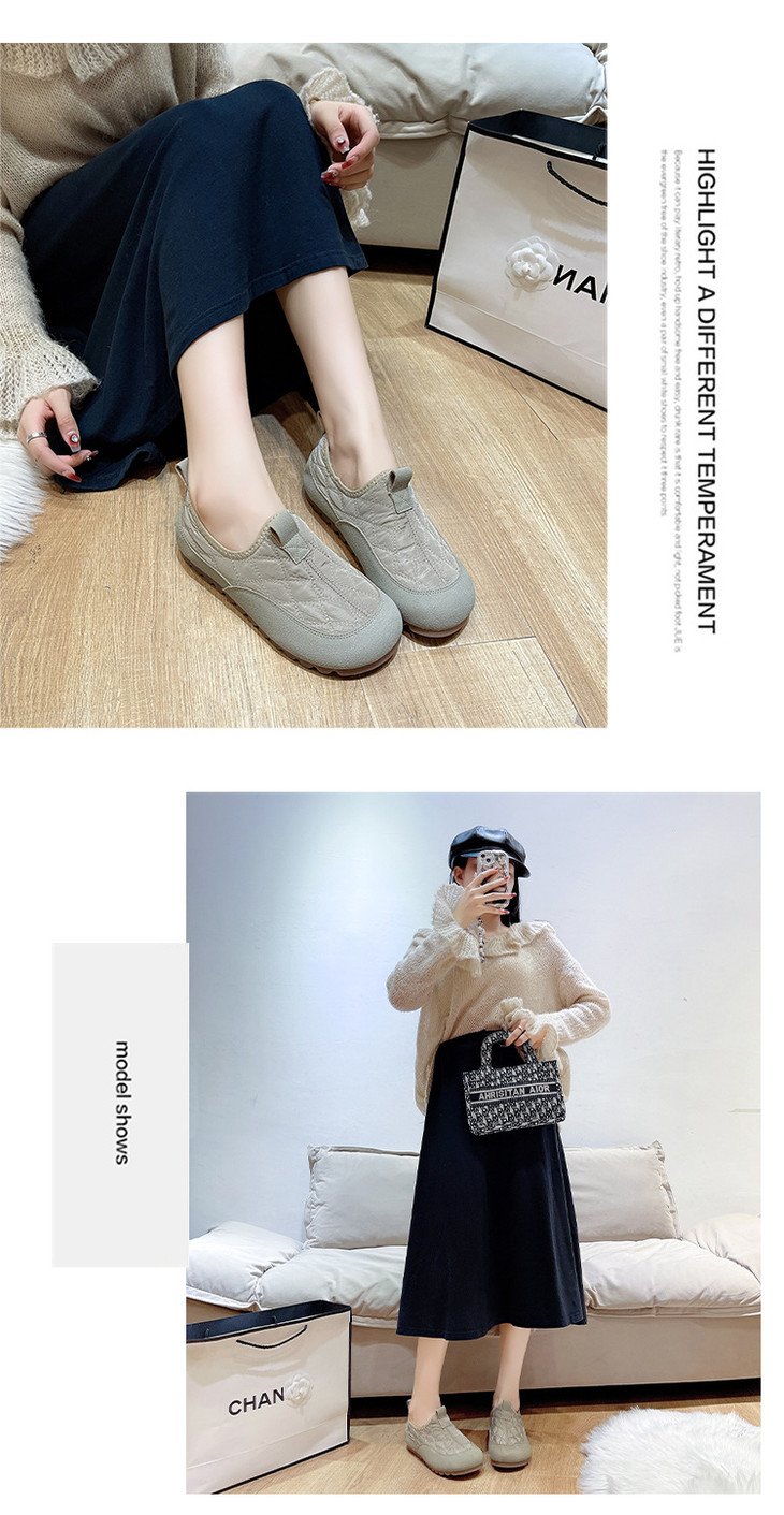 羽绒布加绒豆豆鞋,懒人乐福鞋平底棉鞋LJX-878