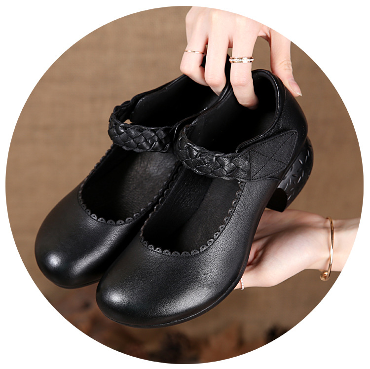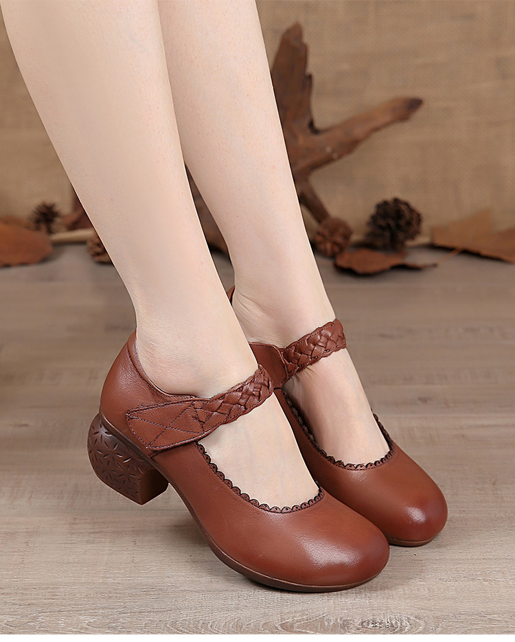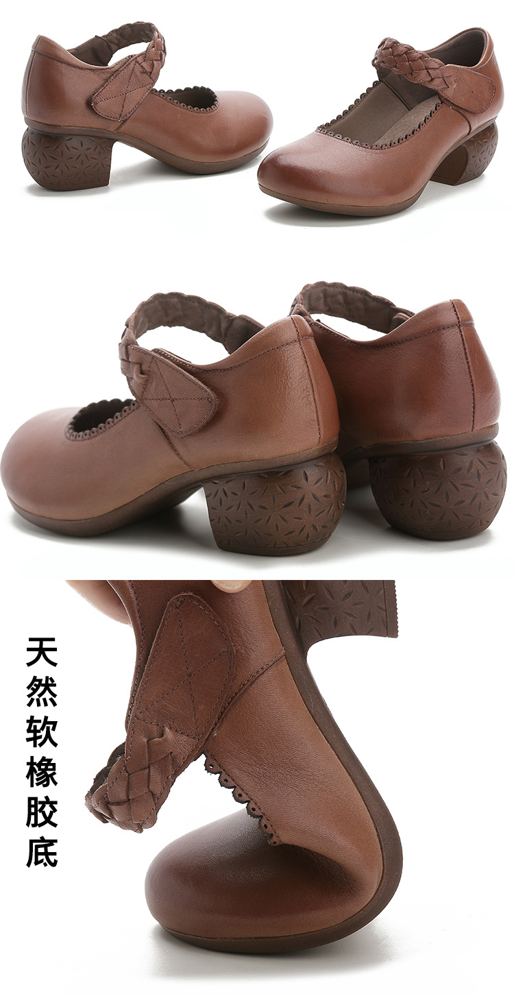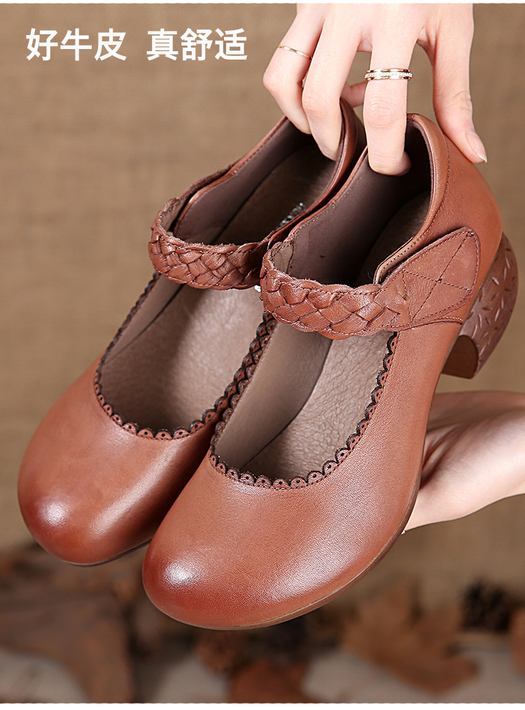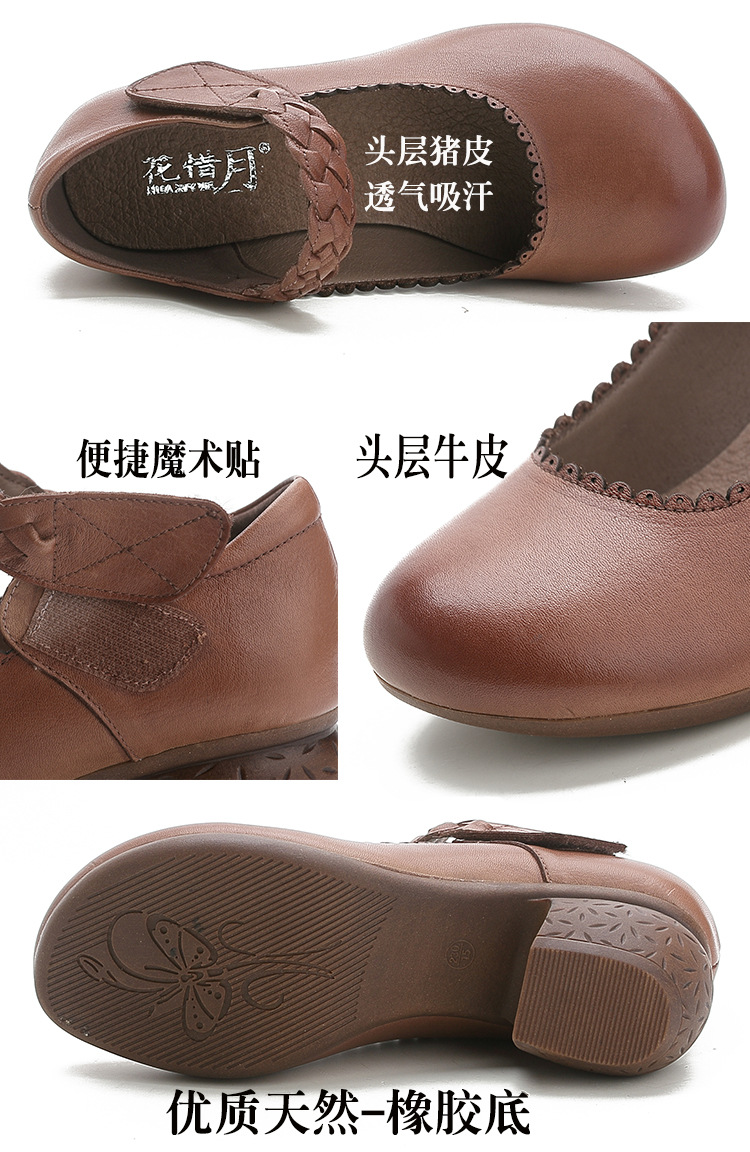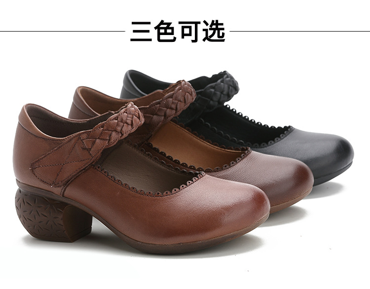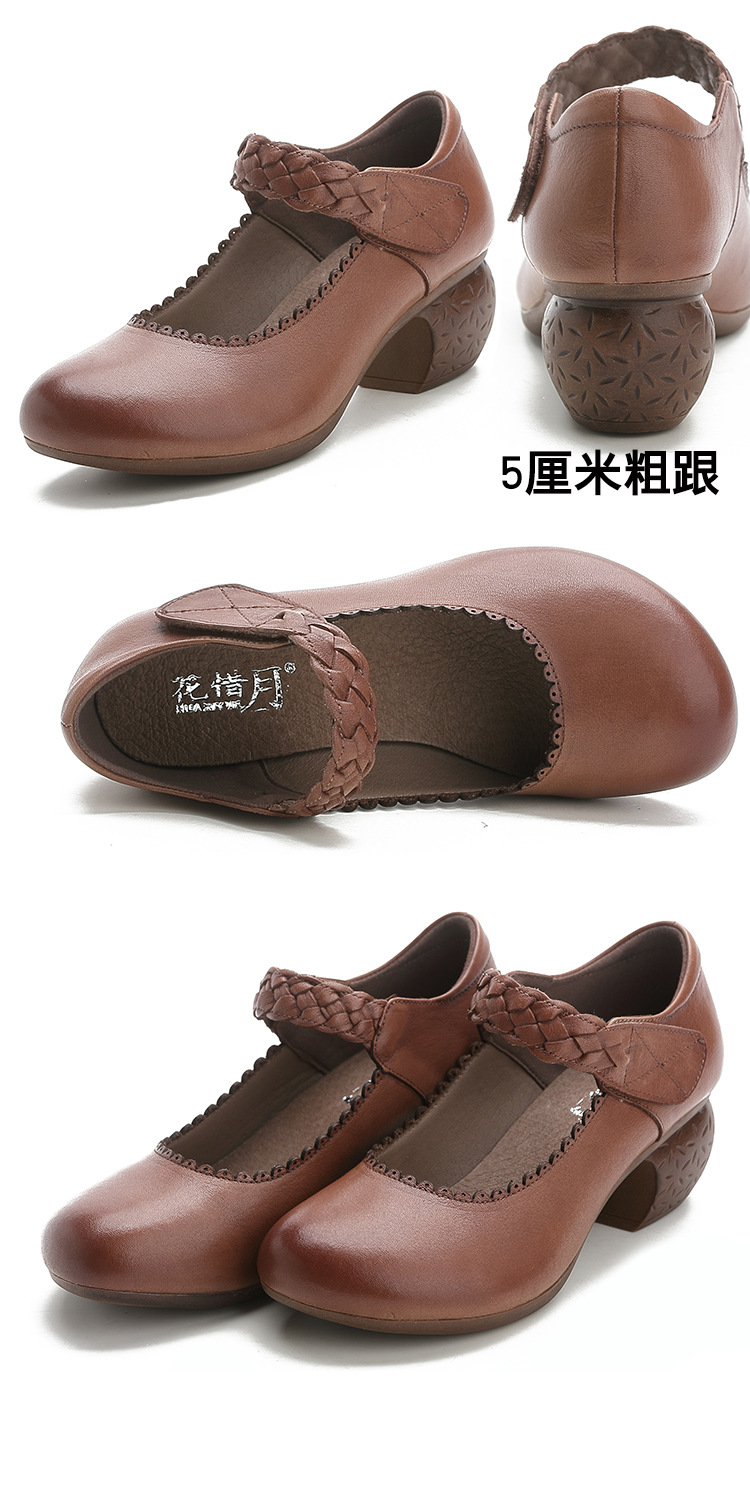 YB-D8898-3花惜月牛皮单鞋休闲圆头粗跟浅口复古女鞋WY