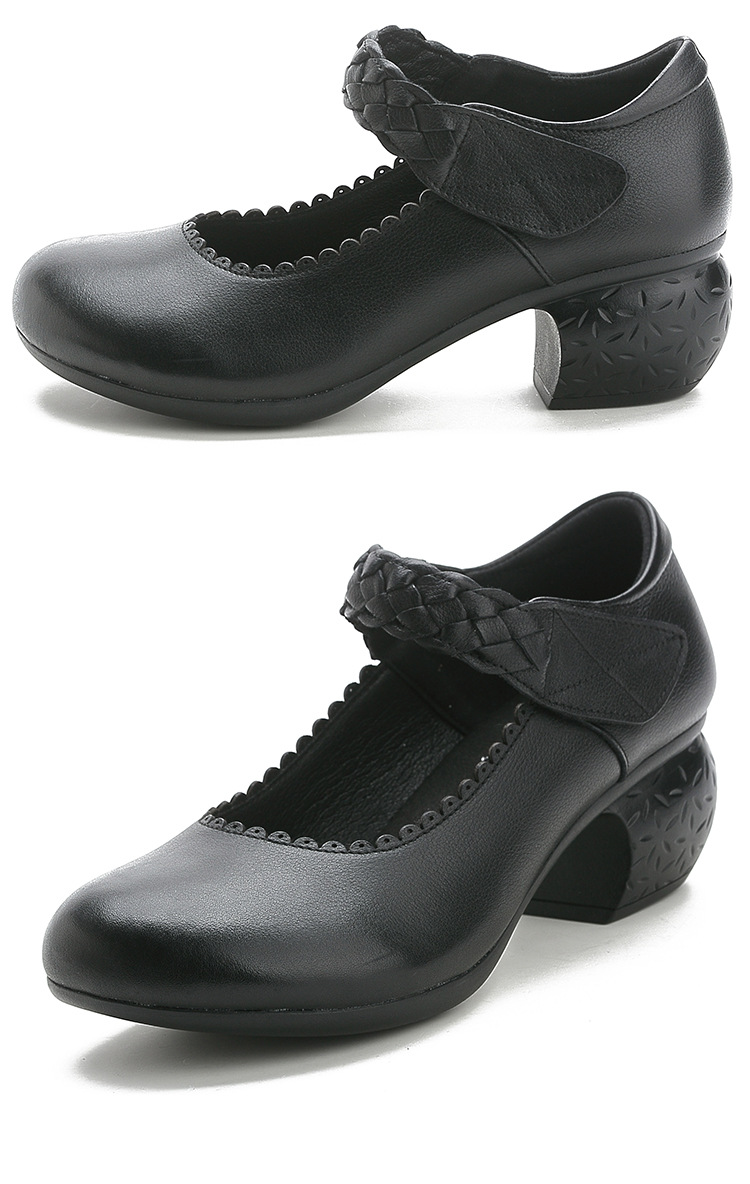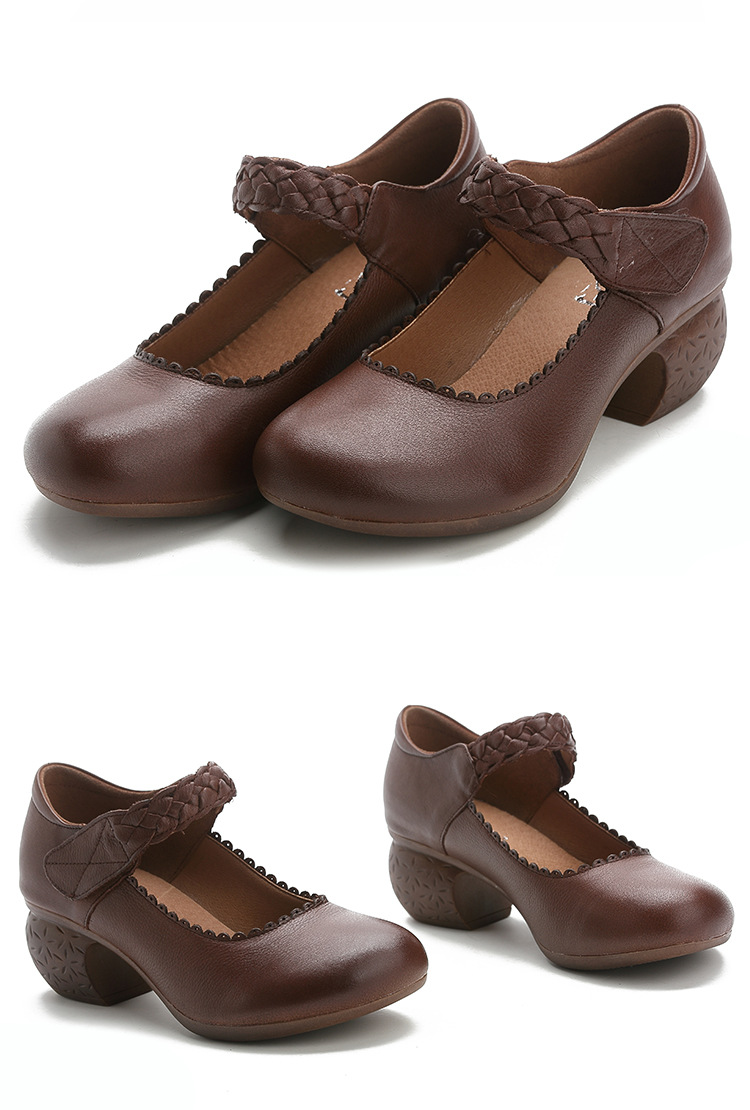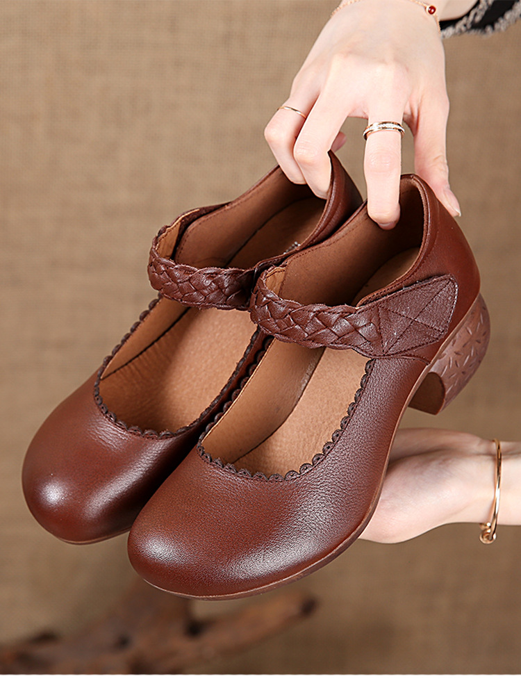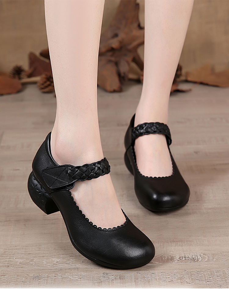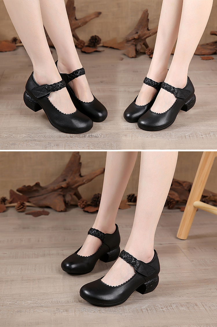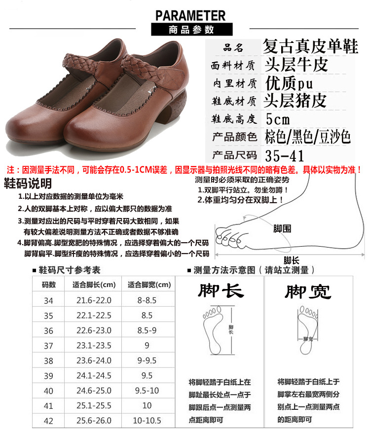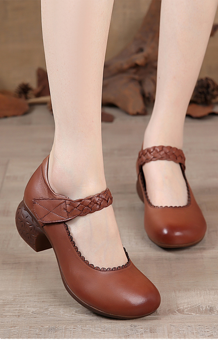 YB-D8898-3花惜月牛皮单鞋休闲圆头粗跟浅口复古女鞋WY