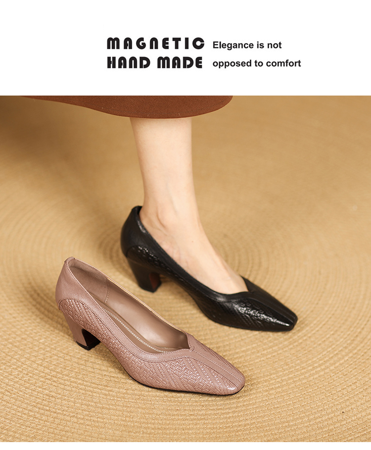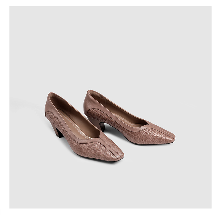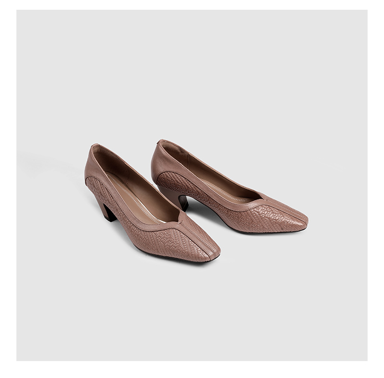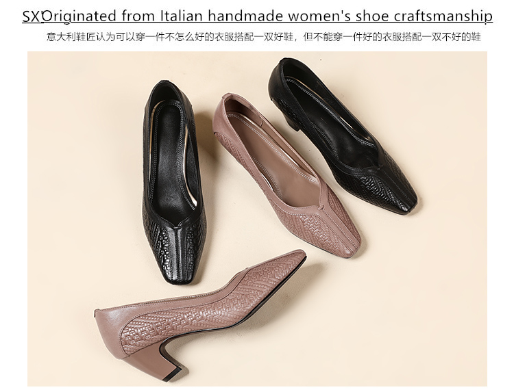 【预售5天】春秋款羊皮中跟小方头皮鞋女卡其色浅口单鞋女XYM&k936-1