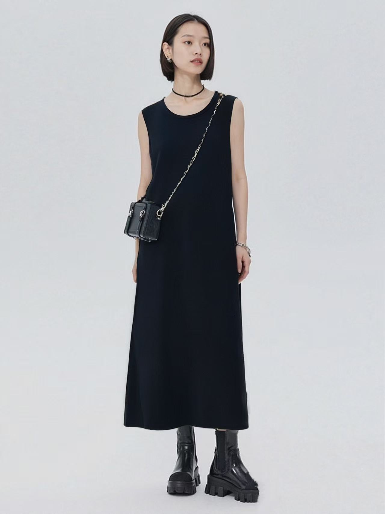 【MYBL】8629华夫细格黑色长款背心裙-喜出