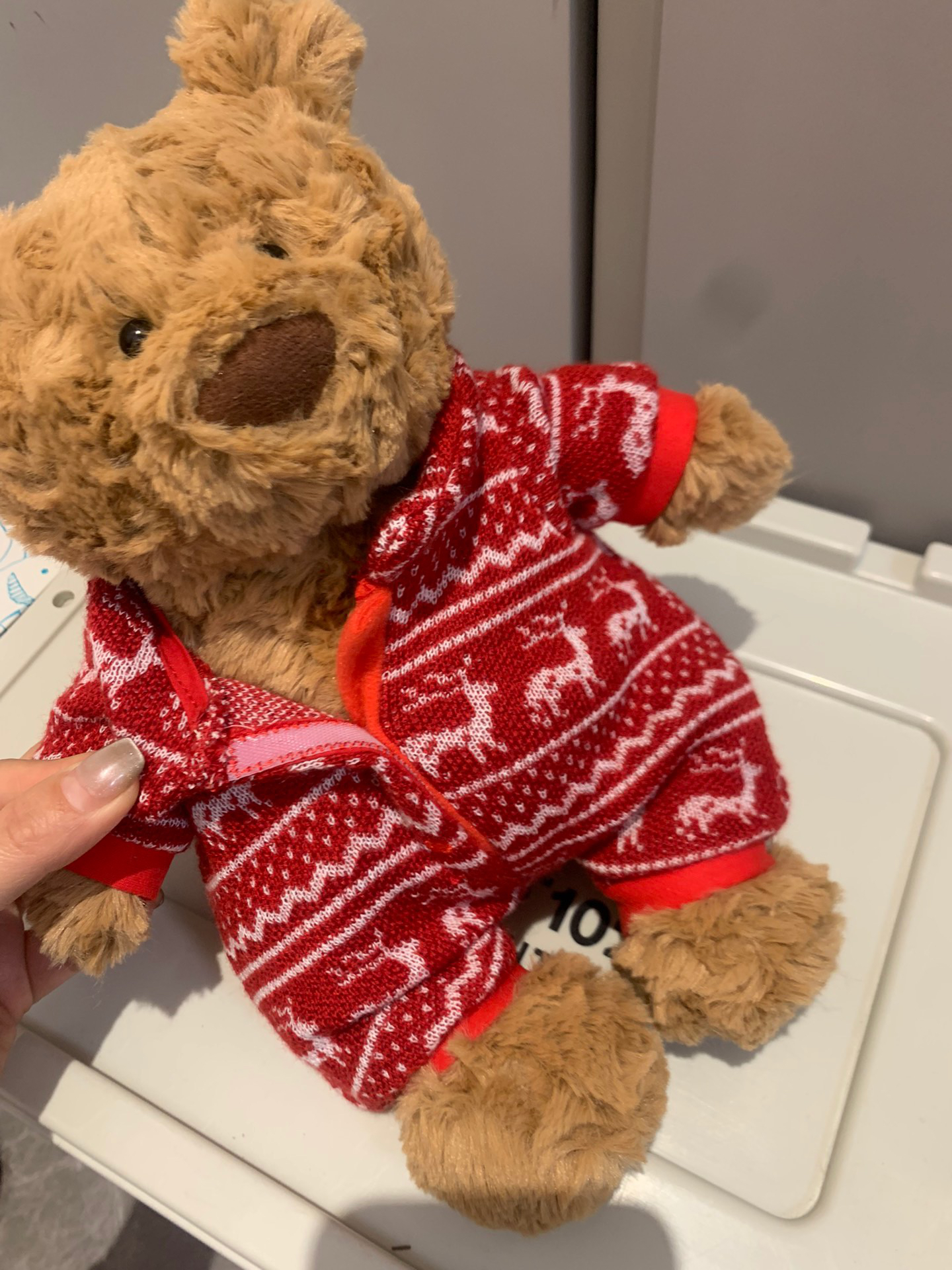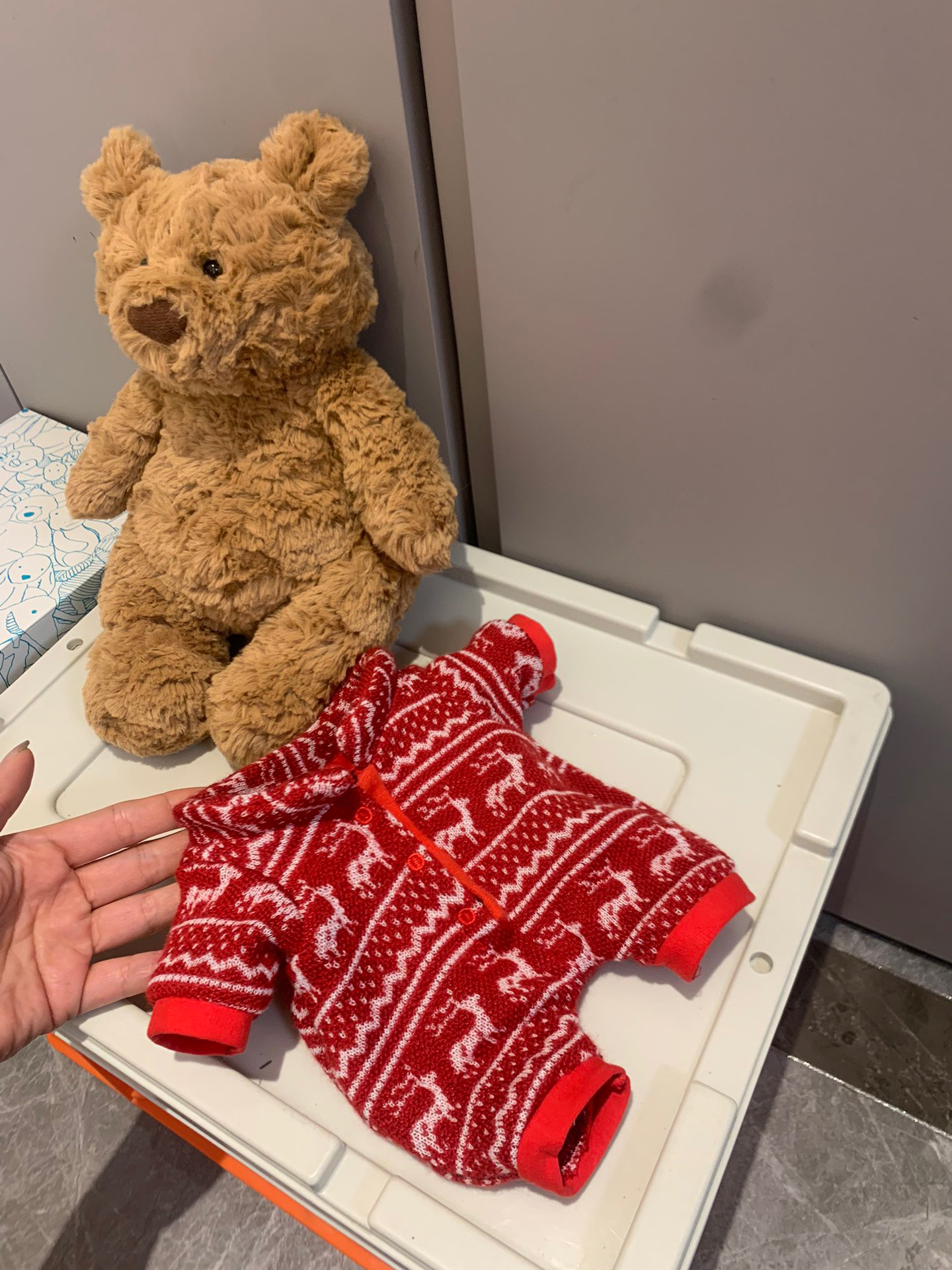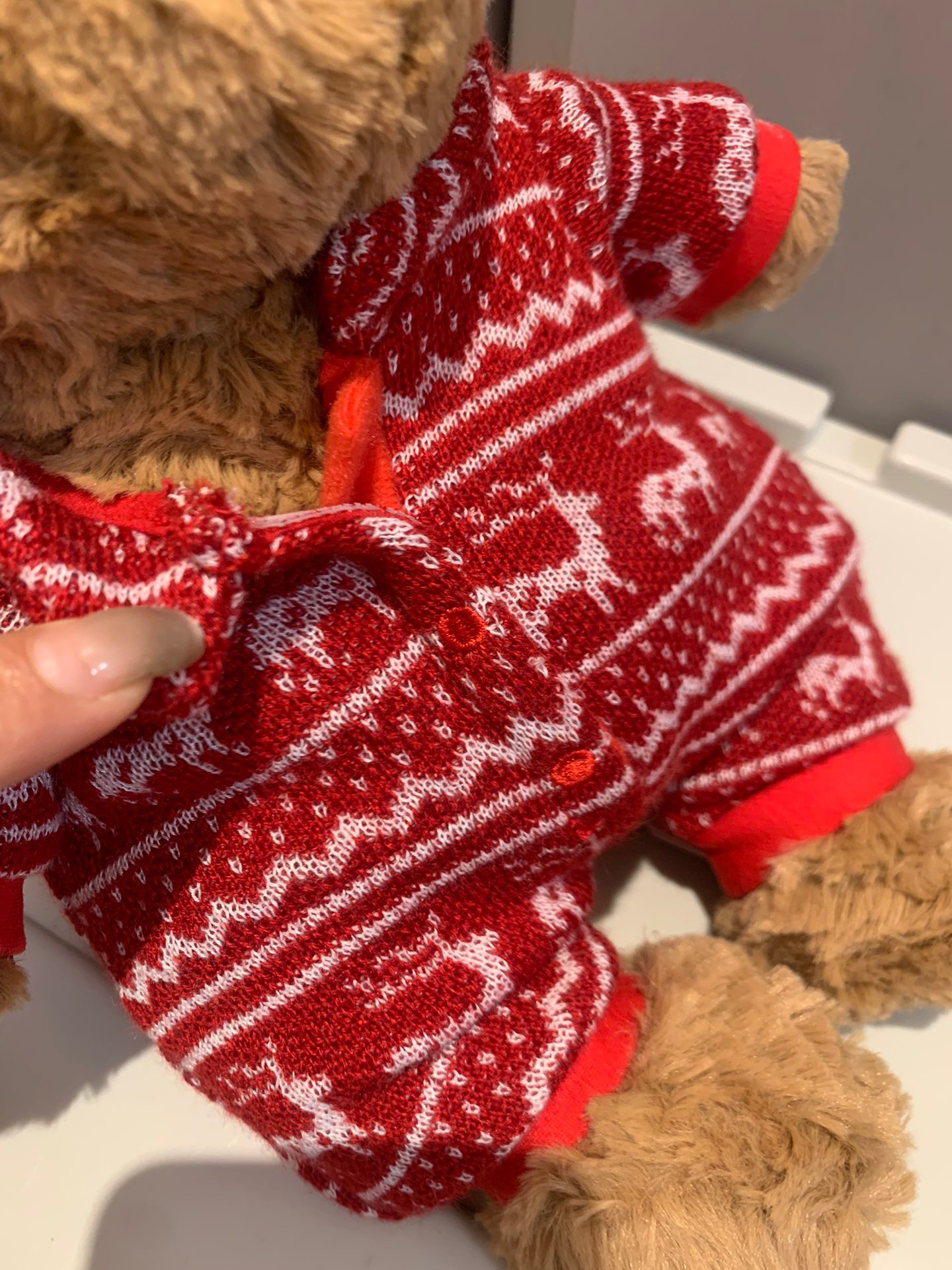 准备去冬眠 每当夜幕降临 我们的金色小熊就会进入舒适模式 巴塞罗熊冬日睡衣装 它穿着一件可拆卸的红色连体衣,上面印有跳动的驯鹿~后面甚至还有一个小洞,方便尾巴露出来!衣服里包裹着的 依然是那只拥有毛茸触感的焦糖色小熊 我们常伴的午睡搭子!😎
