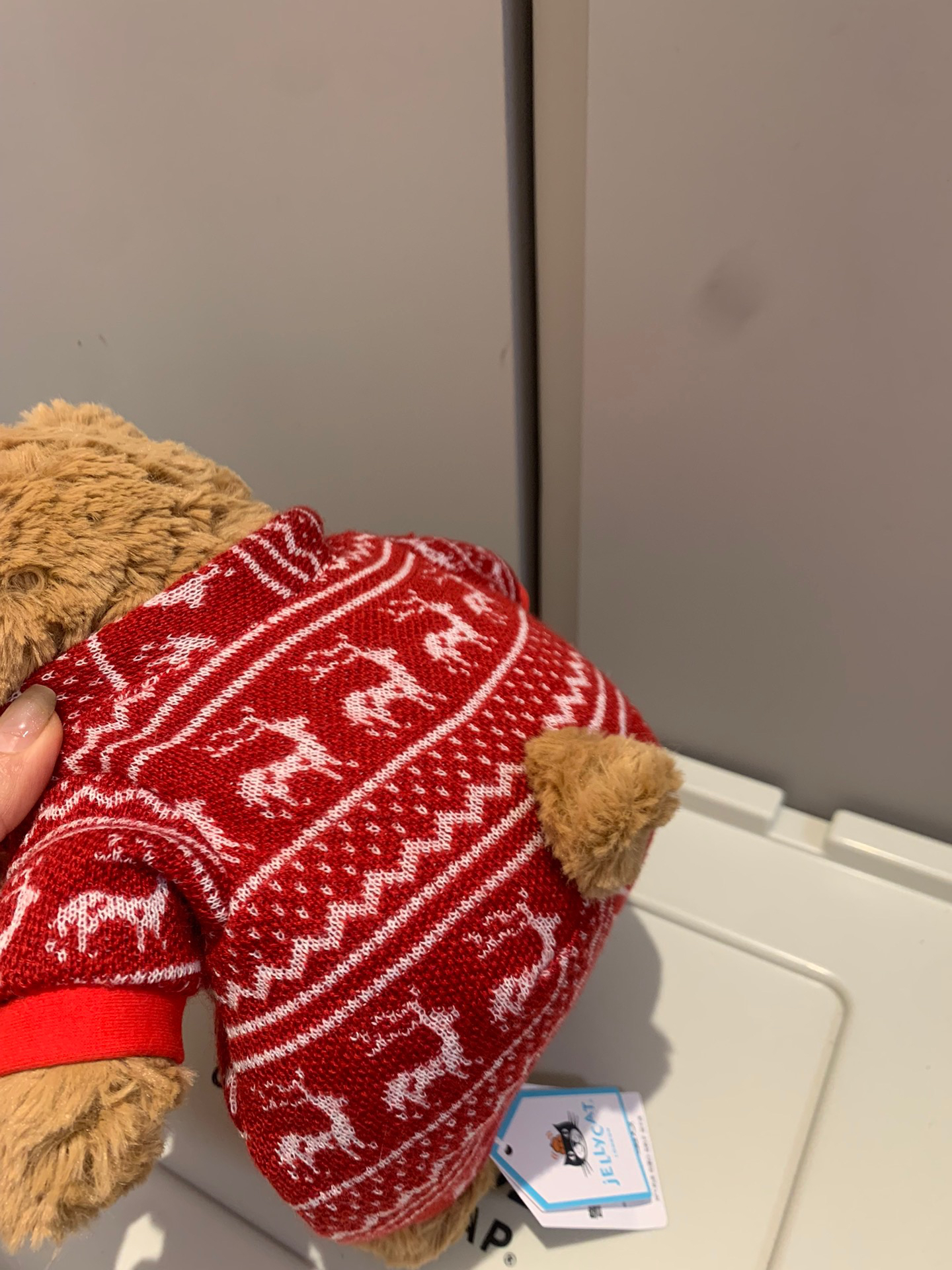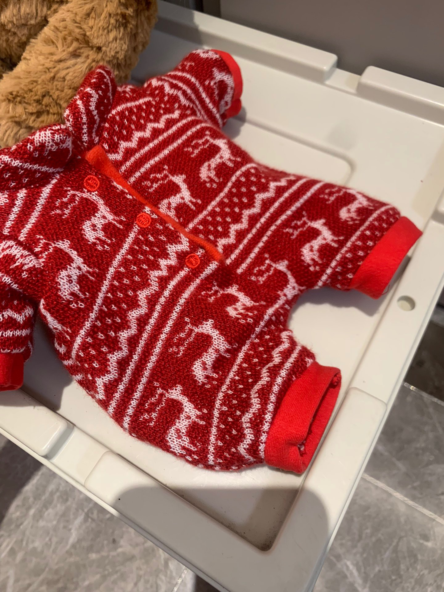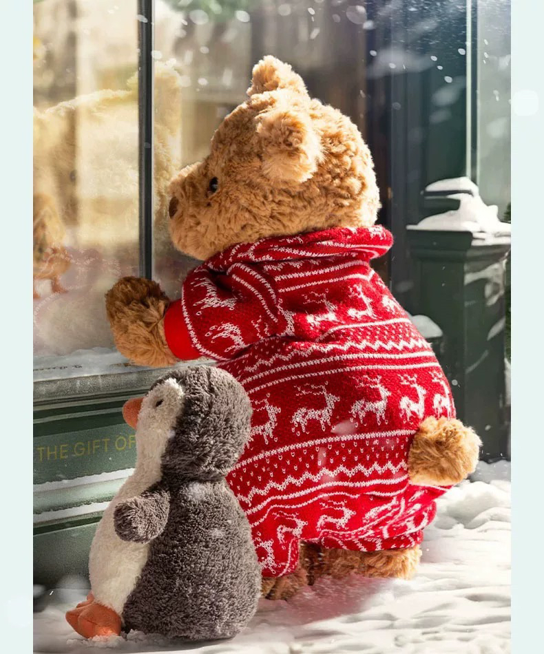 准备去冬眠 每当夜幕降临 我们的金色小熊就会进入舒适模式 巴塞罗熊冬日睡衣装 它穿着一件可拆卸的红色连体衣,上面印有跳动的驯鹿~后面甚至还有一个小洞,方便尾巴露出来!衣服里包裹着的 依然是那只拥有毛茸触感的焦糖色小熊 我们常伴的午睡搭子!😎