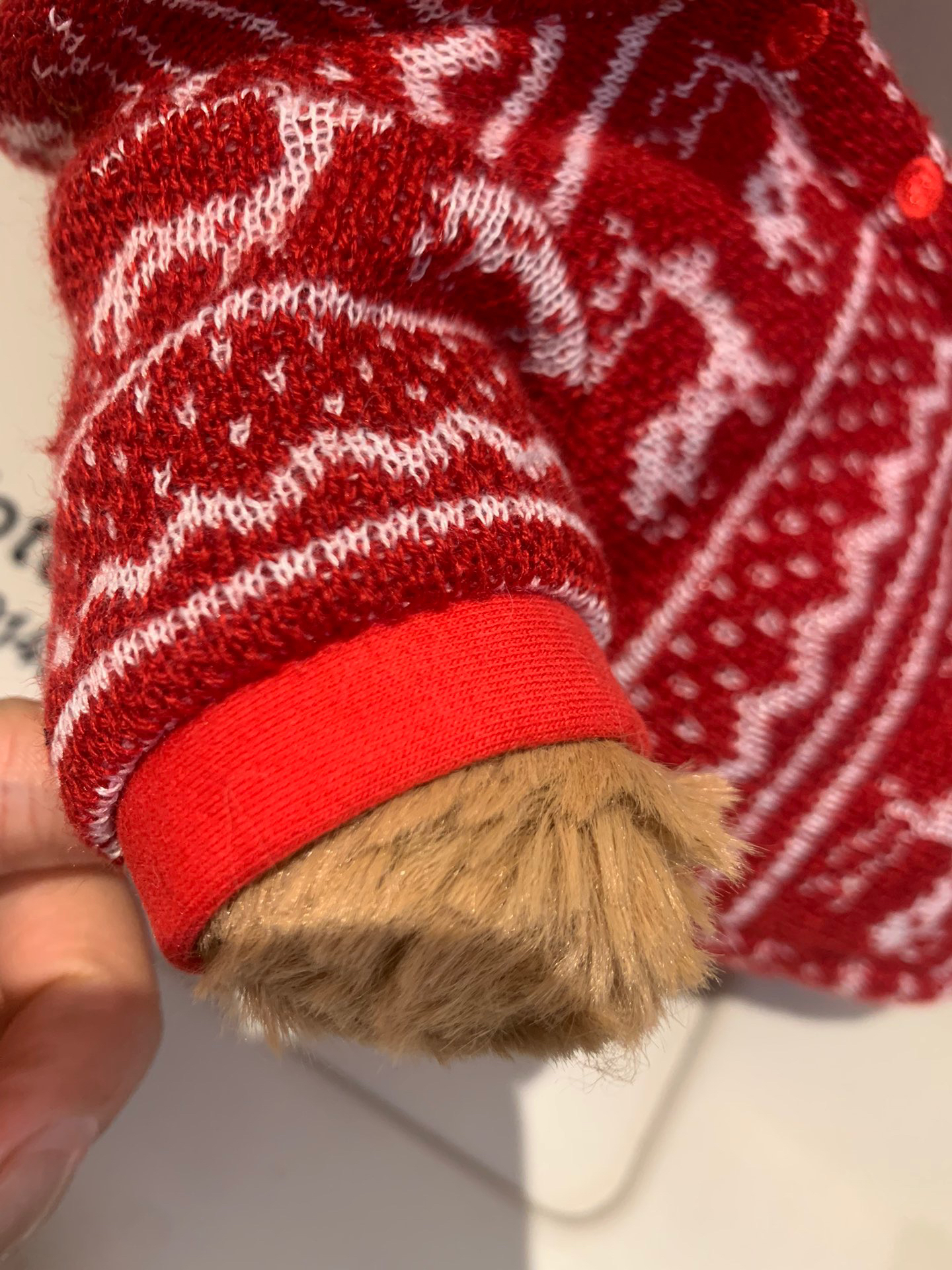 尺寸:高26cm左右它穿着一件可拆卸的红色圣诞连体睡衣 上面印有跳动的驯鹿~连体衣可脱卸