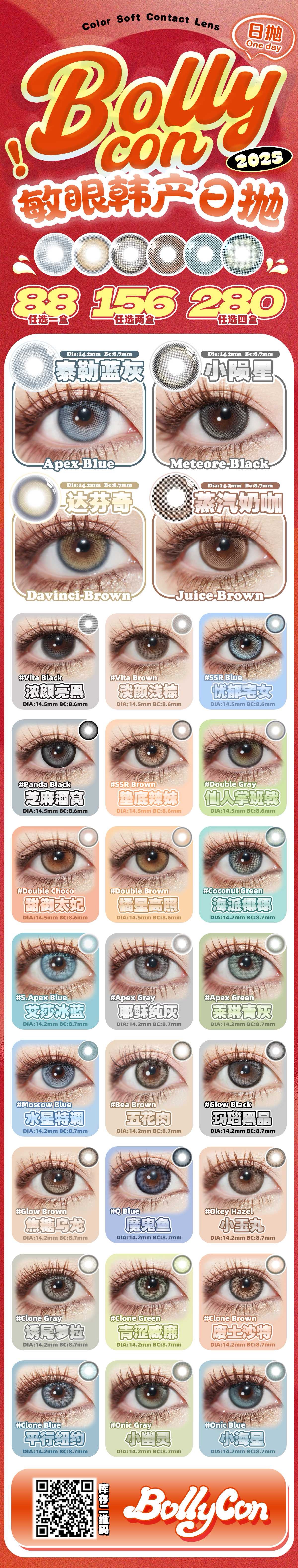 【本月活动】BOLLYCON美瞳日抛,单盒88一盒 ,2盒156