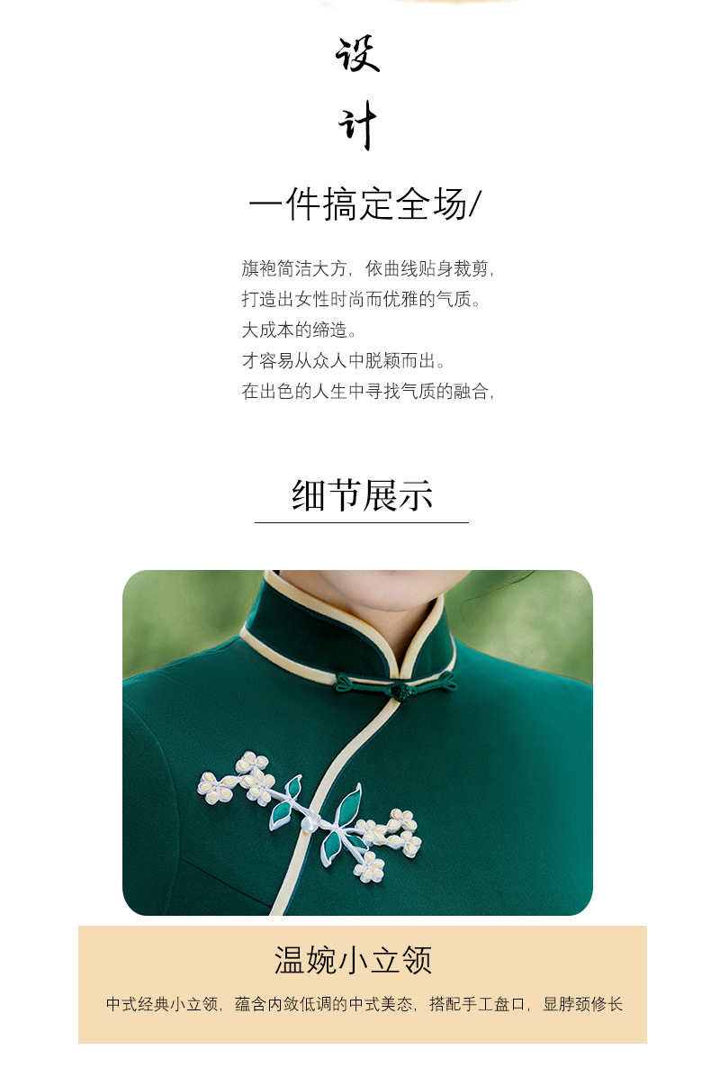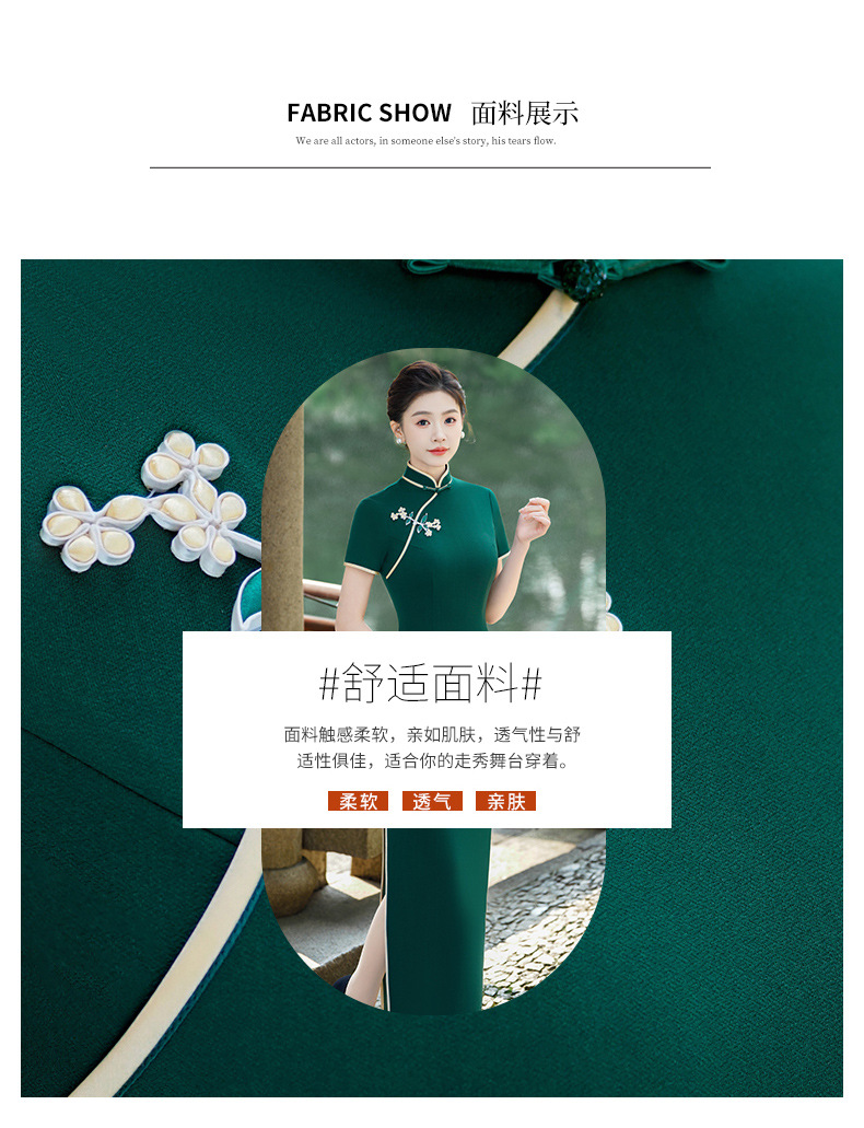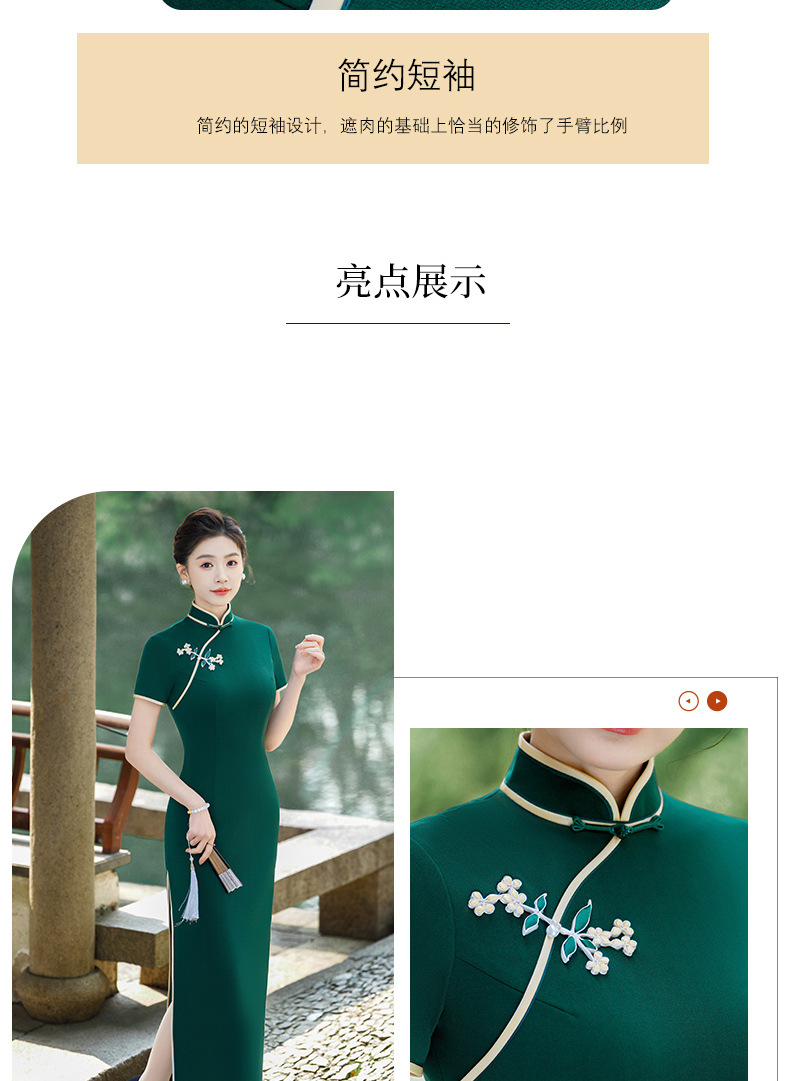 YD-3/16-03新中式复古走秀墨绿旗袍2025新款夏年轻款女收腰显瘦国风扣人心弦