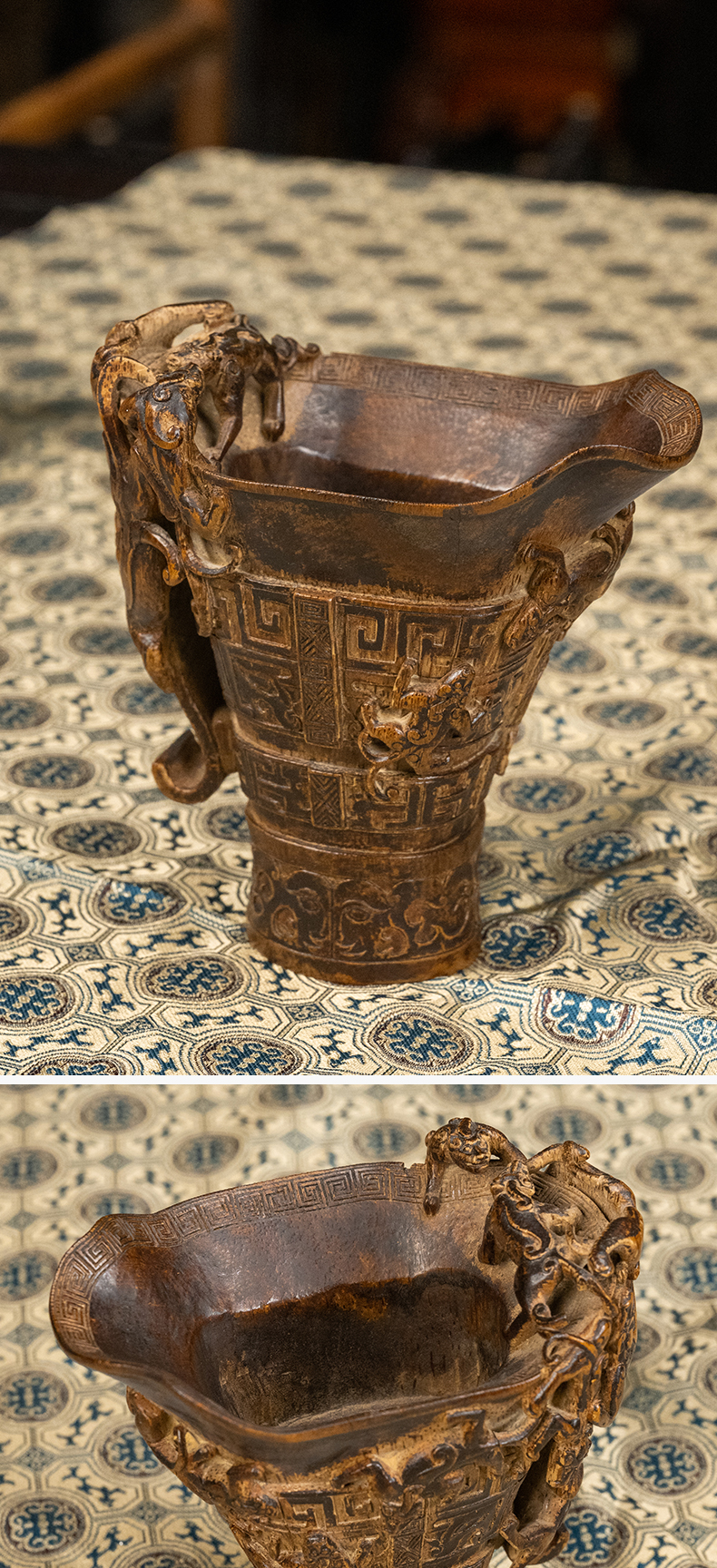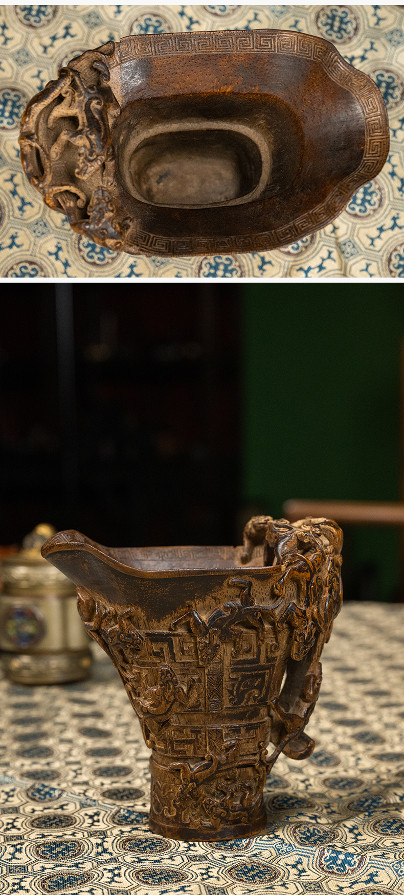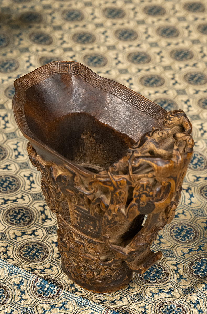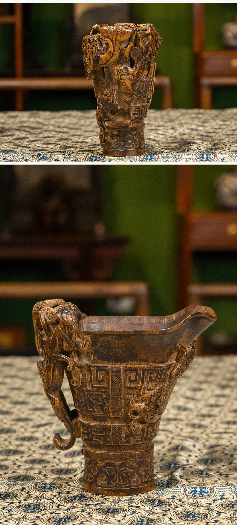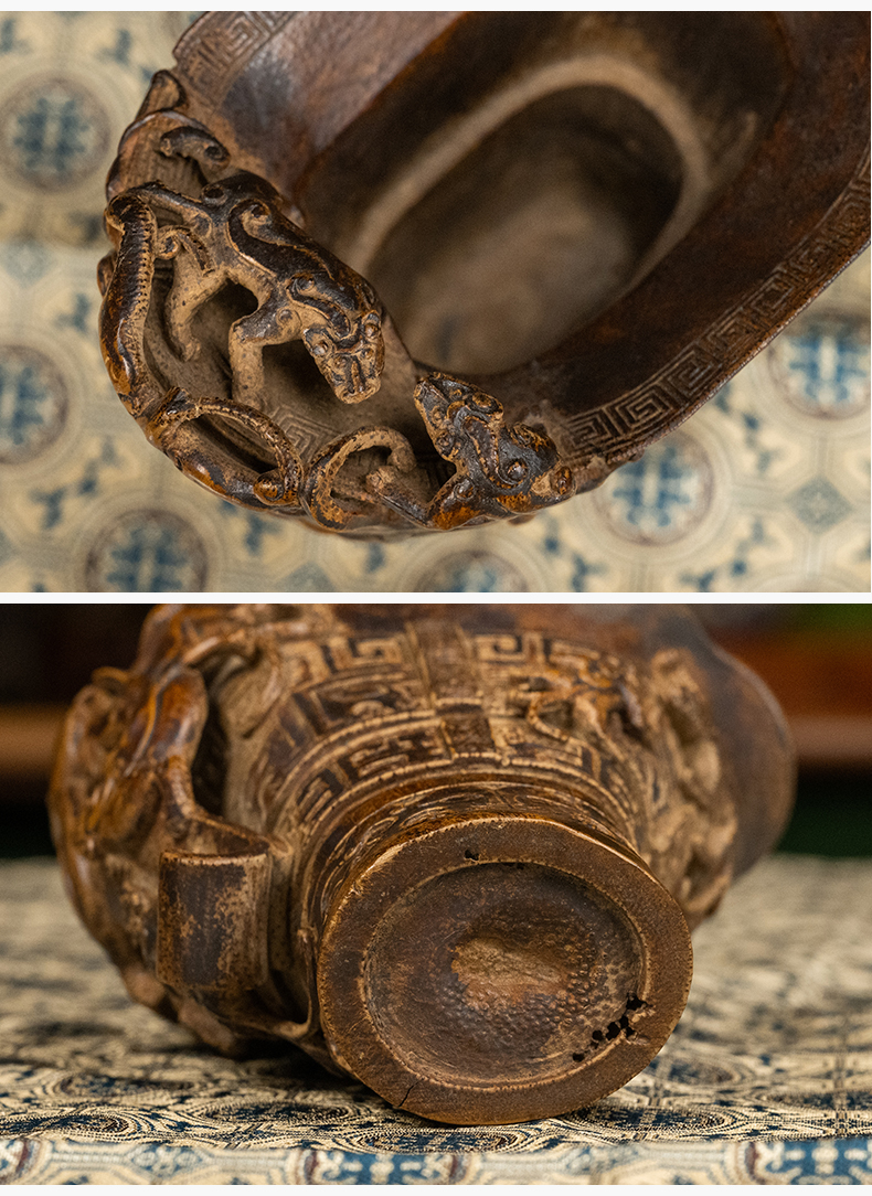 清 黄花梨百宝嵌花鸟诗文笔筒