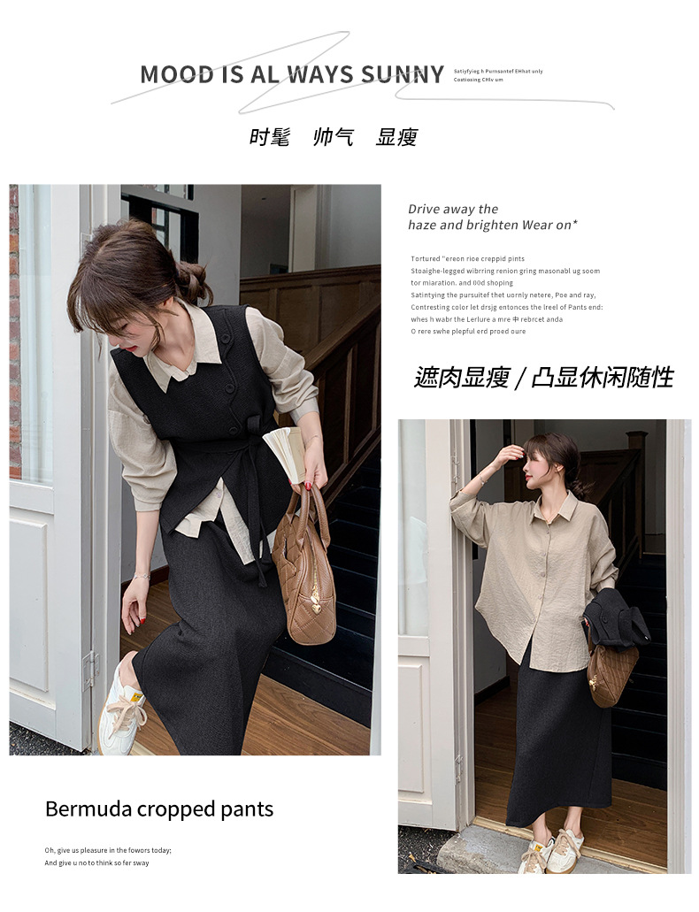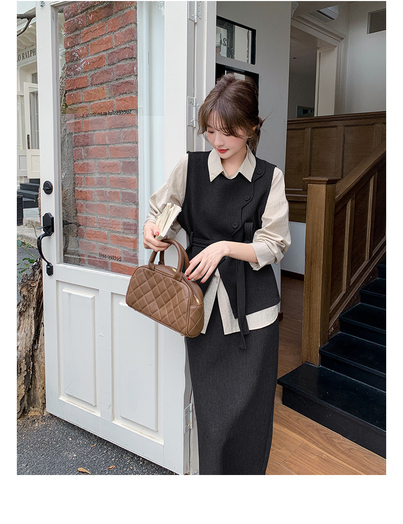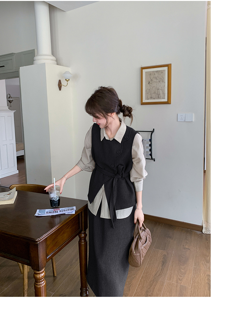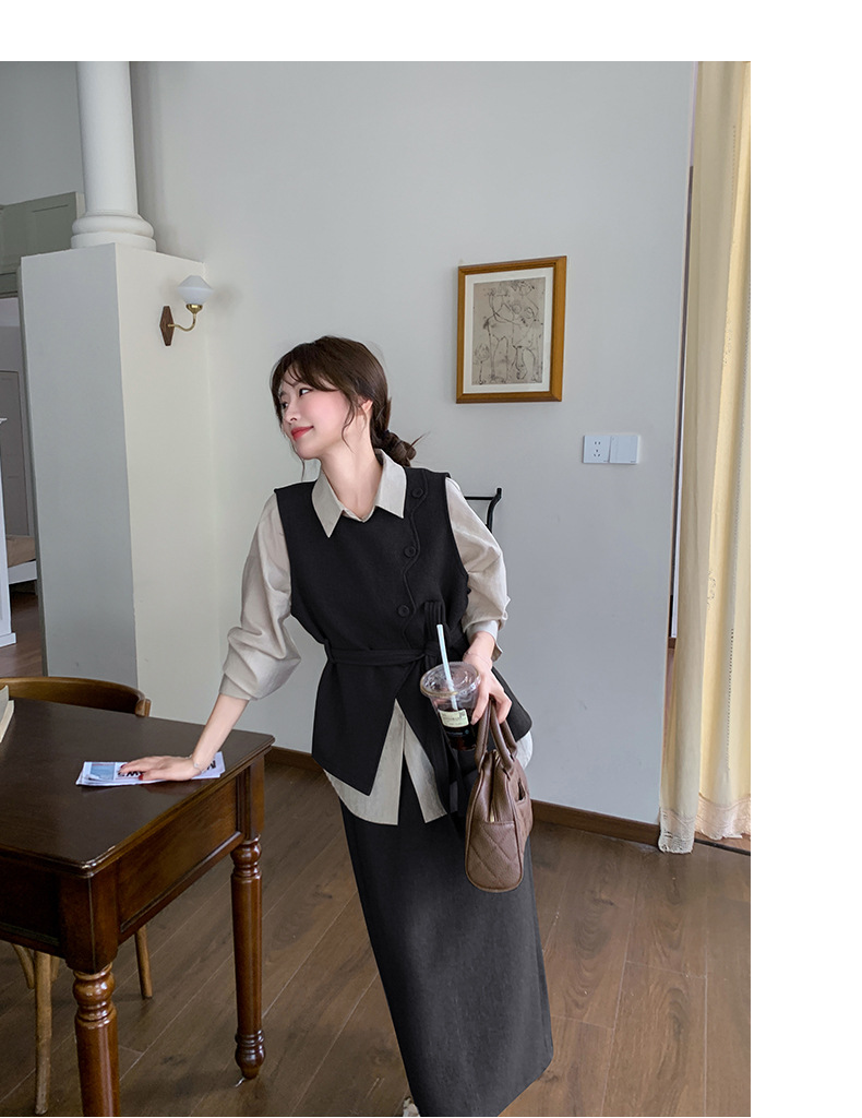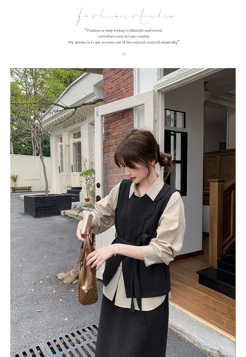 HR2C075W6036 黑色韩系高级感马甲套装裙女春2025新款气质衬衫半身裙三件套 商品图3