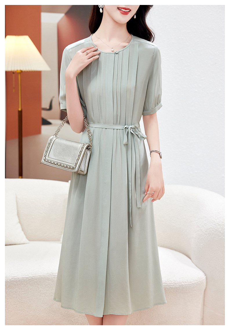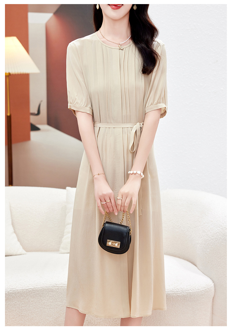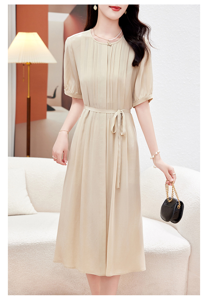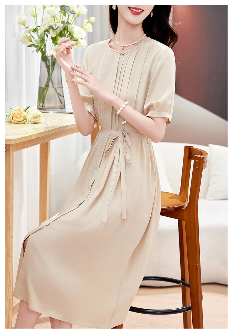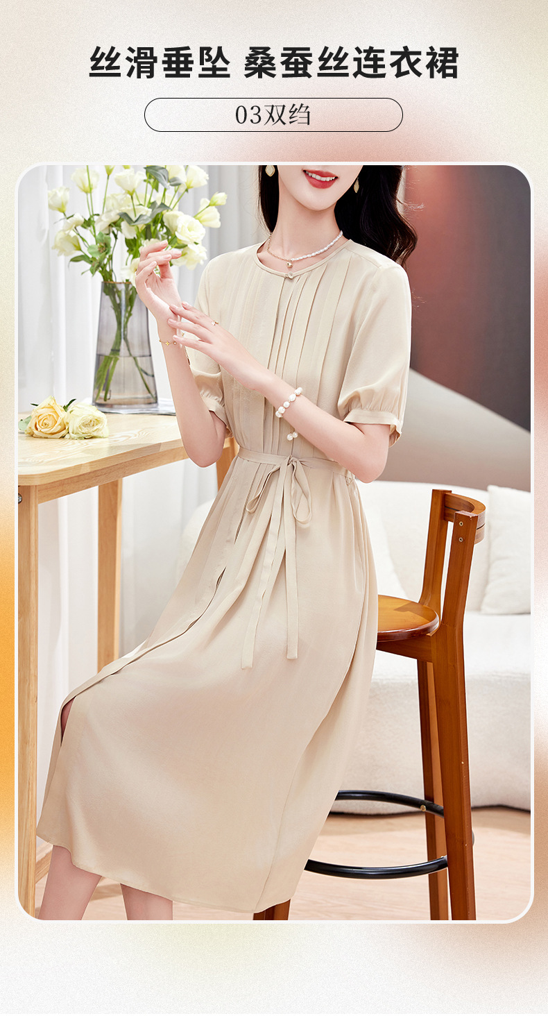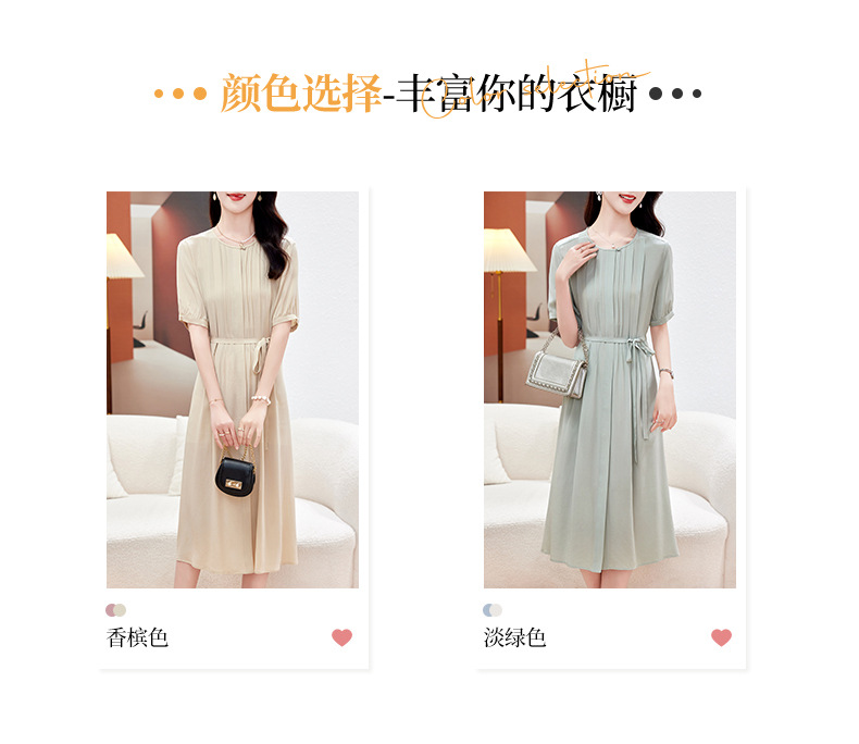 KQ-P09080 03双绉真丝法式气质端庄大气质桑蚕丝短袖连衣裙子女夏季显瘦裙子