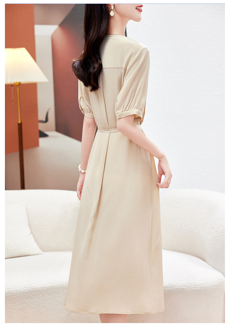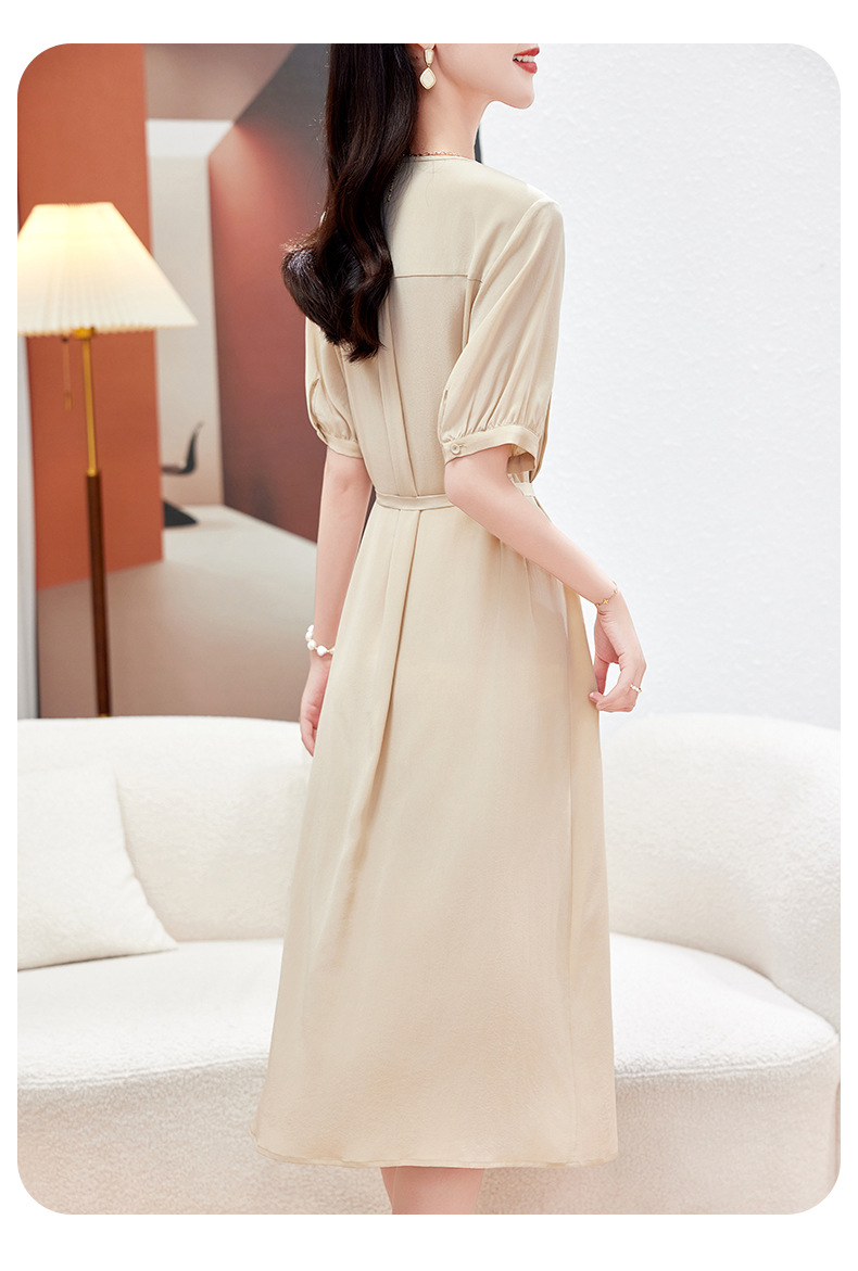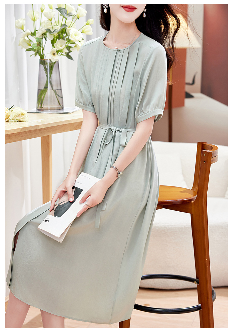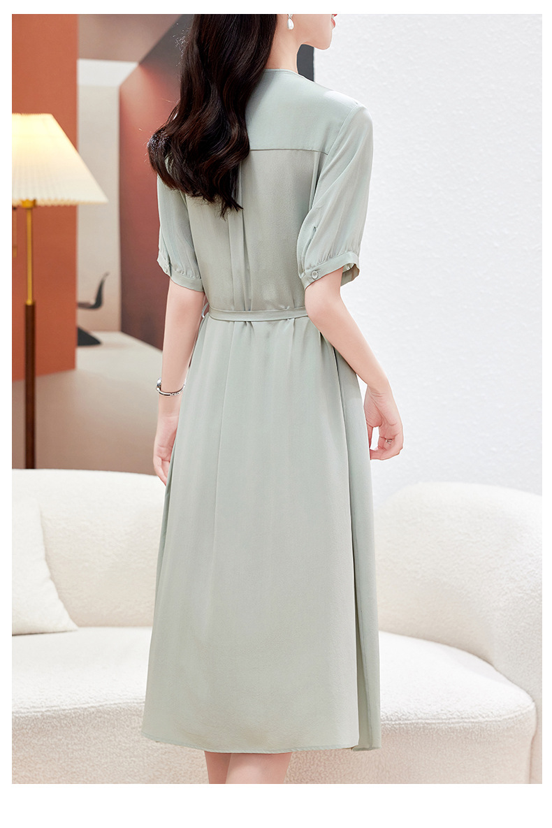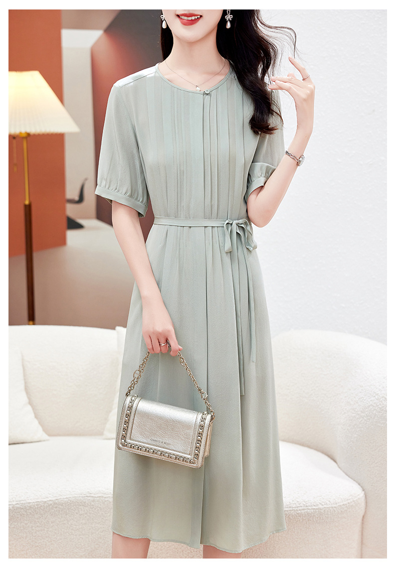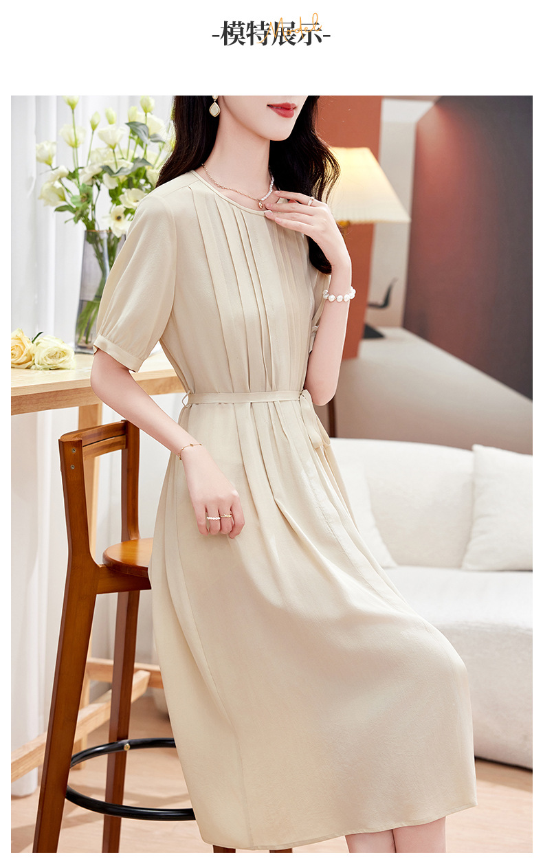 KQ-P09080 03双绉真丝法式气质端庄大气质桑蚕丝短袖连衣裙子女夏季显瘦裙子