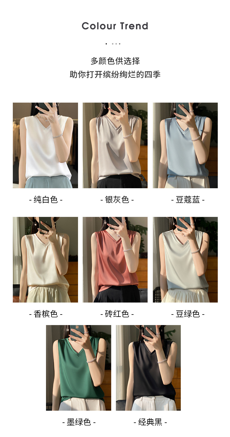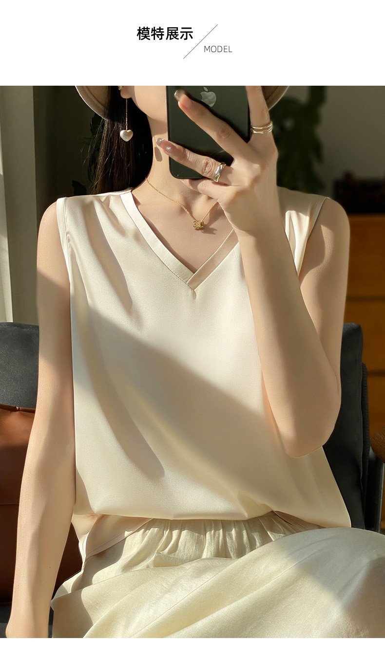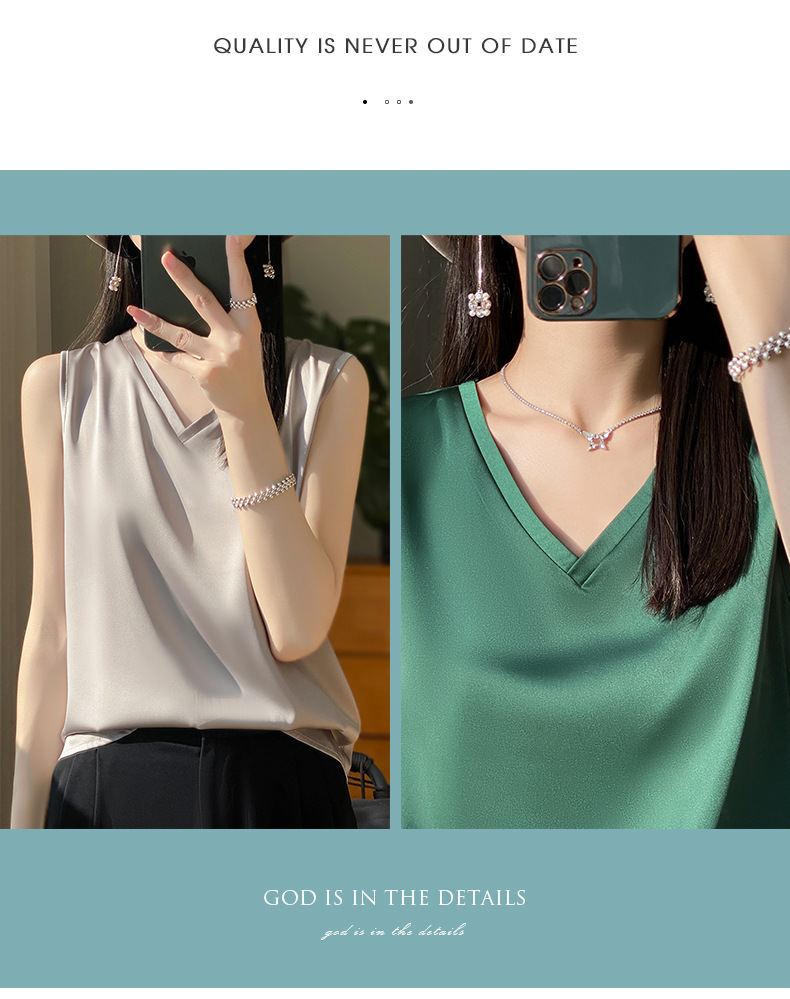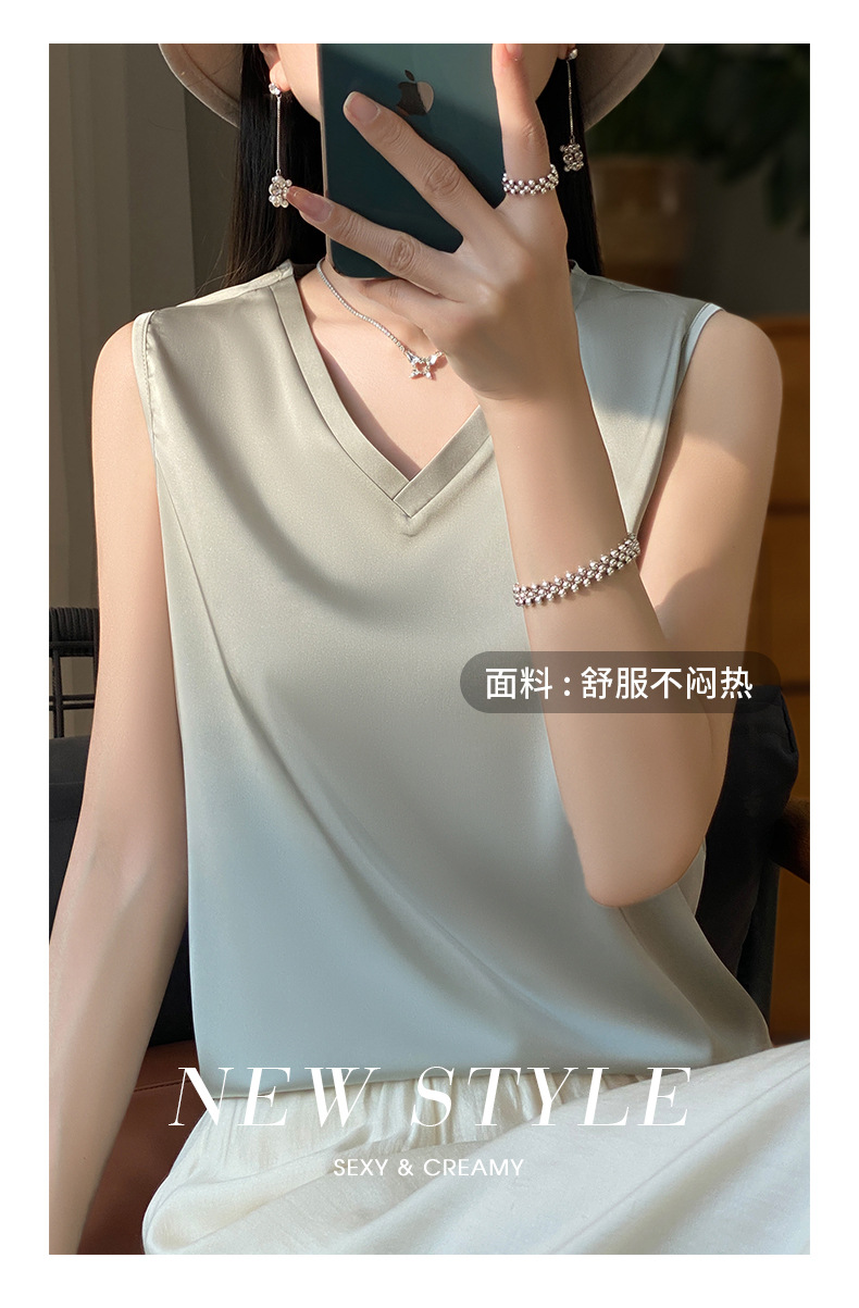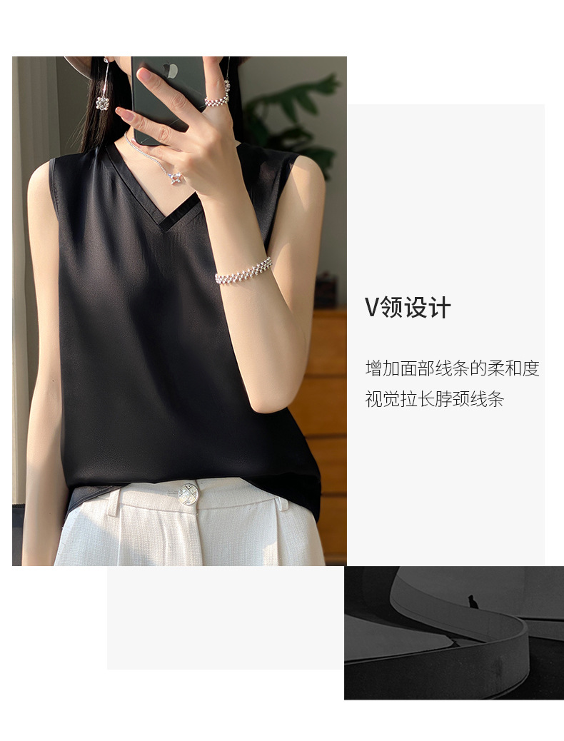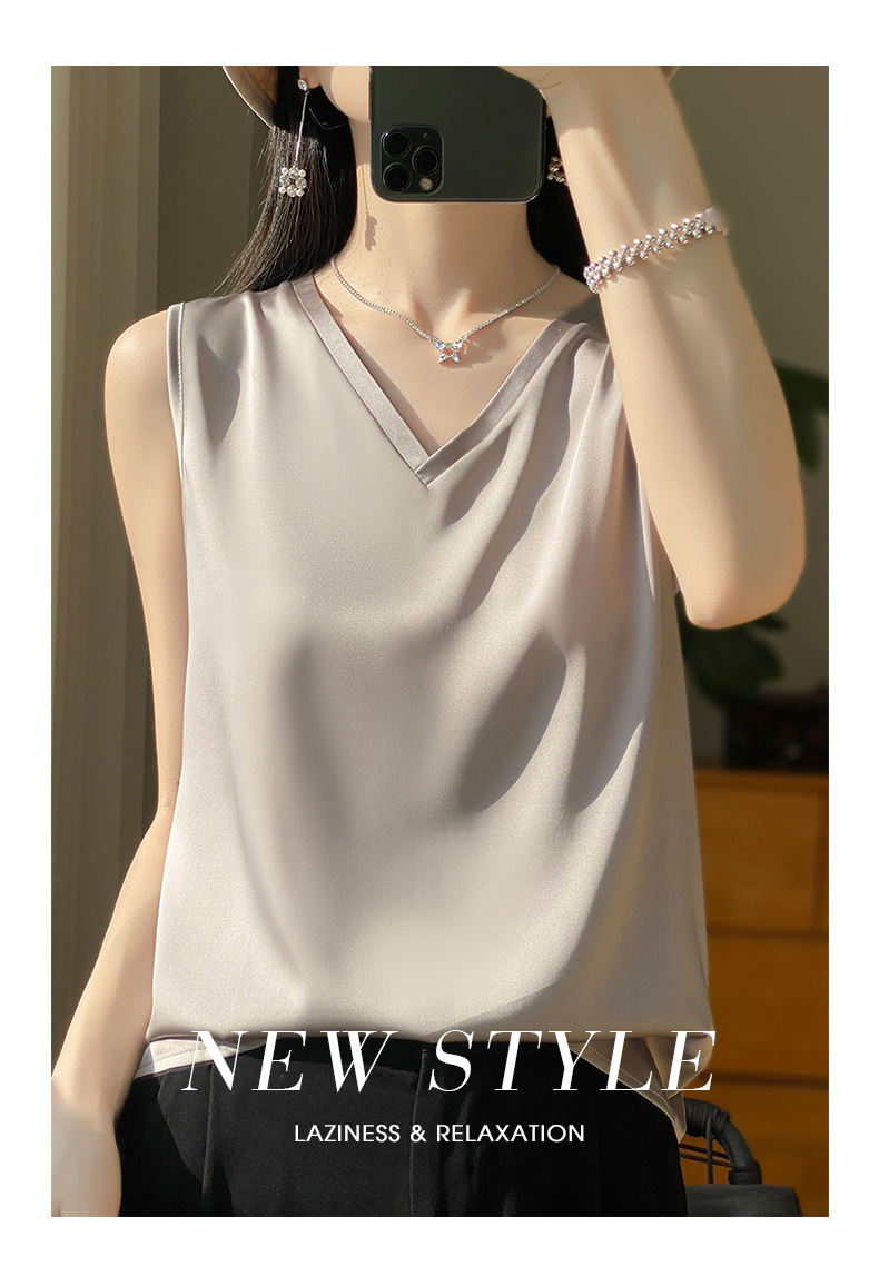 QHJY-1014丝绸缎面针织无袖吊带背心女薄款 2024春秋配西装内搭打底纯色T恤