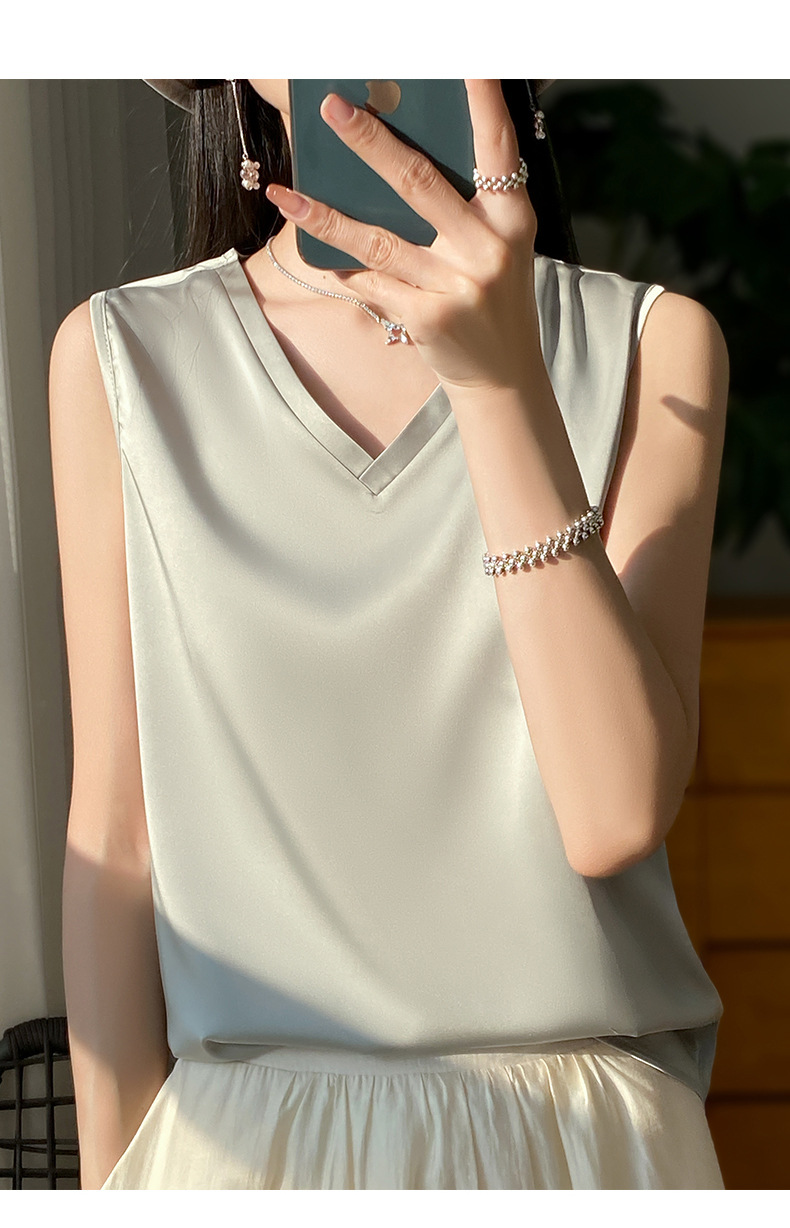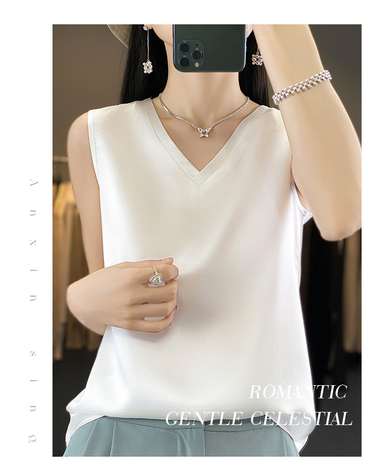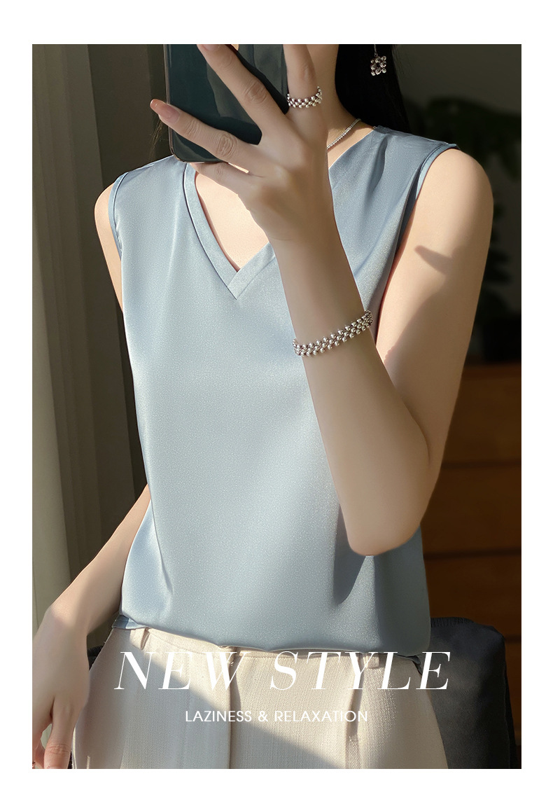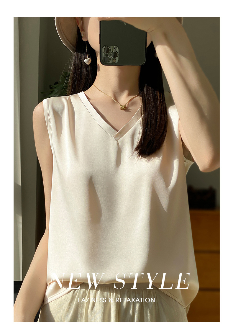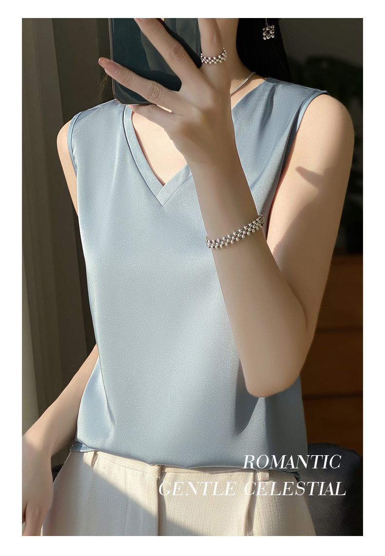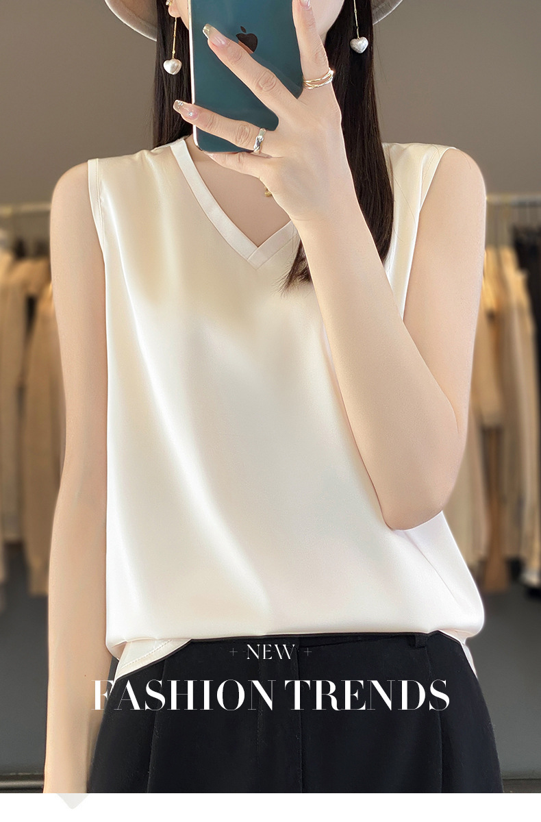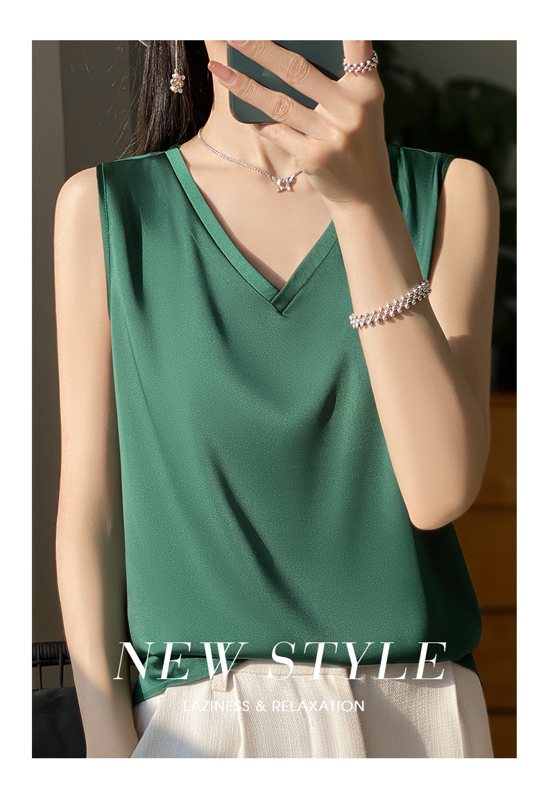 QHJY-1014丝绸缎面针织无袖吊带背心女薄款 2024春秋配西装内搭打底纯色T恤