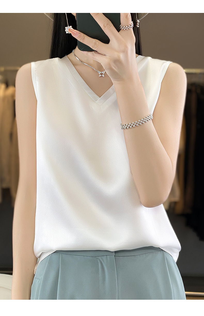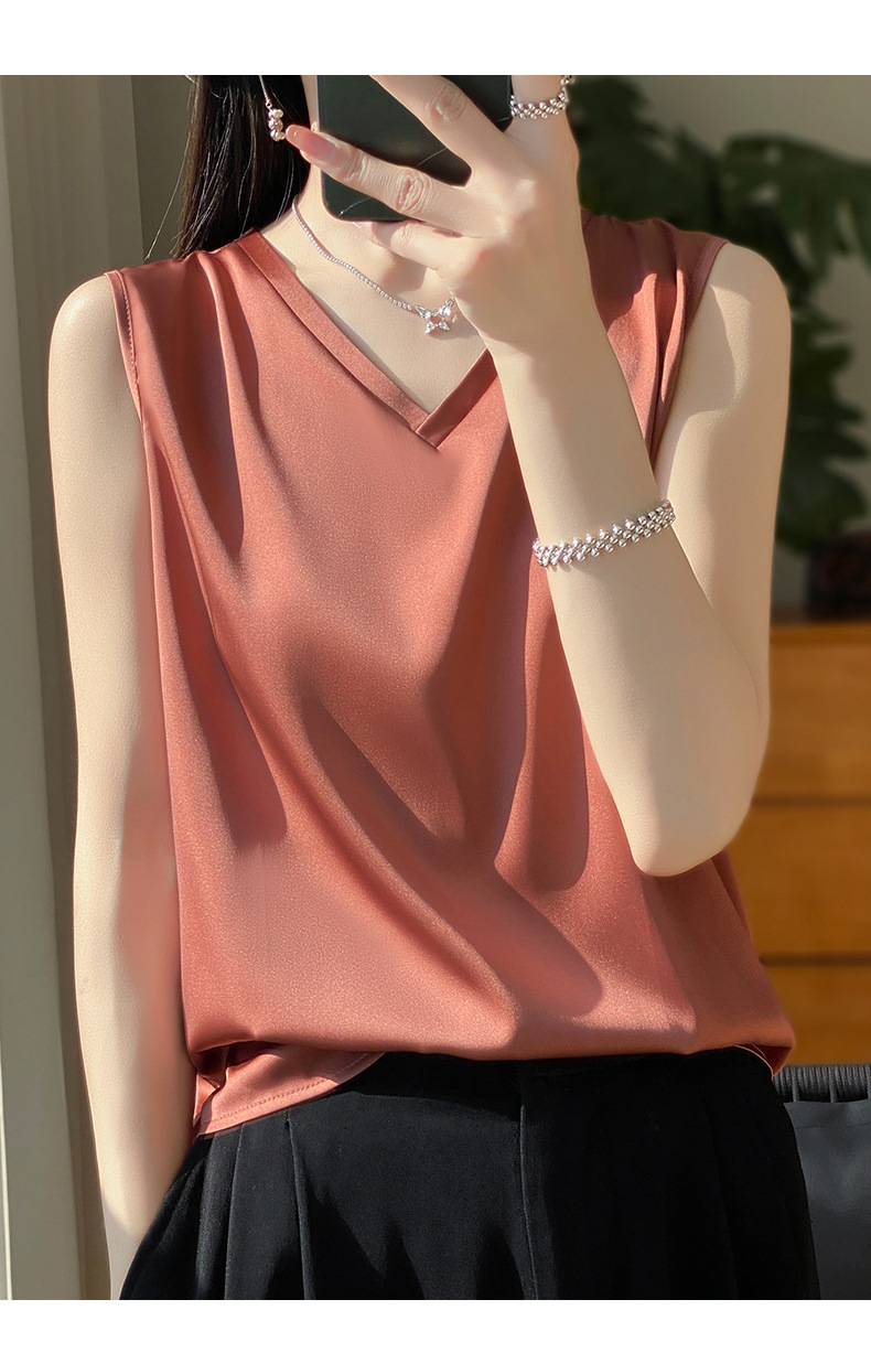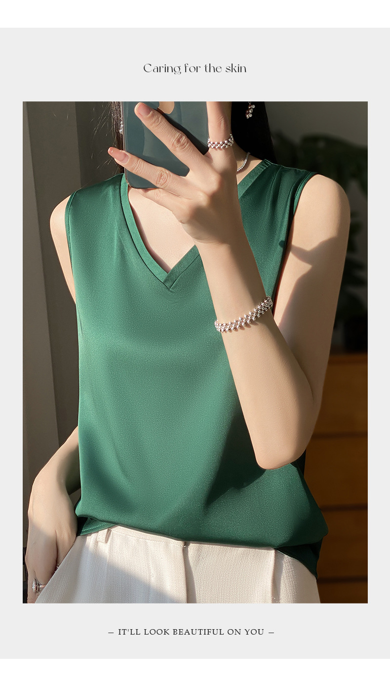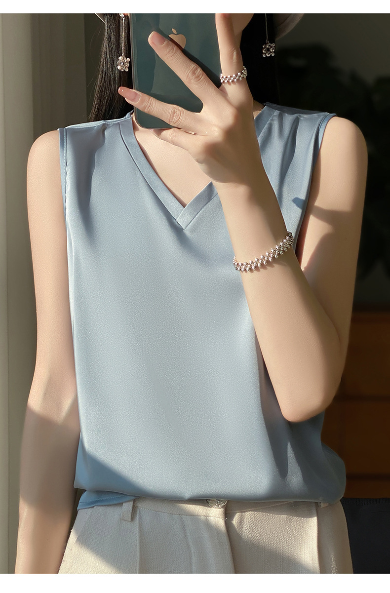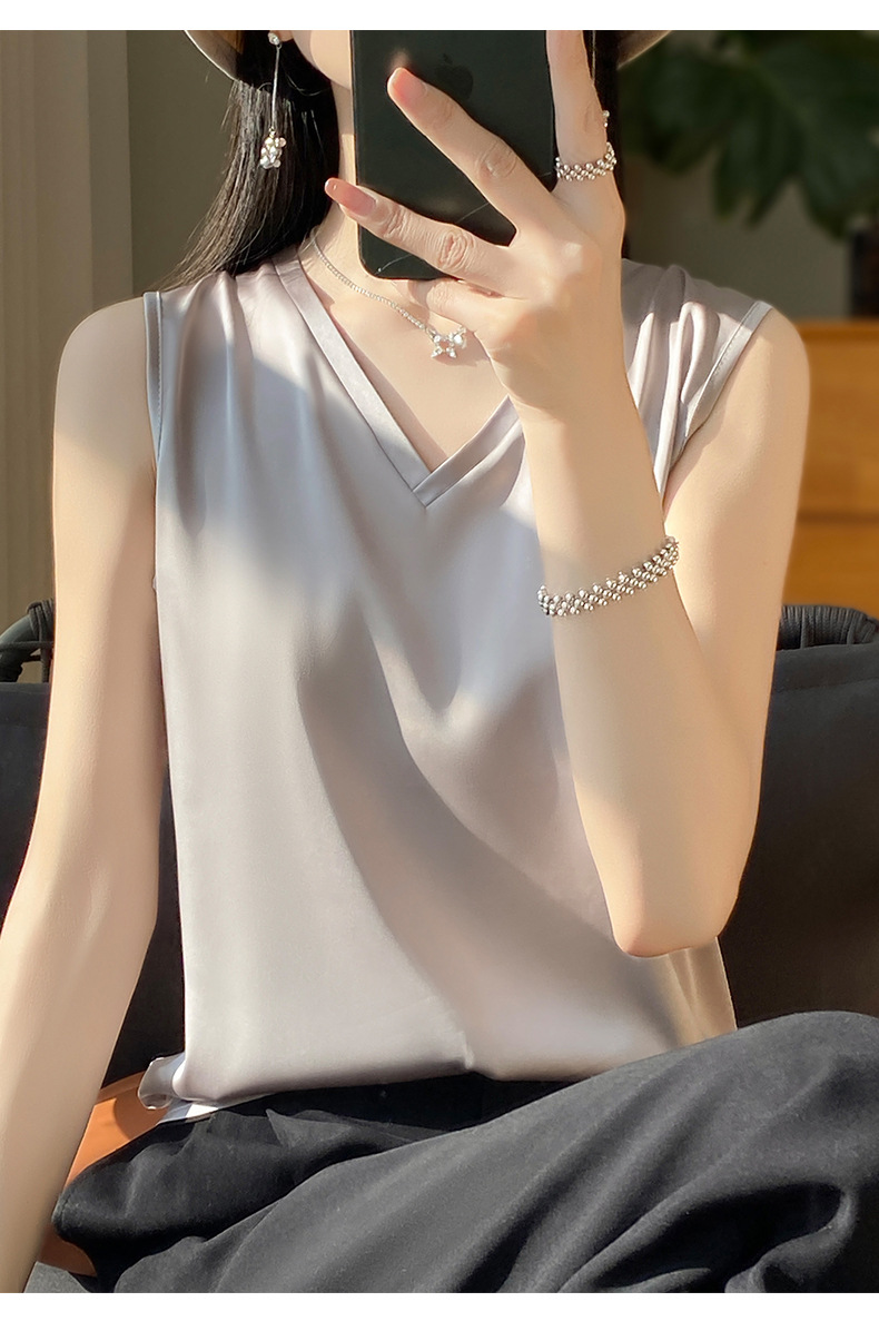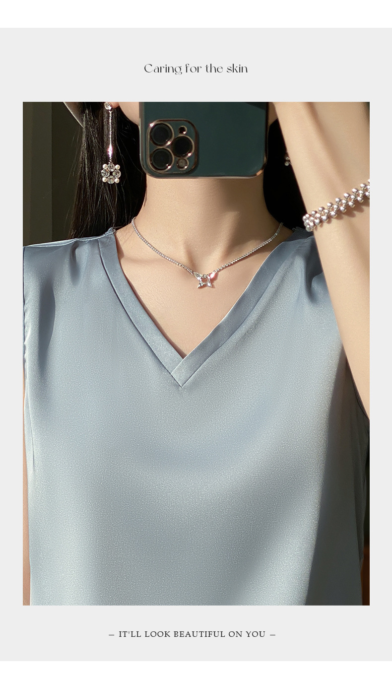 QHJY-1014丝绸缎面针织无袖吊带背心女薄款 2024春秋配西装内搭打底纯色T恤