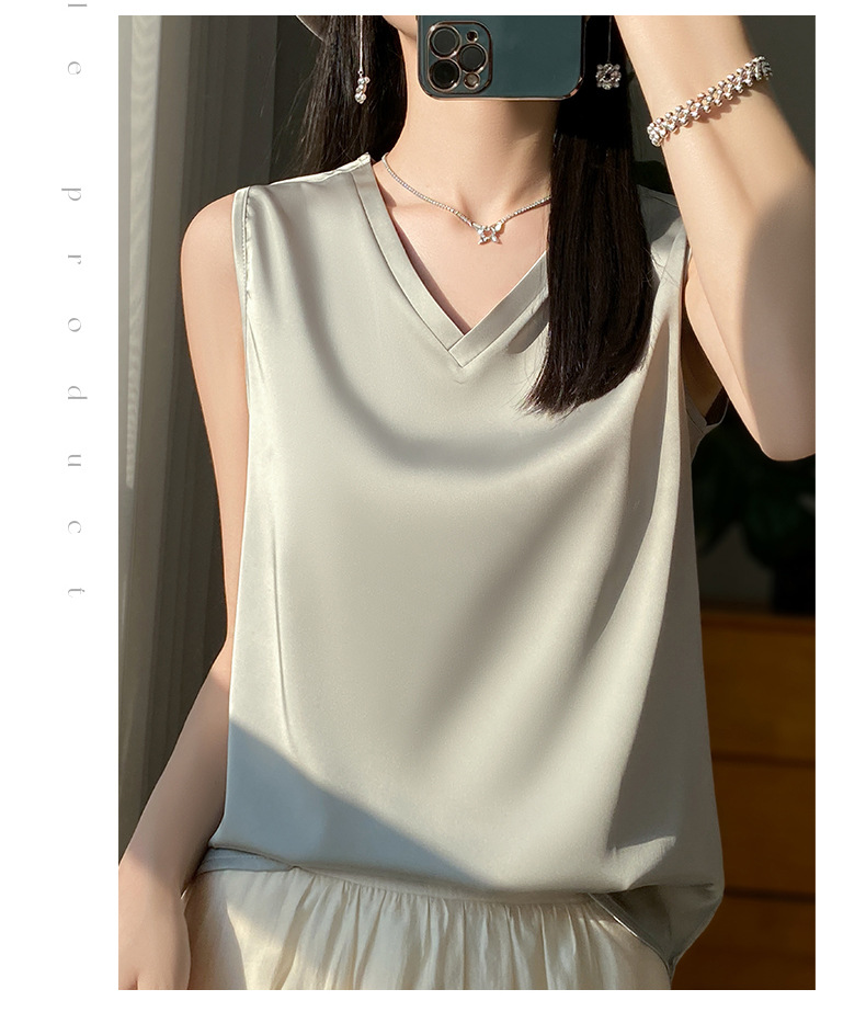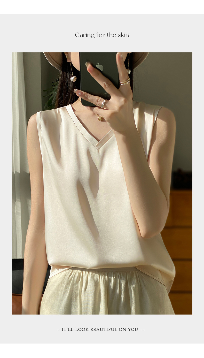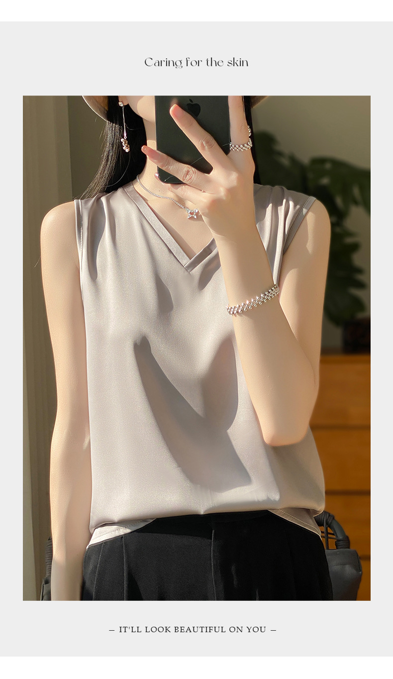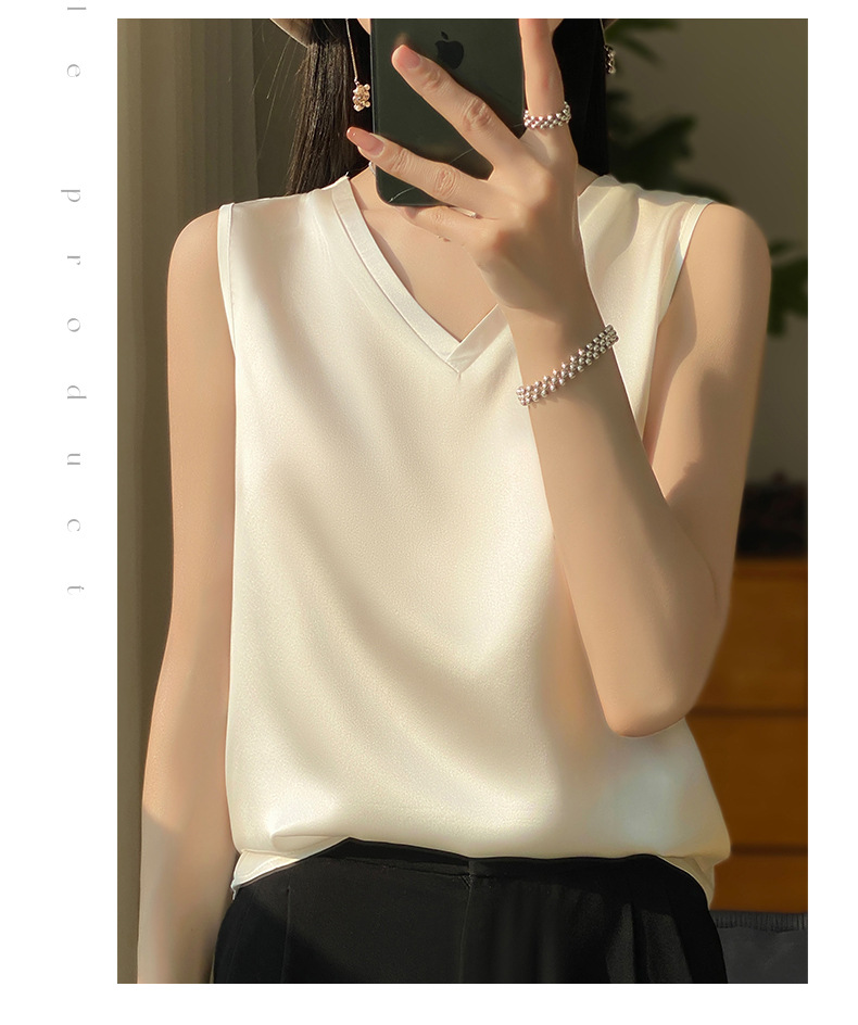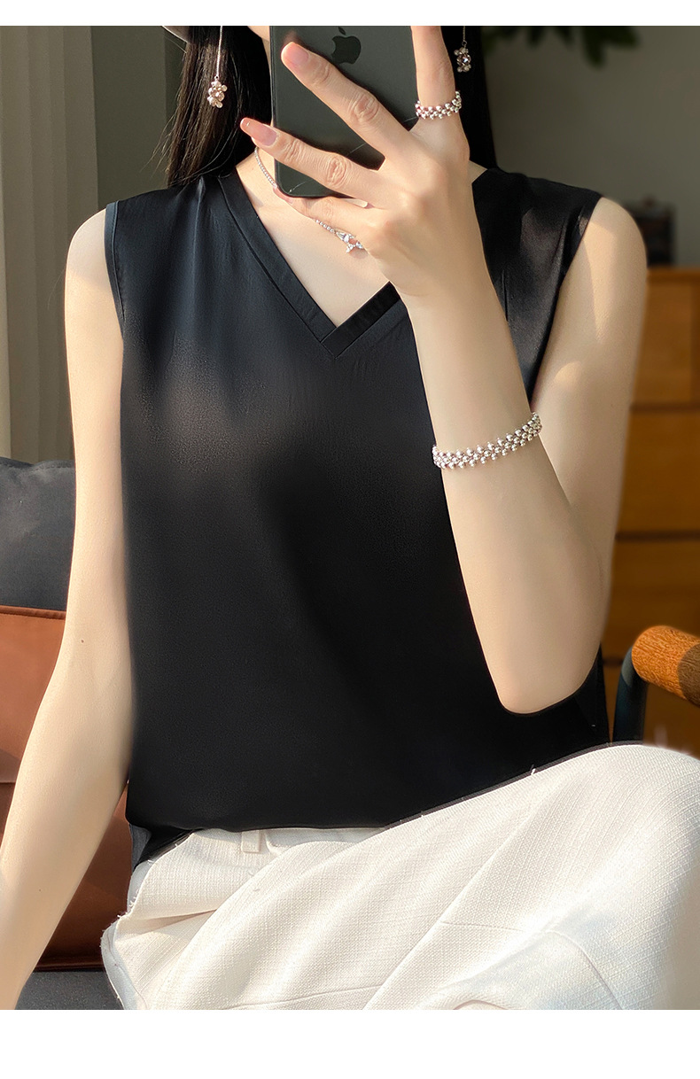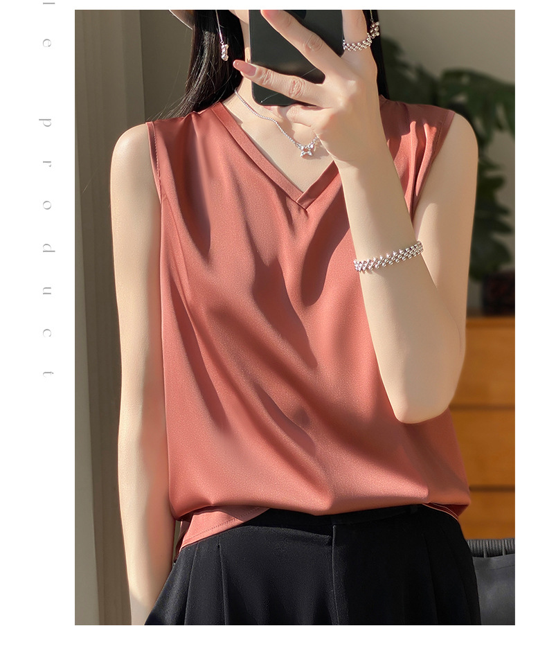 QHJY-1014丝绸缎面针织无袖吊带背心女薄款 2024春秋配西装内搭打底纯色T恤