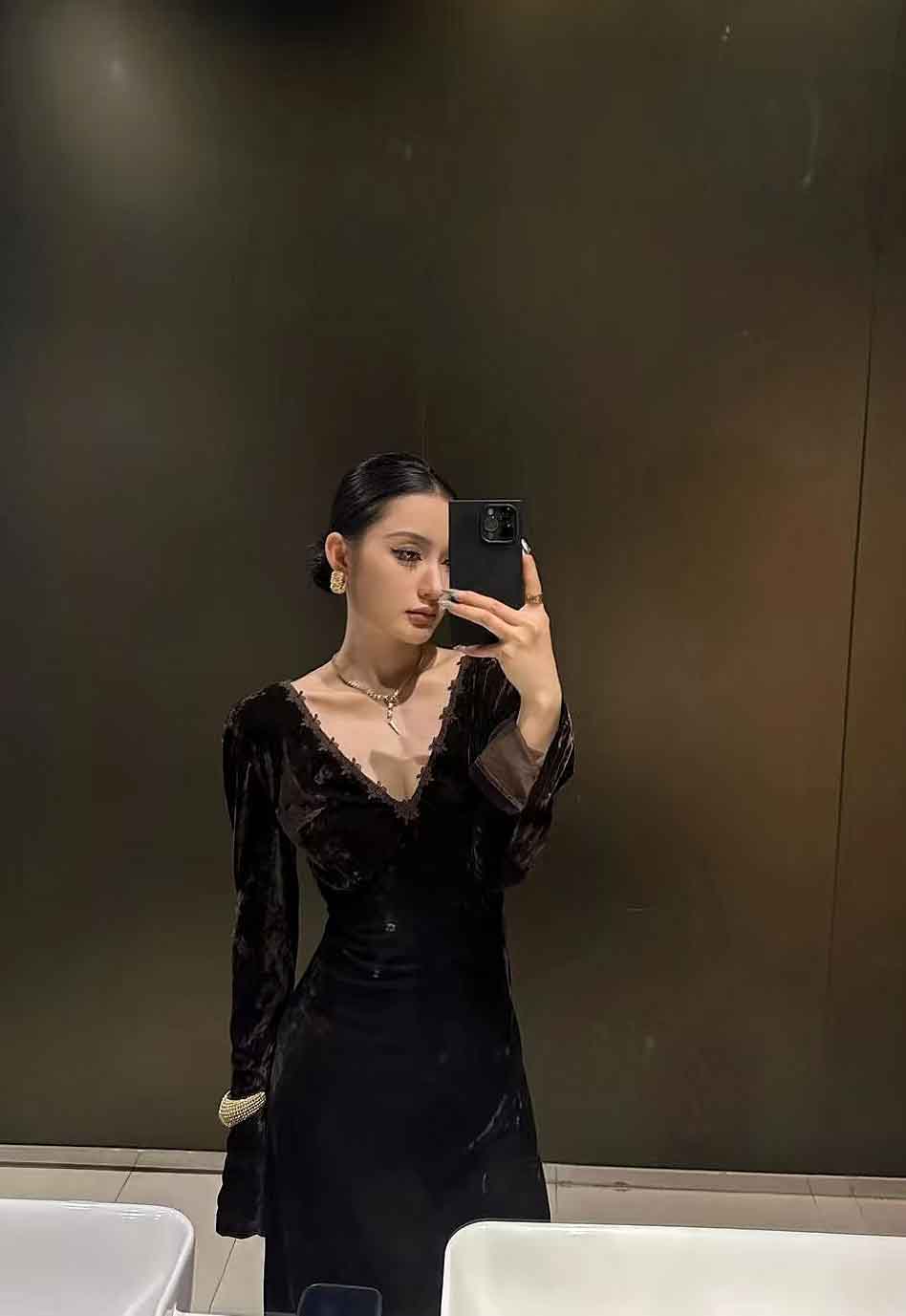 气质封神|法式高级感连衣裙,丝绒贴花蕾丝,何尝不是一个优雅的性感尤物。