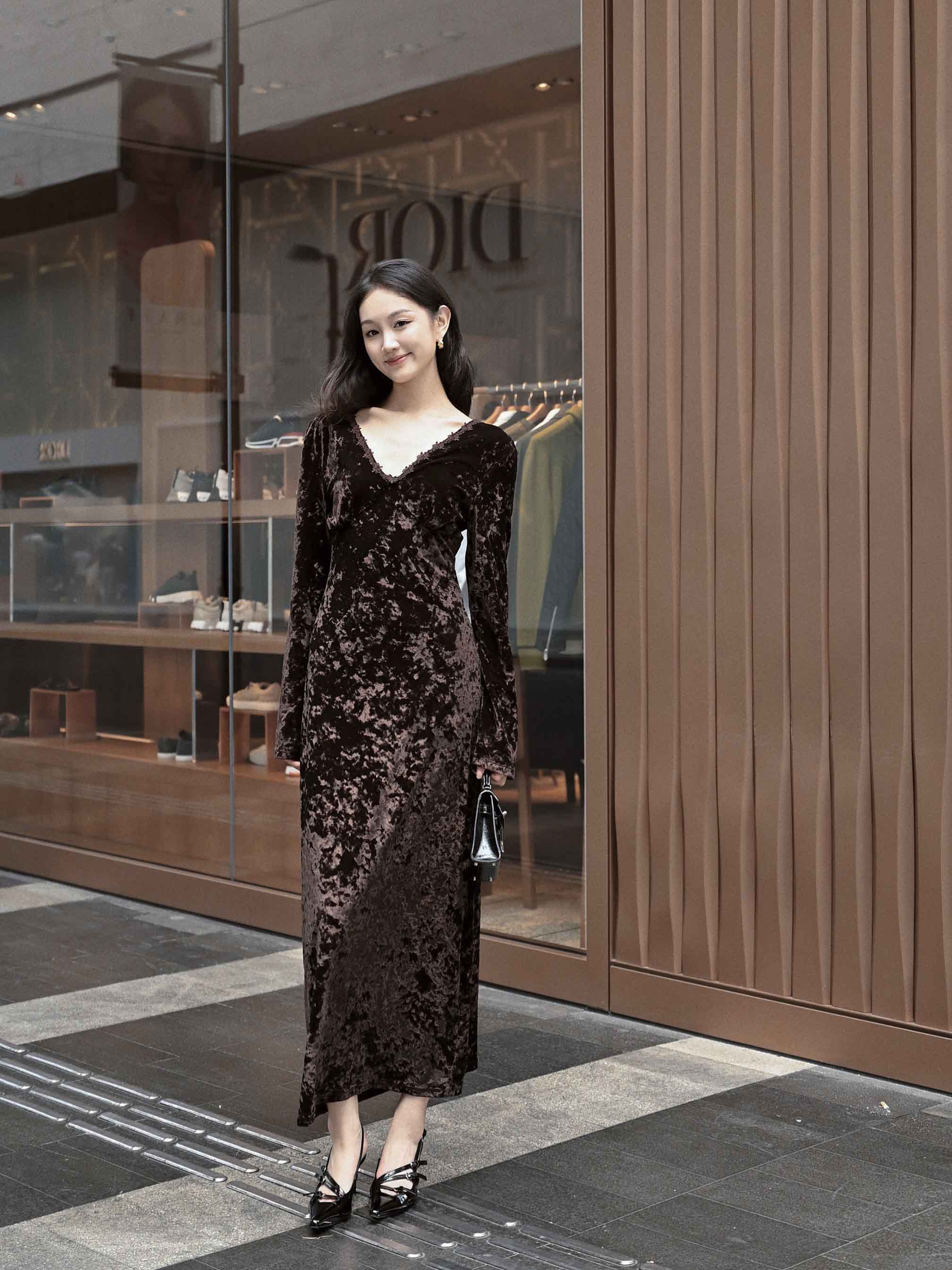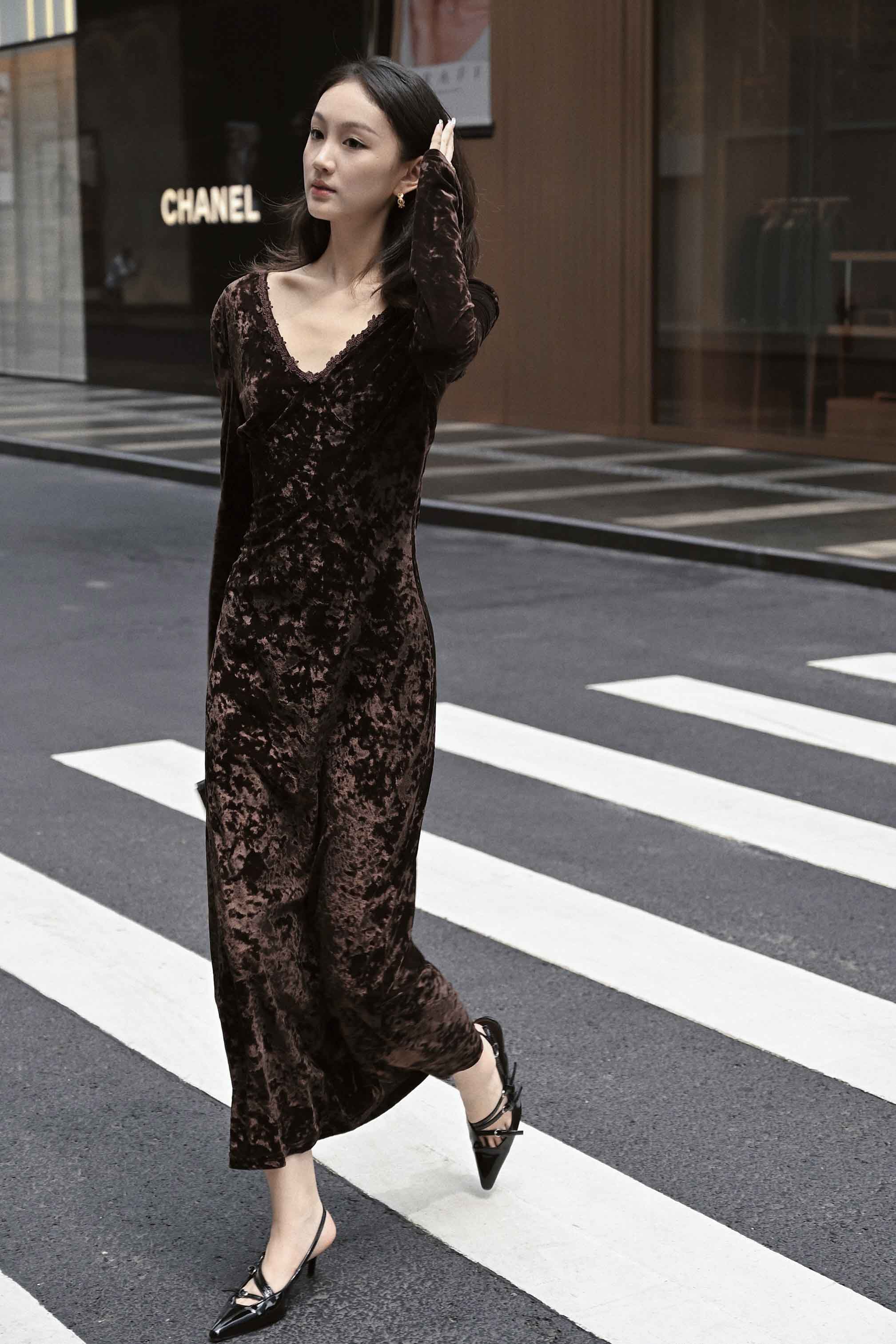 秋冬想保暖又想穿出高级,一定要靠丝绒裙,一上身就尽显高级跟复古感