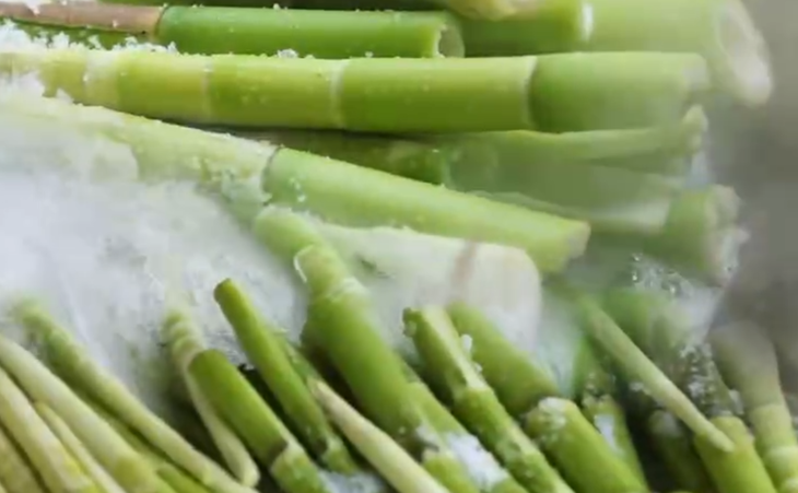 石笋干细细长长,色泽黄绿发亮,吃入口中,竹子清香在口腔内蔓延开来,这也许就是地道的大山味道吧。