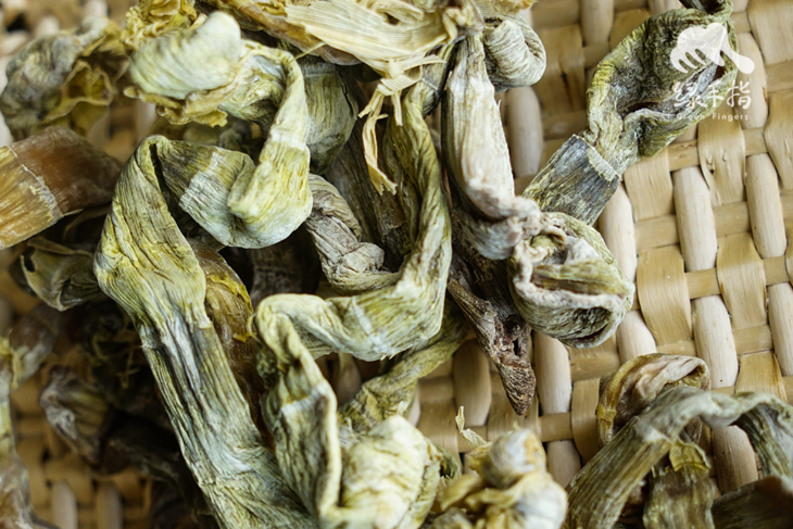 至此,一份石笋干就完成了,平均20斤鲜竹笋出1斤笋干。野生石笋干没有浸泡任何防腐剂,以盐腌和干制的古老方法封存大山味道,冷藏保存6个月,可焖炖炒煮。笋干自带咸味,烹饪时注意减少用盐。